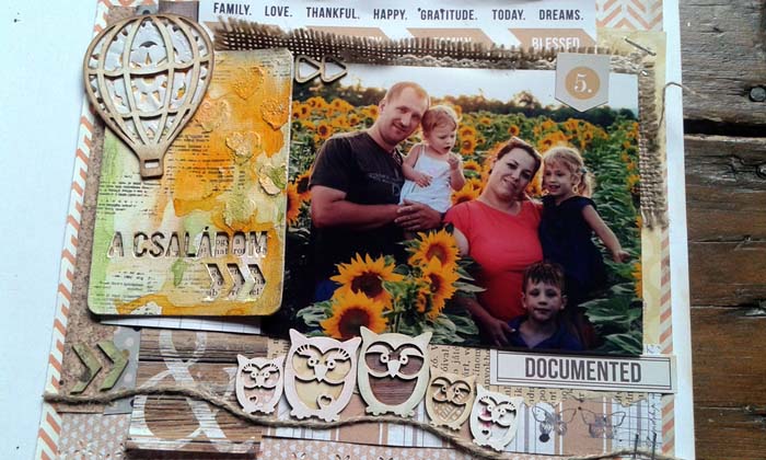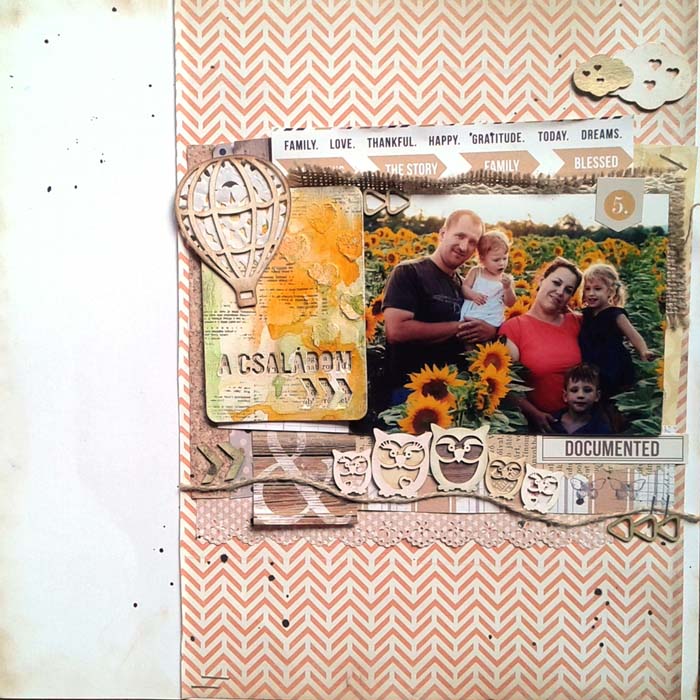 Teresa Collins Life Emporium papírokat és matricàkat hasznàltam, egyszerűen csodàs az a készlet,még biztosan készül majd belőlük màs is,mert szerintem nagyon sok lehetőség van benne 🙂 A csalàdom kàrtyacsipit egy kis festéssel és nyomdázàssal turbóztam fel, most ez a technika nagyon tetszik nekem kàrtyàkon hasznàlva,iszonyúan feldobja a legegyszerűbb oldalt is.