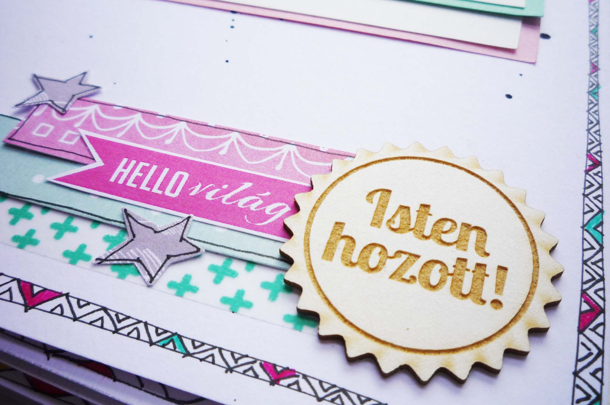 Mivel a fotókon van a hangsúly, ami a 17×22 cm-es oldalból elég sok helyet elvesz, ezért csak kis helyen tudtam díszíteni az oldalakat.