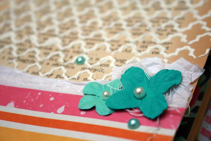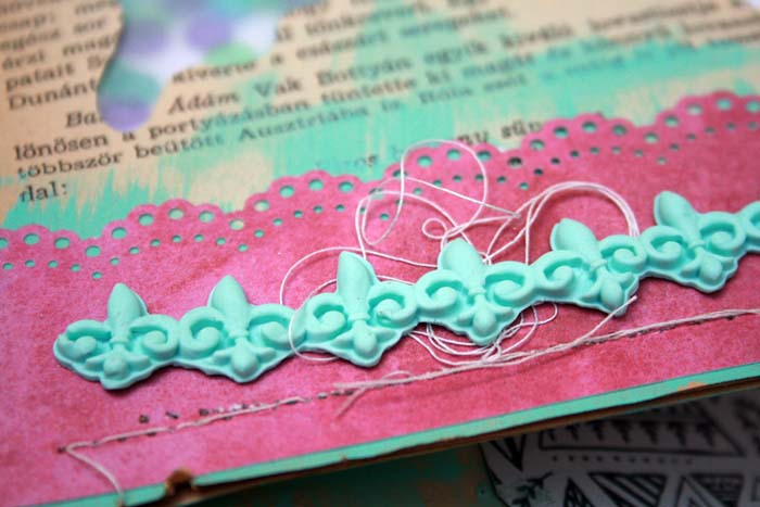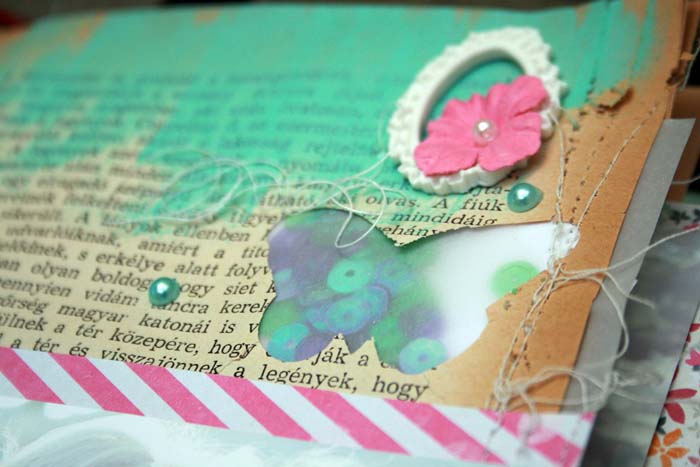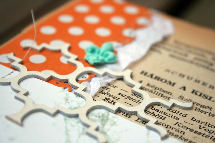 Díszítésnek NCsD chipboardokat, gyurma díszeket, drót motívumokat és címkéket használtam, amik néhol harmonizálnak, néhol pedig a kontrasztot szolgálják.