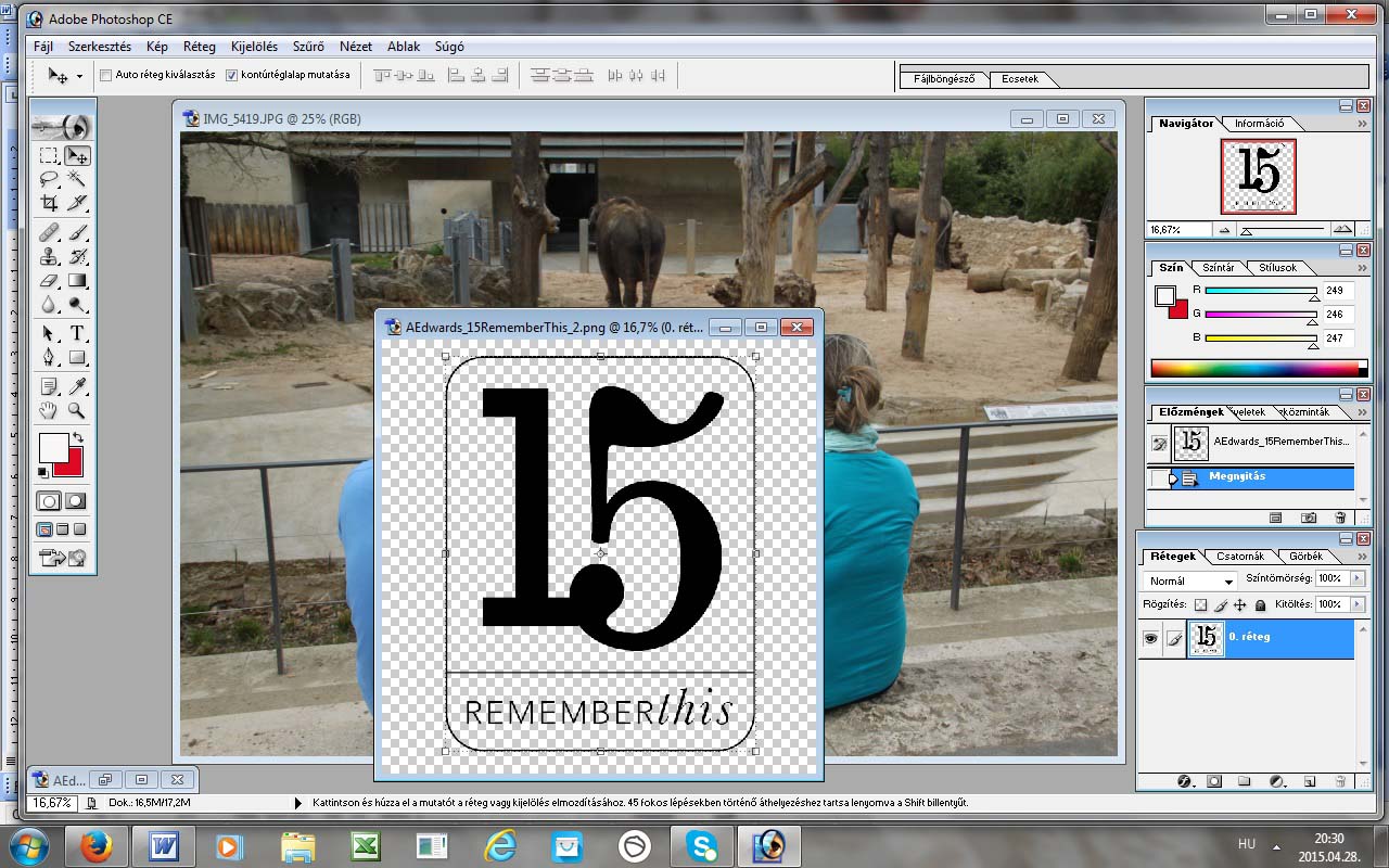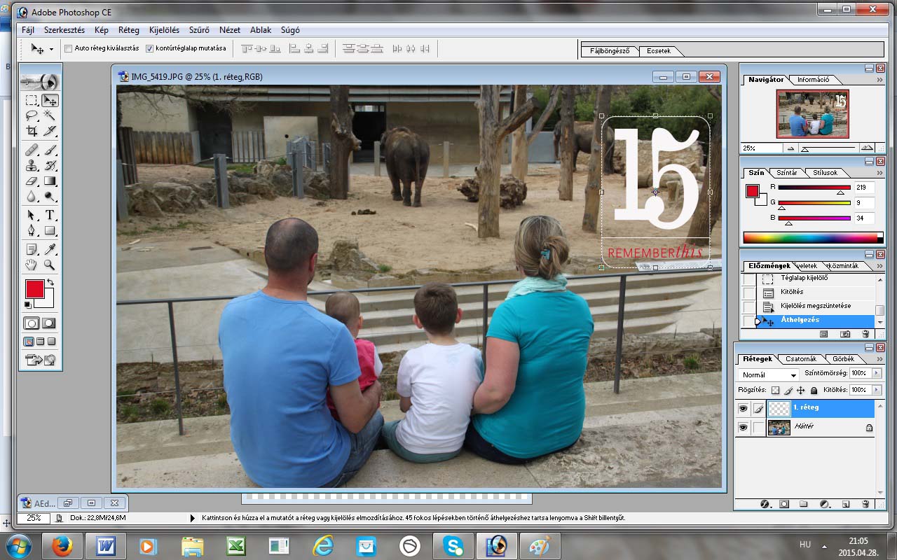 2. Bal egérgomb nyomva tartása mellett áthúzom a feliratot a fotóra. Méretet változtatok, a képen írtak alapján.