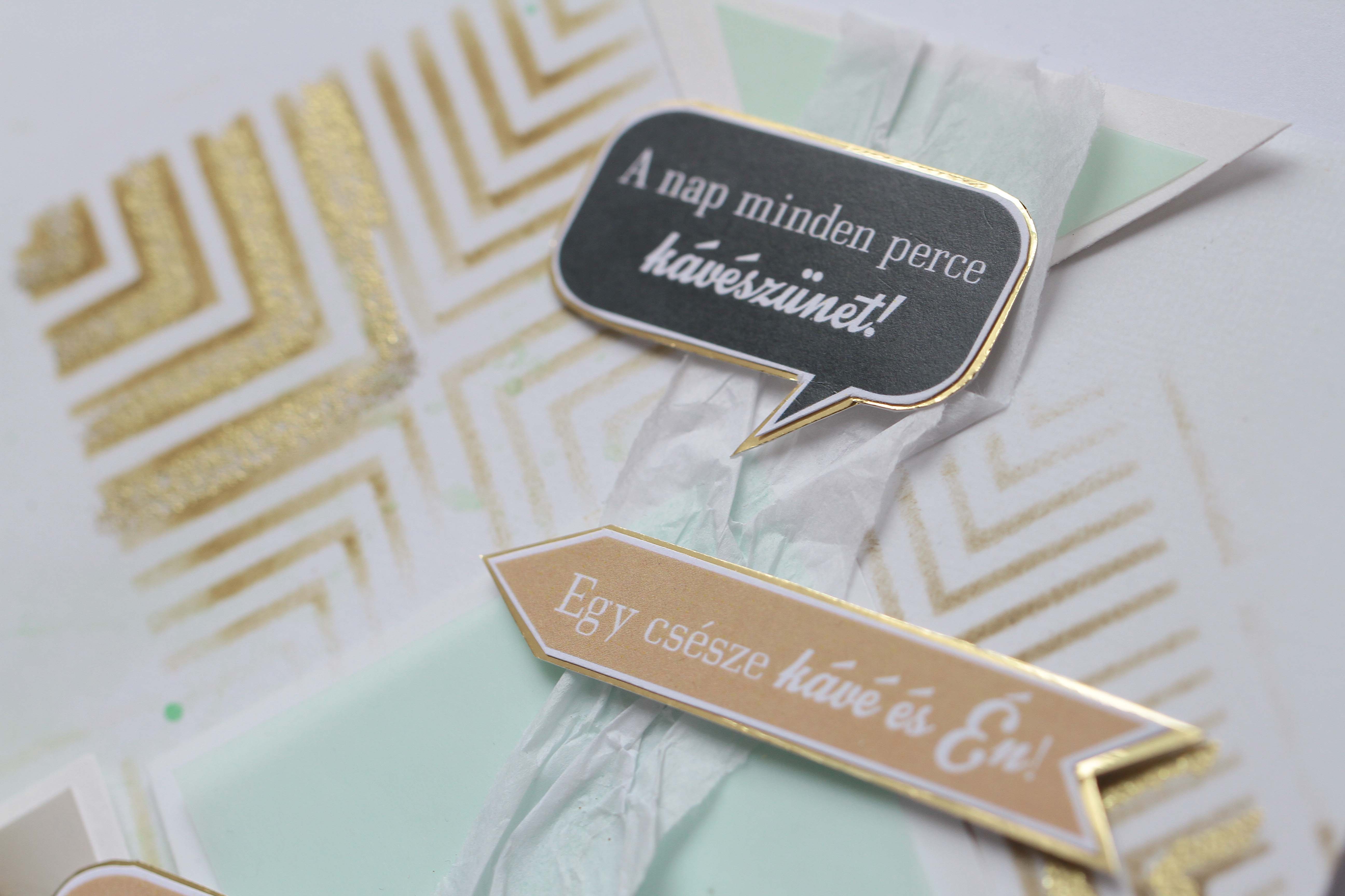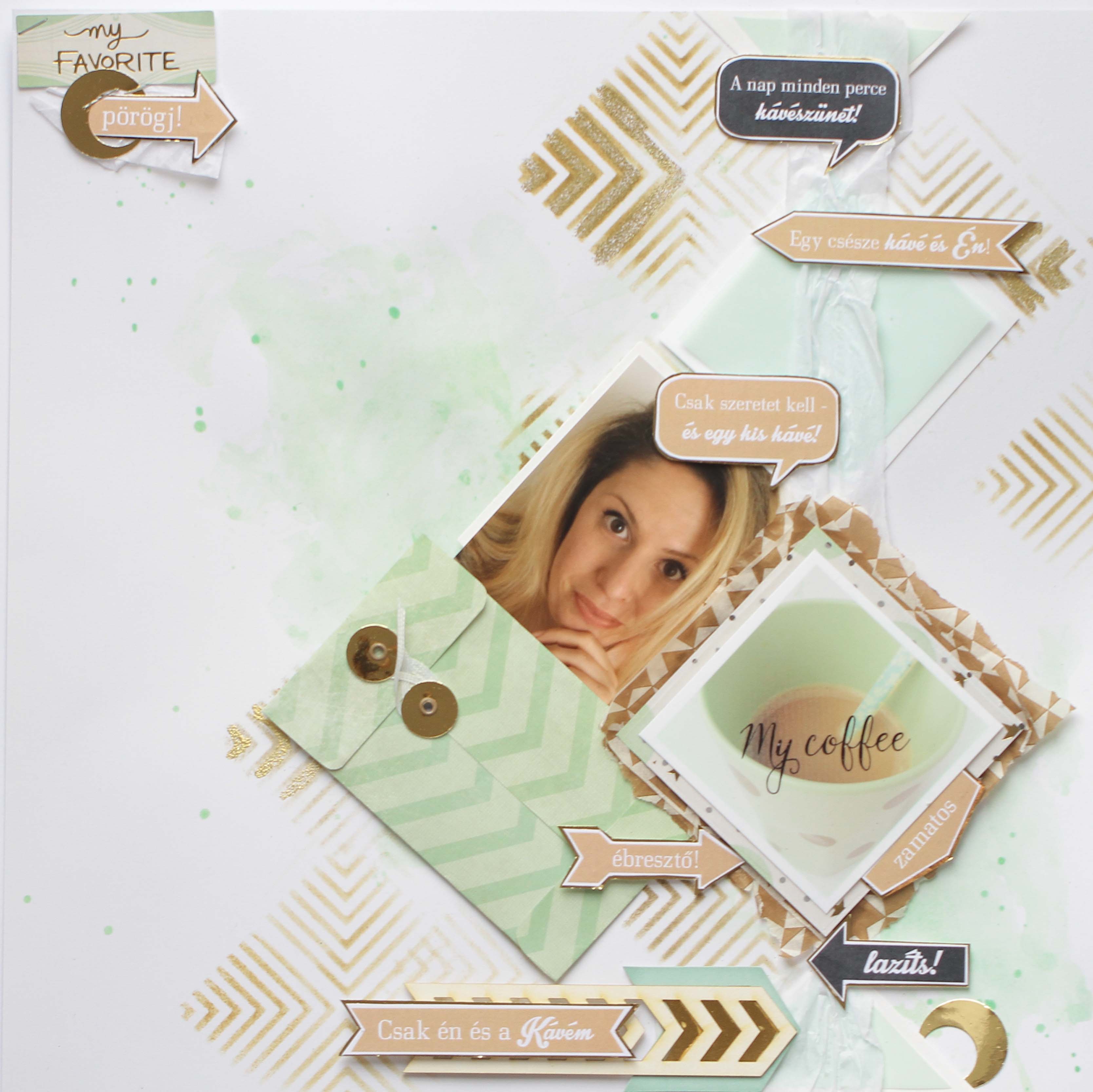 Természetesen a fotón túl, még az alatta lévő barna-fehér mintás selyempapír határozta meg az oldalt, ami egyébként pont egy Starbucks kávézóból származik. Ebbe a papírba csomagoltak nekünk egy bögrét és hát mit csinál egy scrapbookos? Mindent elrak azzal, hogy: Ez talán még jó lesz valamire! És tessék!