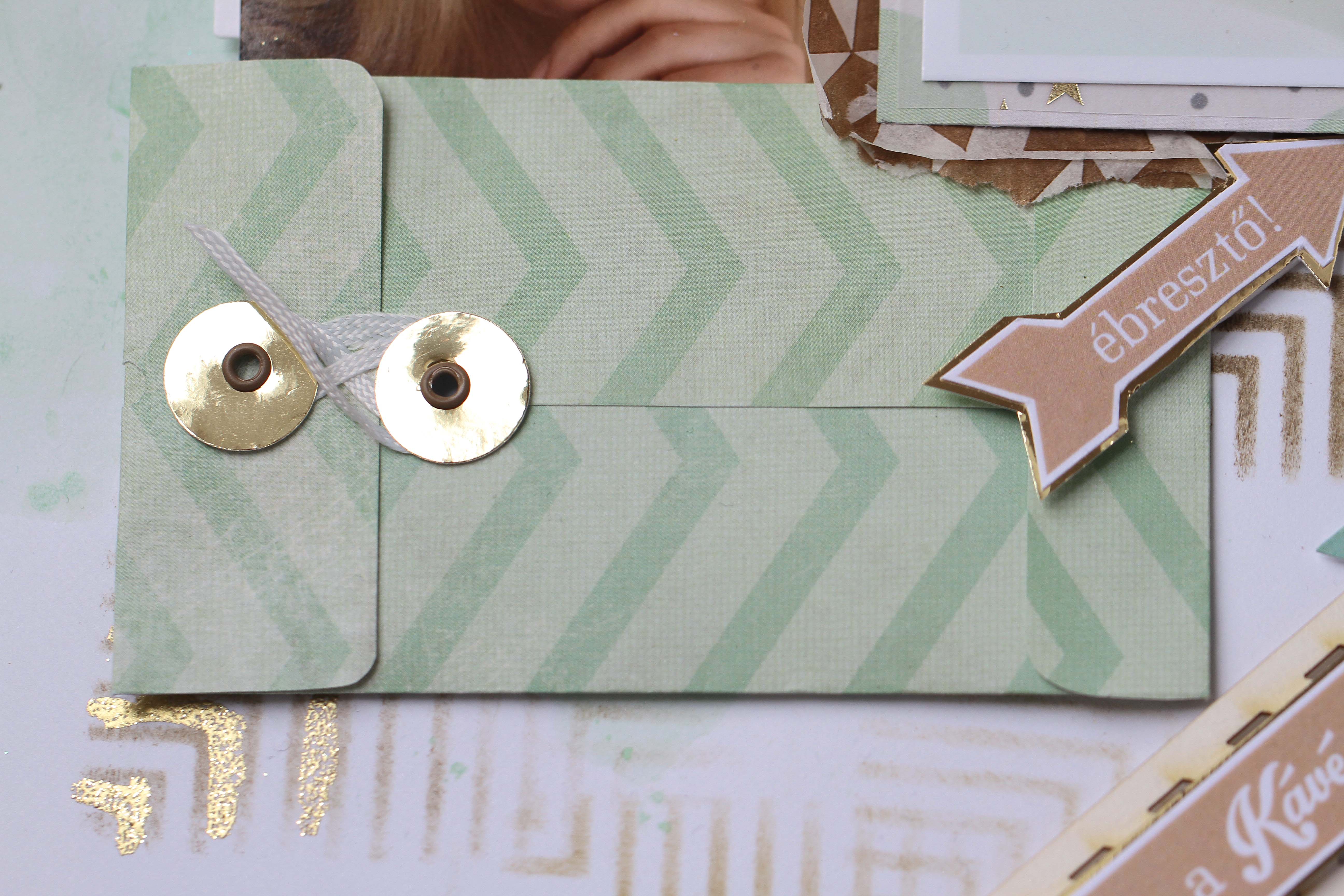 Nagyjából ennyi, azonban felhívnám a figyelmeteket a kis borítékra (kapcsos boríték?). Habár önálló díszítőelemként is megállja a helyét, de akár komment kártyát is tehetünk bele. Felhasználhatod hagyományos oldalon kép alá berejtve, vagy akár úgy ahogy én, kicsit hangsúlyosabban, vagy a SNAP és Project Life albumod készítése során, ugyanis belefér a tasakba és nagyon mutatós.