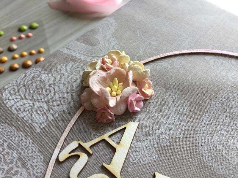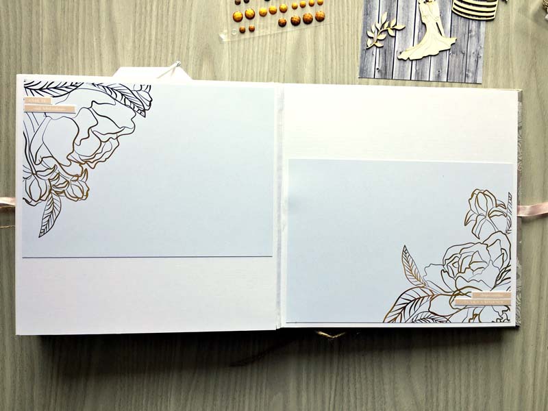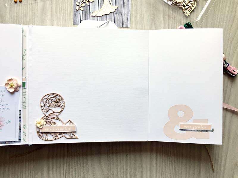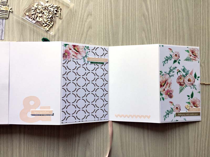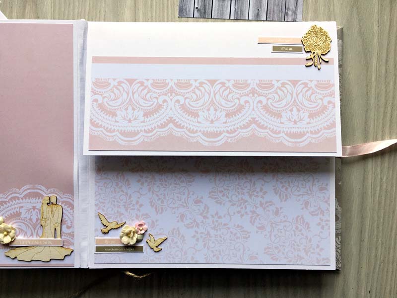 A prémium csomagból dolgoztam, csak 2 chipboard csomaggal egészítettem ki (és néhány szívecskével a készletemből). Az album alapját Julia Romanova 2015-ös DD workshopja alapján készítettem – sajnos nem lett tökéletes a könyvkötés, de az ifjú párnak tetszett