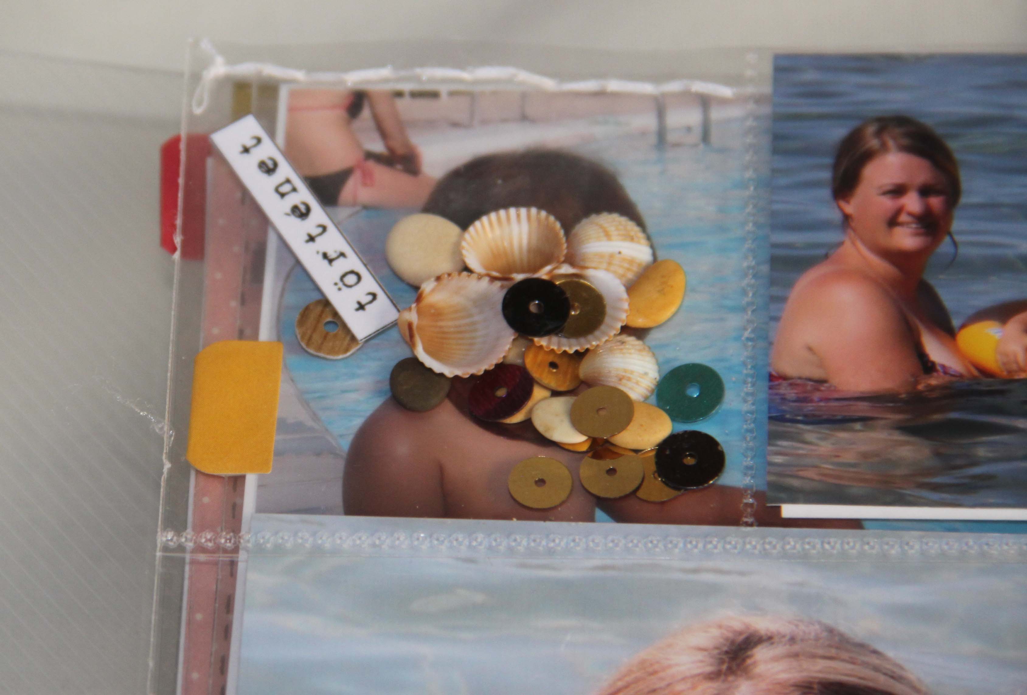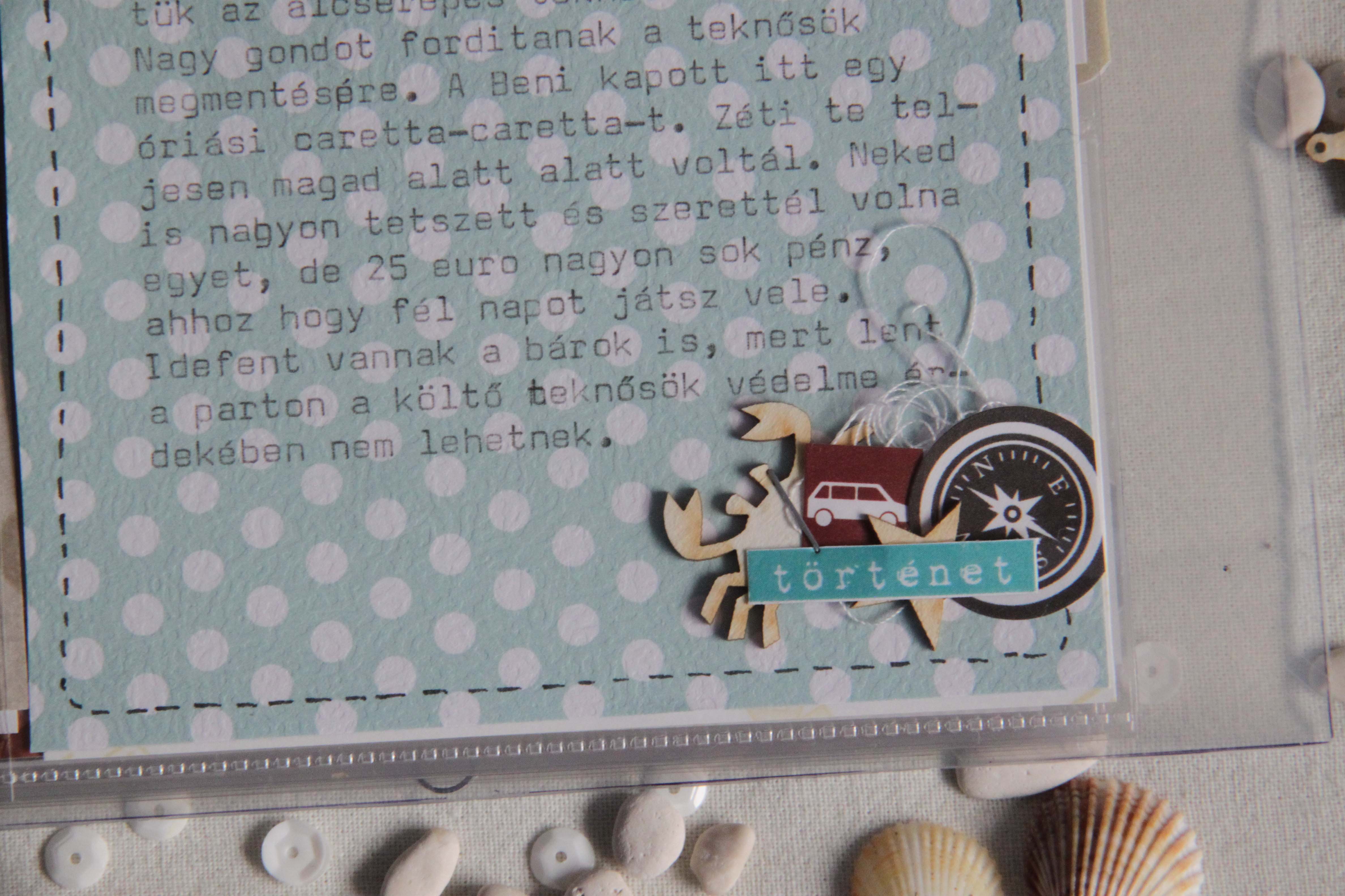 A nyaralás alatt gyűjtögető üzemmódba kapcsolt mindenki. Így hoztunk haza homokot, követ, kavicsokat, kagylót, prospektusokat. Ezeket a kincseket le is fűztem a tasakokba és lettek az album különlegességeivé.