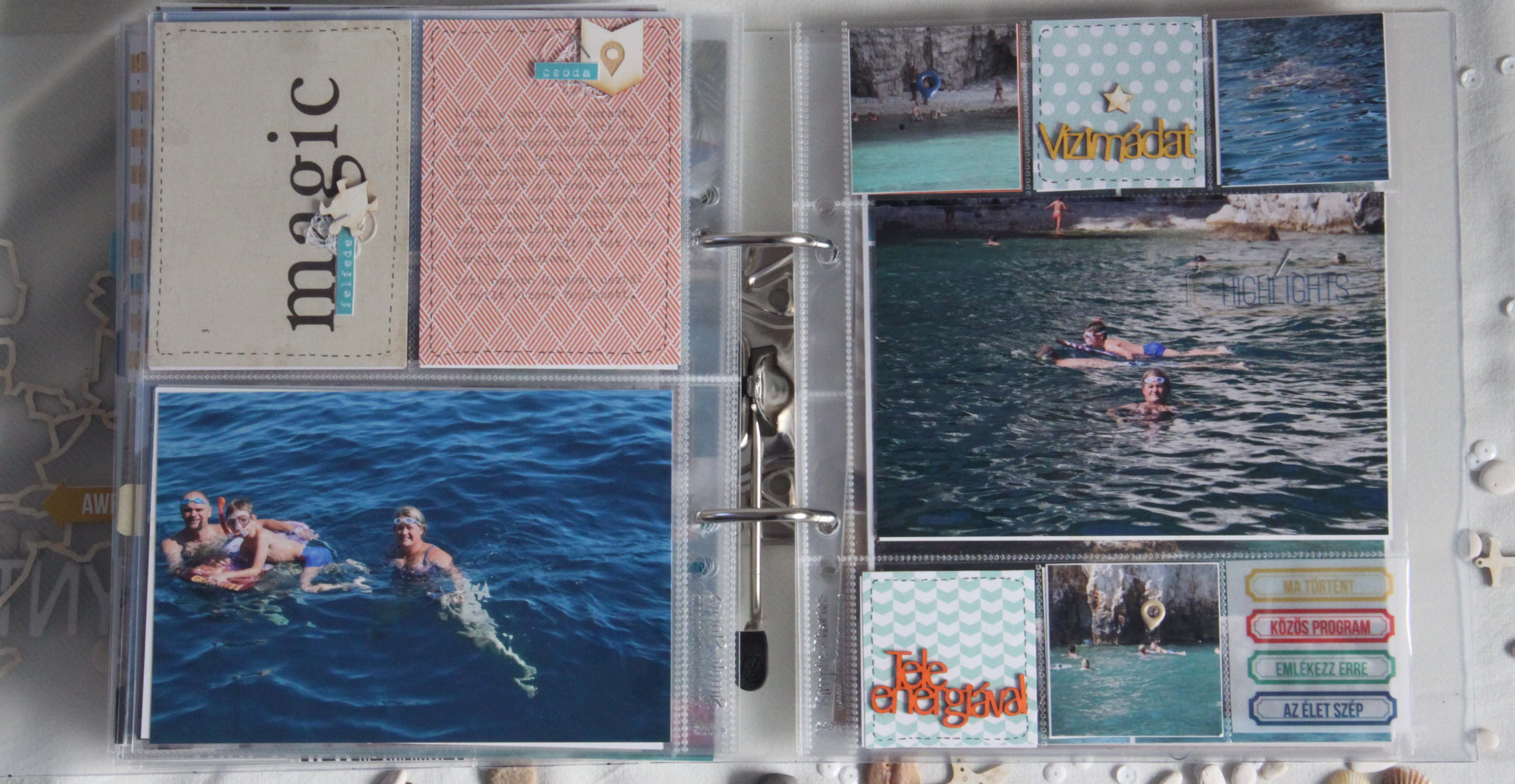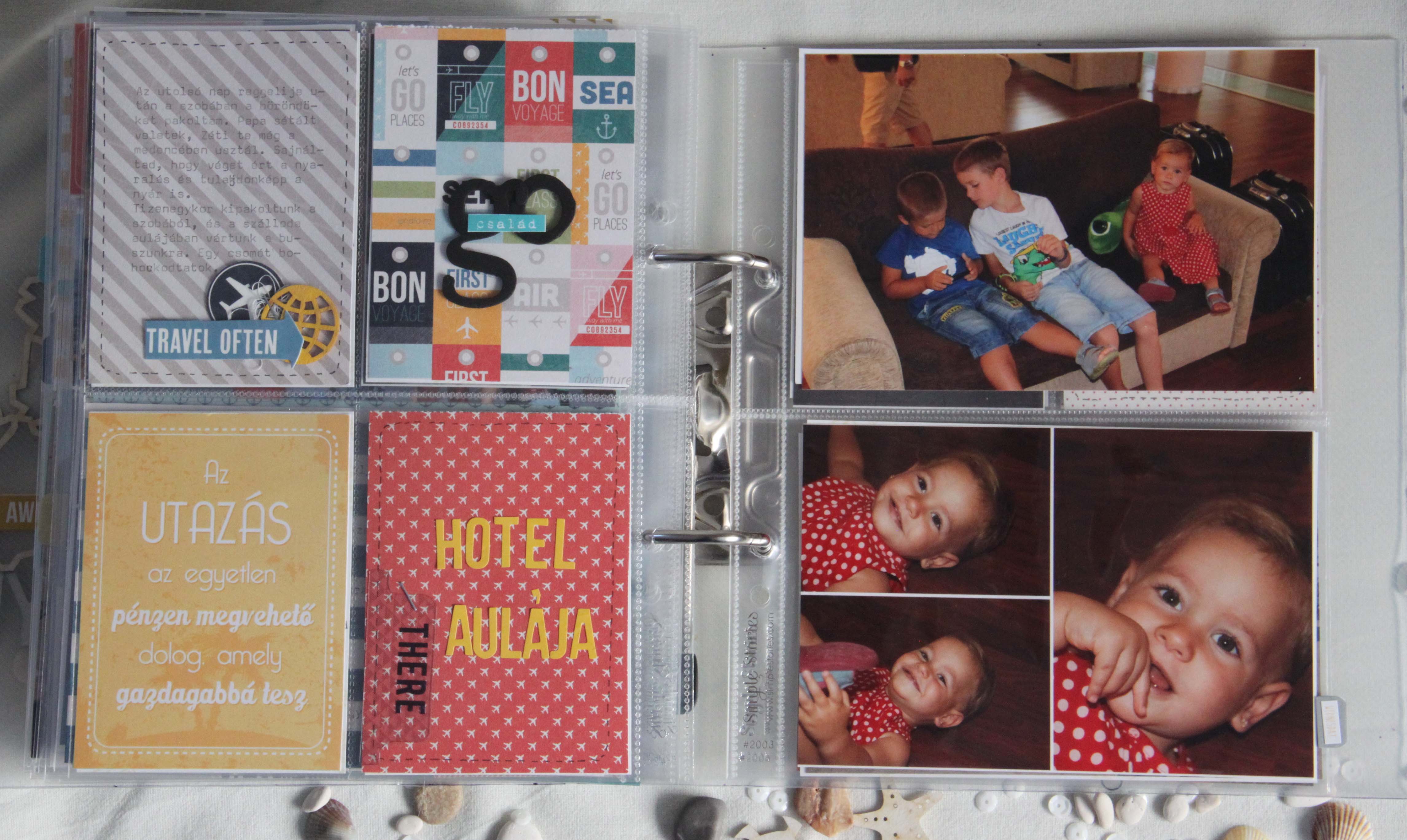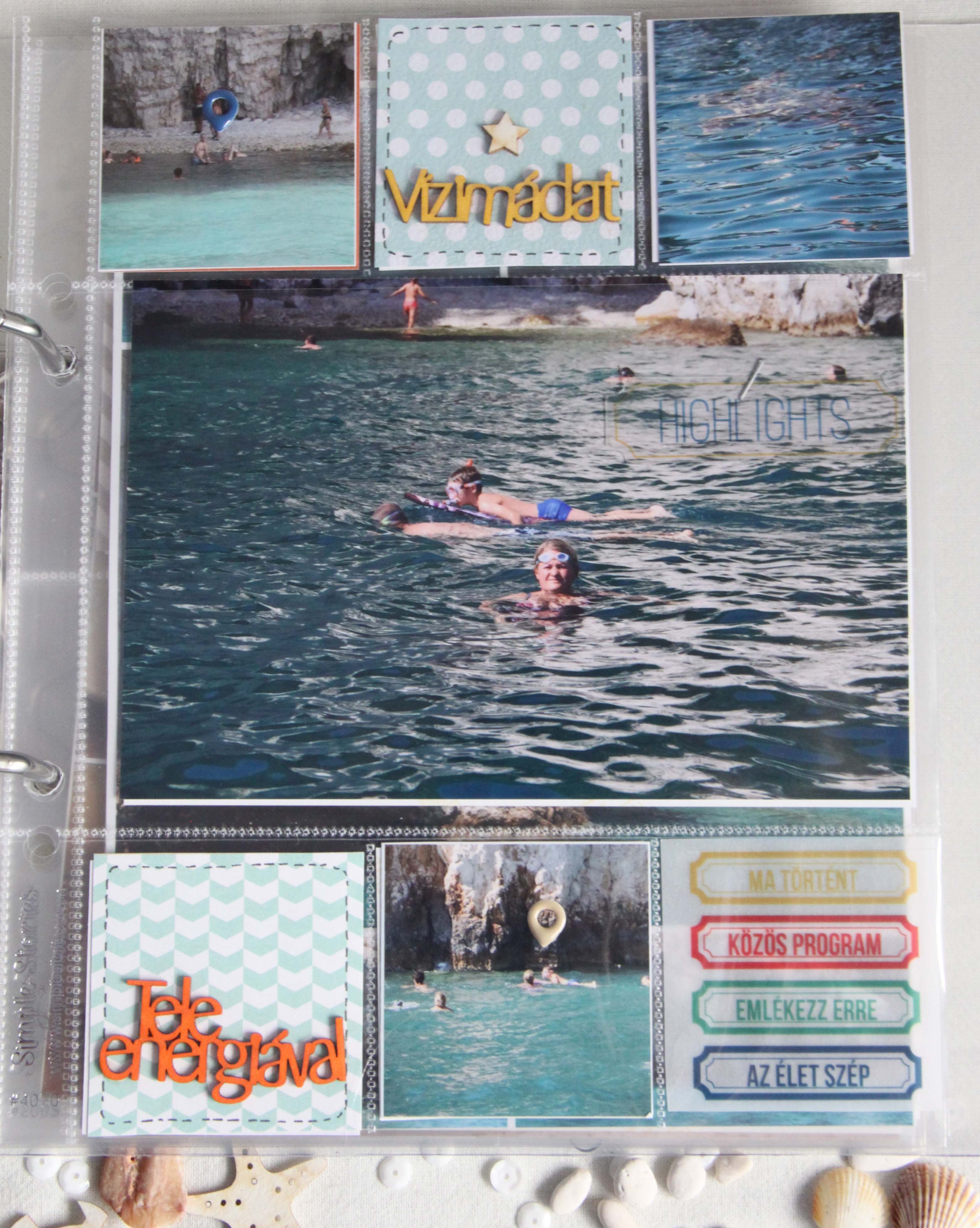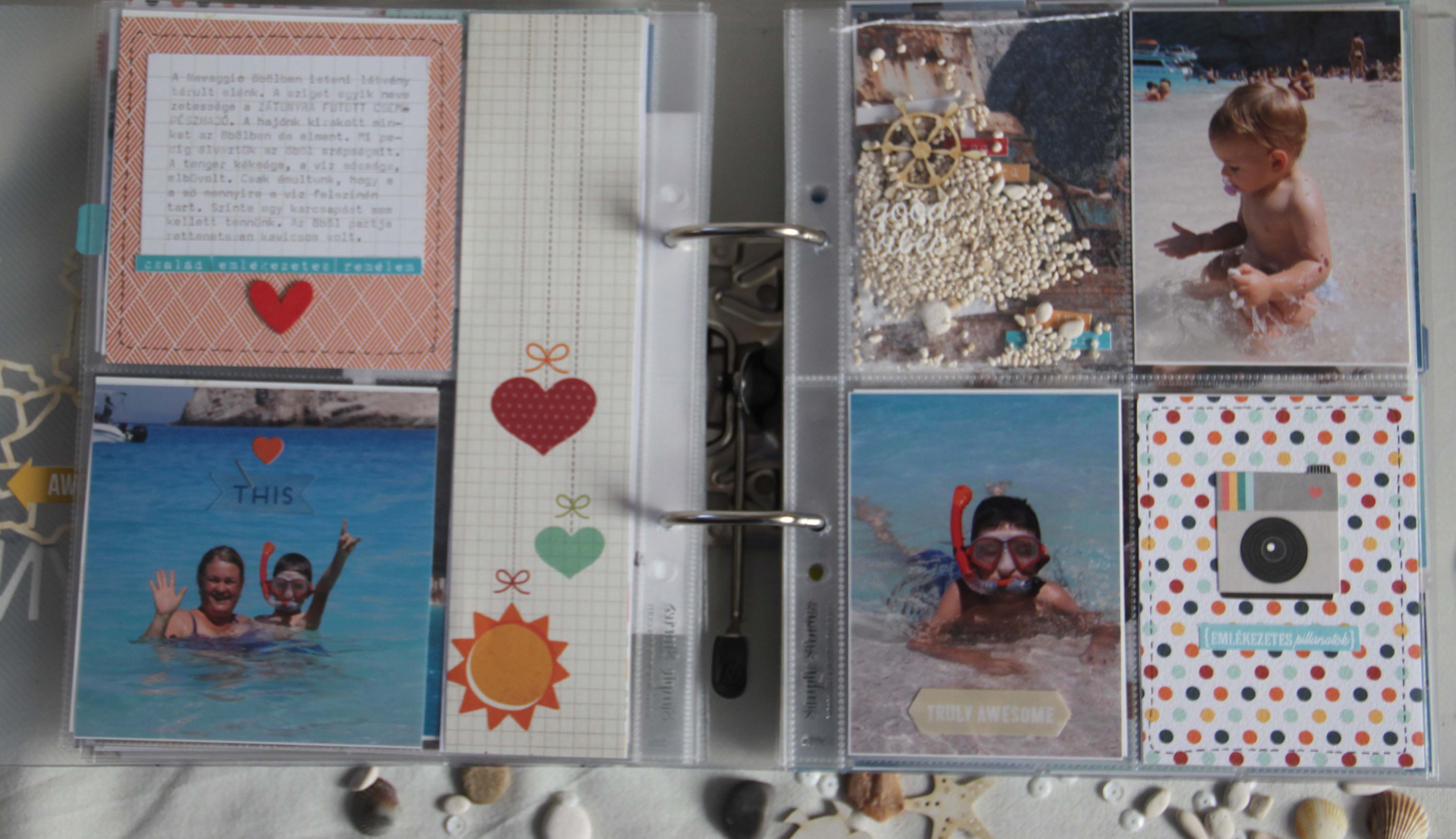 Tudom, hogy már mindenki karácsonyi lázban ég, mindenki az ünnepre készül, albumokat tervez, papírokat válogat, de én most értem egy számomra giga projekt végére. A nyaralós albumunkat fejeztem be a héten. Giga projekt, mert rengeteg fotó készült ezen a héten, szám szerint 1500. Ezt a mennyiséget 209 fotóra sikerült lecsökkentenem. Sok fotóból montázst készítettem, de vannak az albumban A5ös méretű fényképek, és egészen picik is.