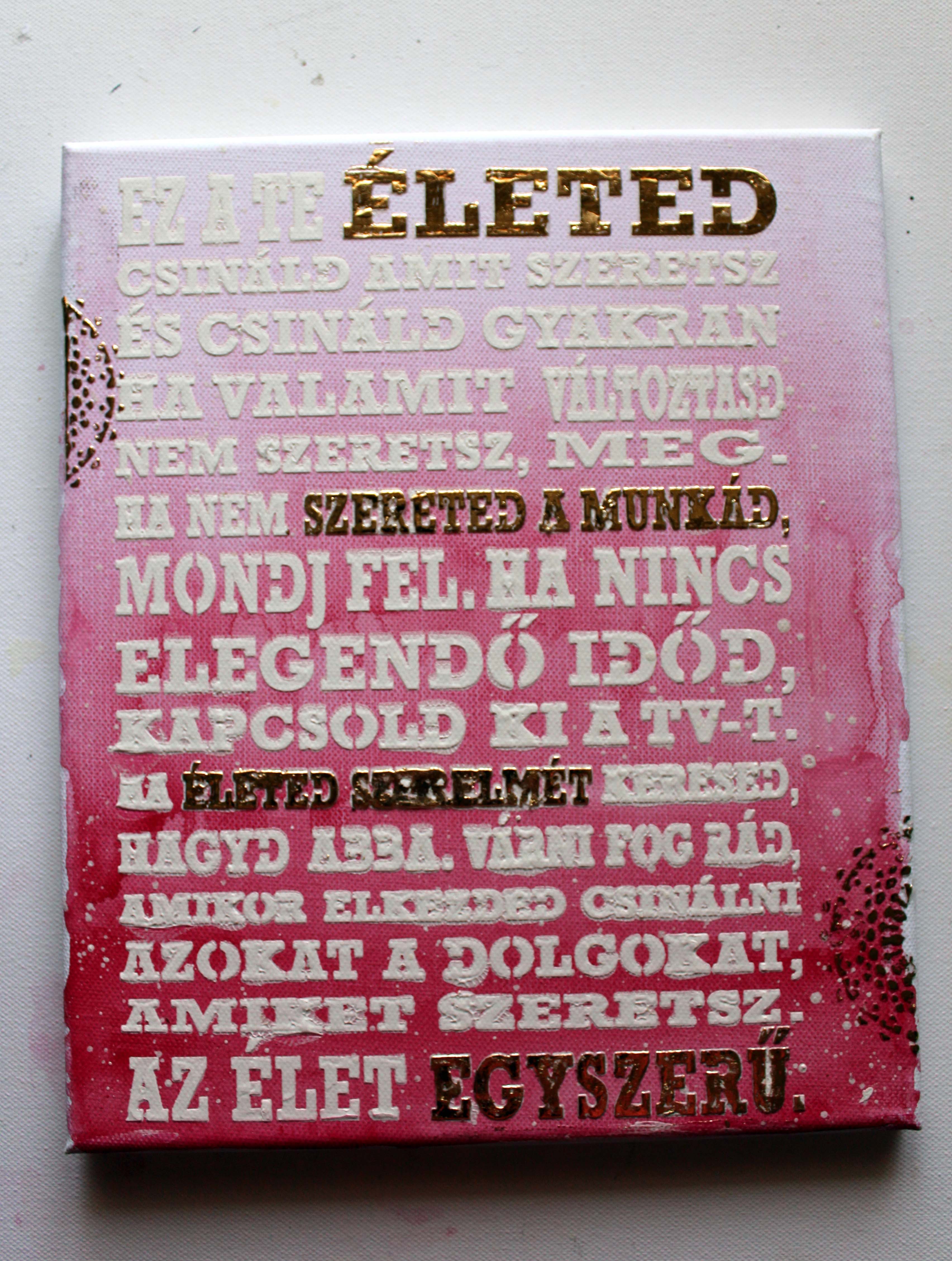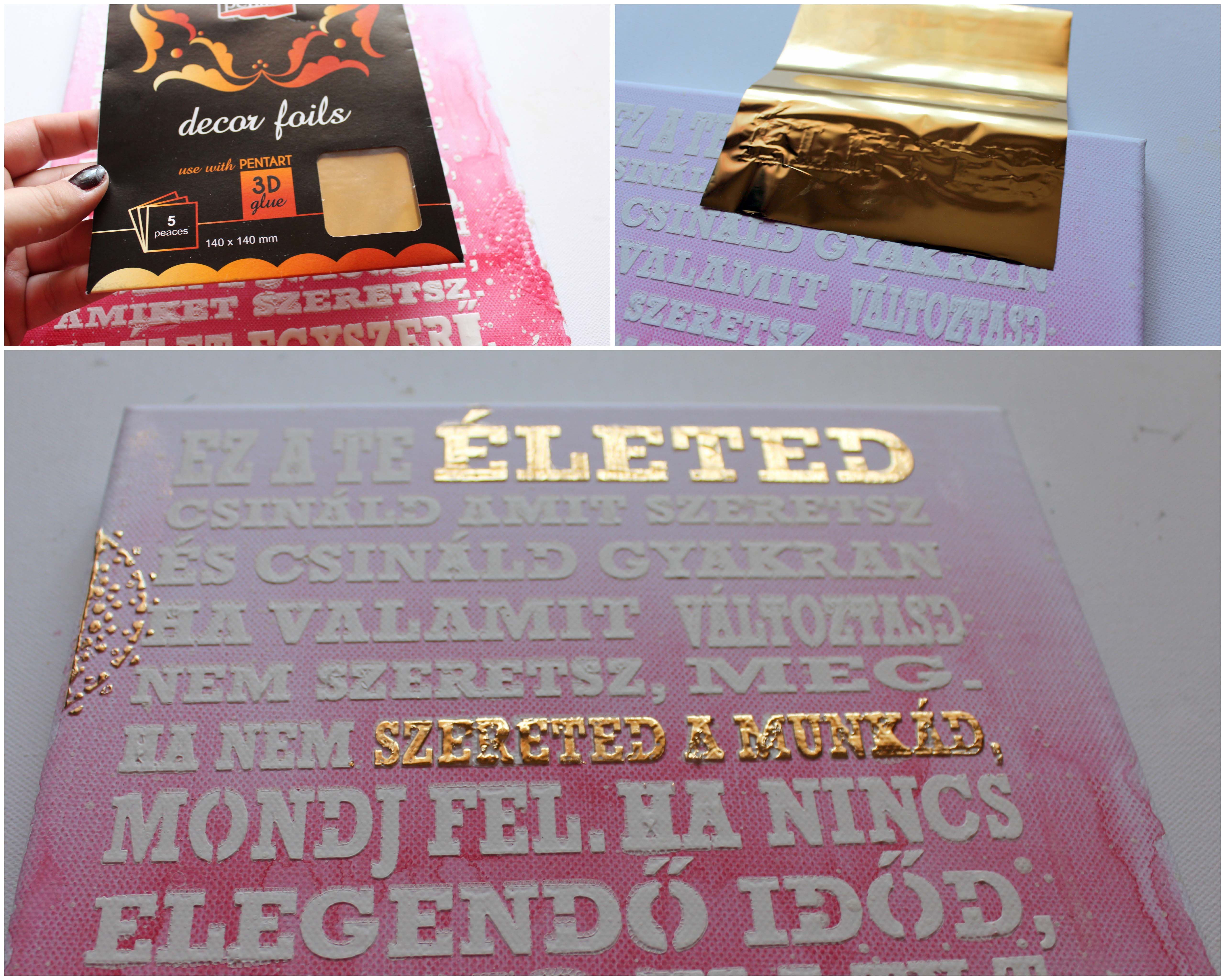 5. Mikor a szavak átlátszóra száradtak (kb. fél óra), akkor rájuk helyeztem az arany fóliát, és rásimogattam.