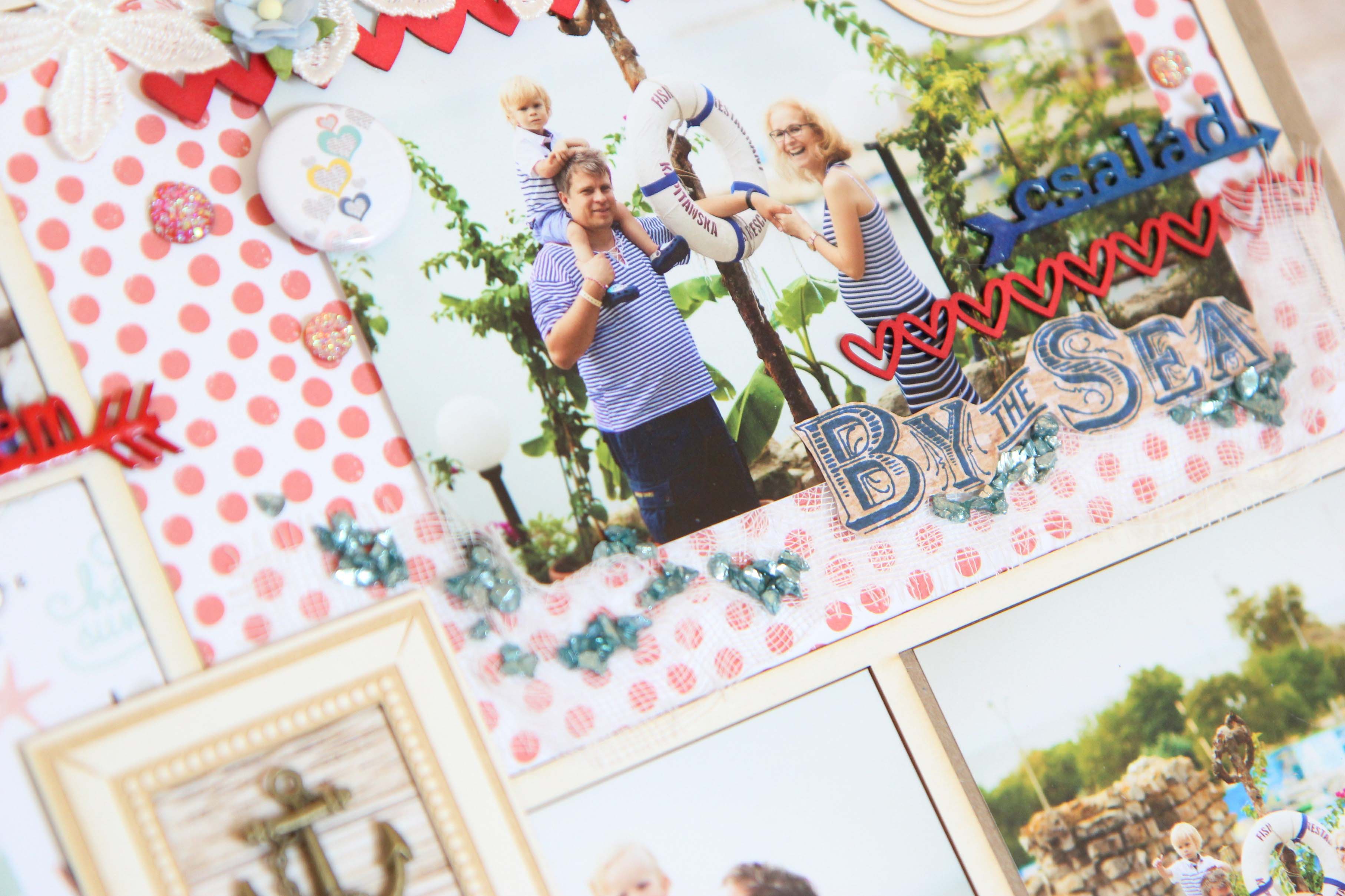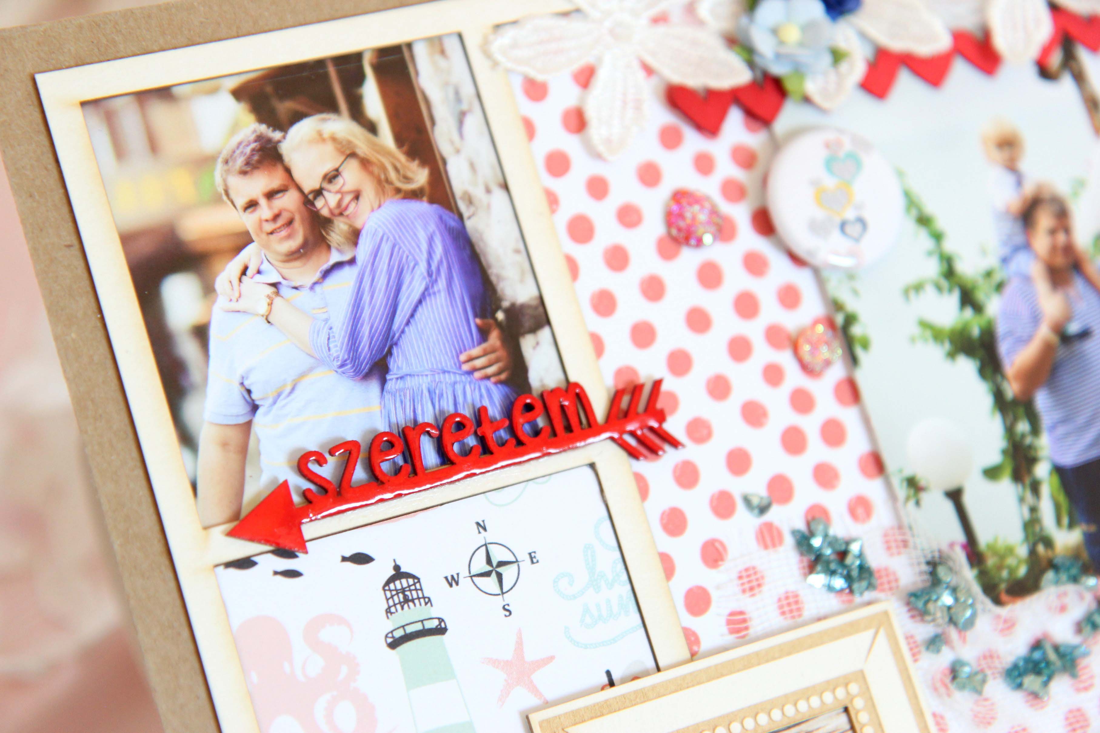 Most csak egy oldalt csináltam amire öt fotó fért el. Imádom az új osztott keretes NCsD chipboardot, mert olyan mint egy shadow box, csak síkban.