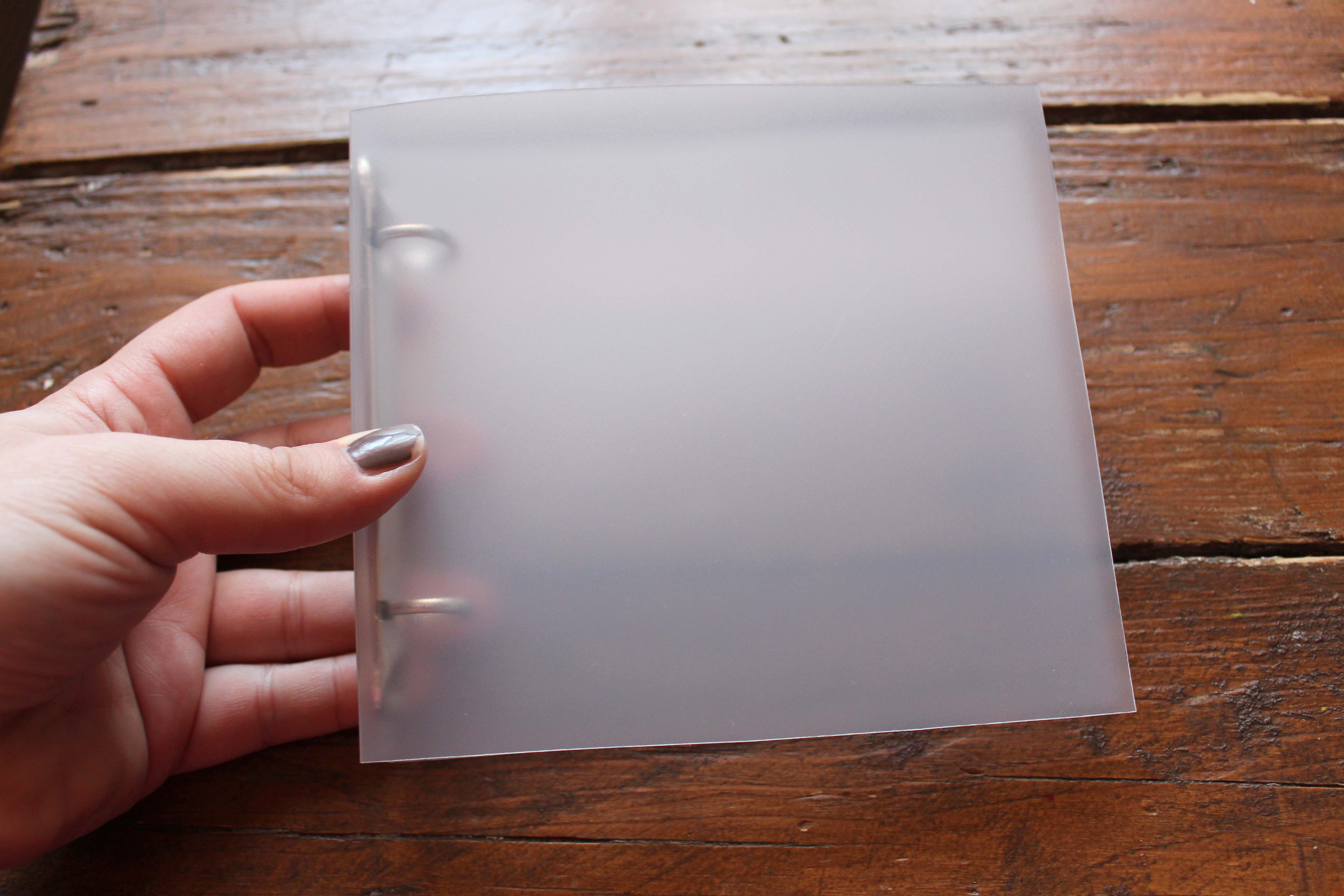1. Fogtam az albumot (A/4-es,kétkarikás átlátszó album, amit az Office Depotban szereztem be) és kimértem a gerincén 14 centit, úgy, hogy a karikás rész középre essen. Ezeket a vonalakat meg is húztam végig…majd levágtam az albumot.
