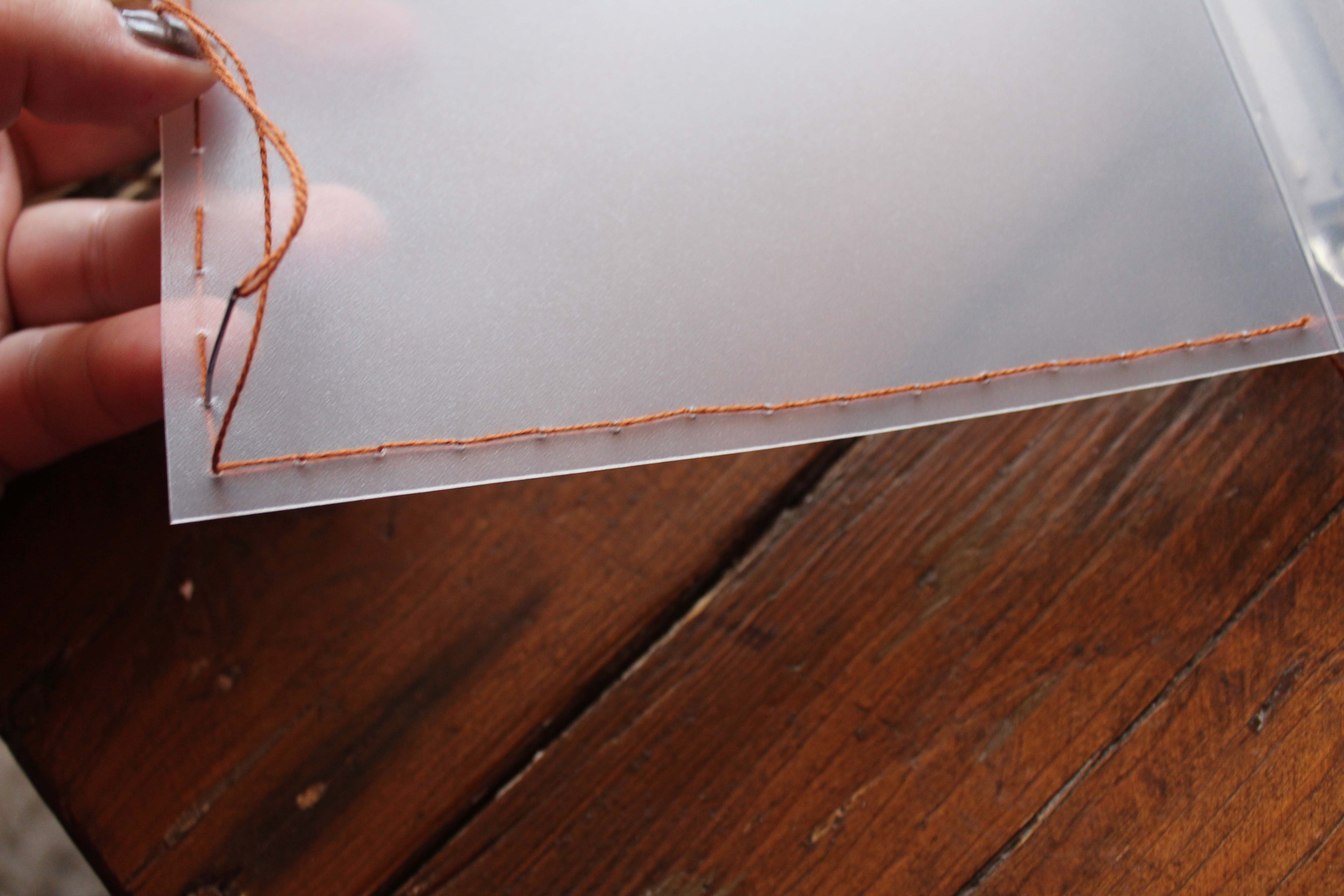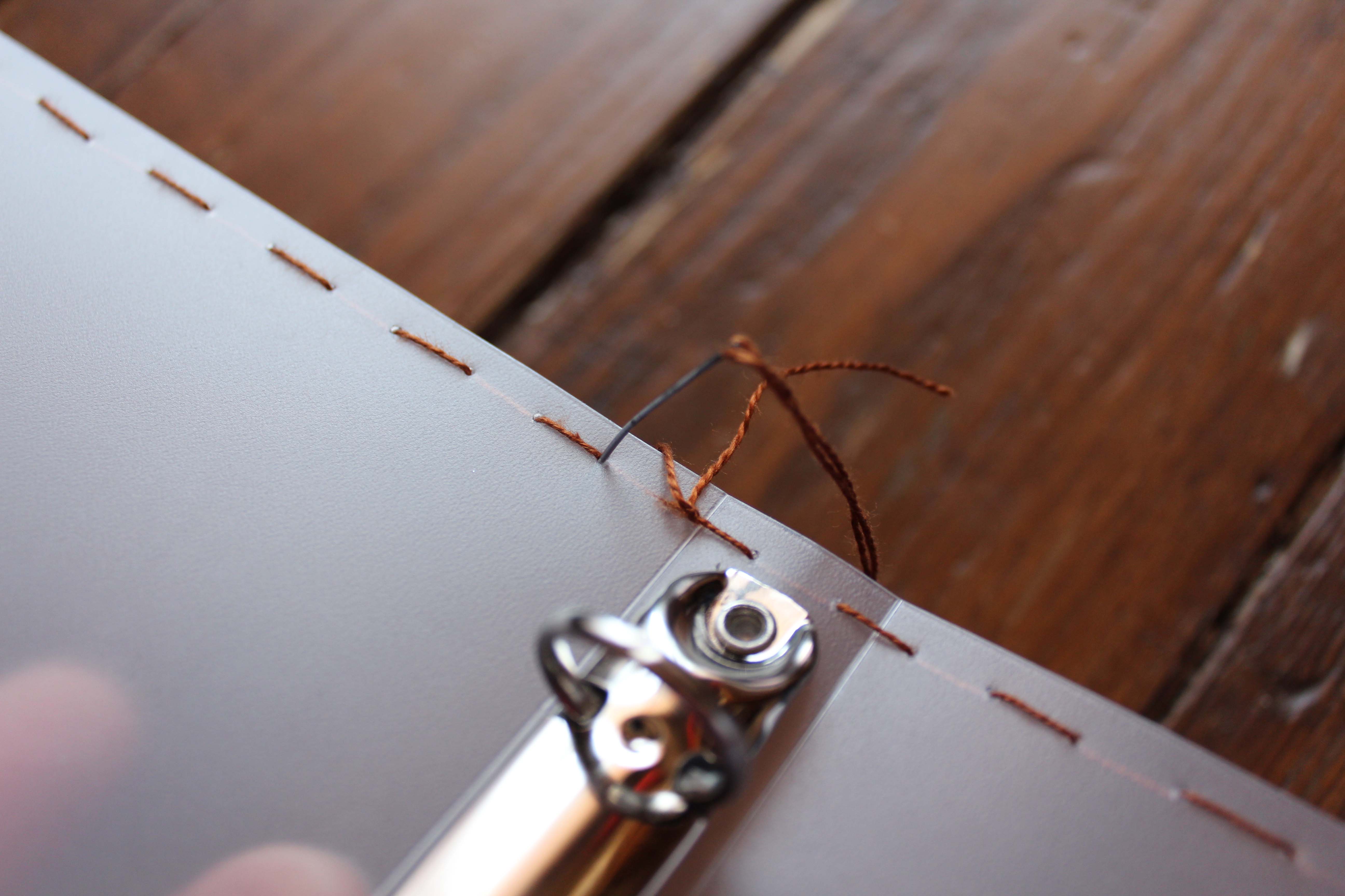 Mikor elkezditek varrni, ne kössetek csomót a fonal végére, hanem hagyjatok rá a cérnából. Mikor először körbeértek a varrással, a kezdő fonalat és a fonal végét össze lehet kötni, és nem lesz olyan nagy göb, ami zavaró.