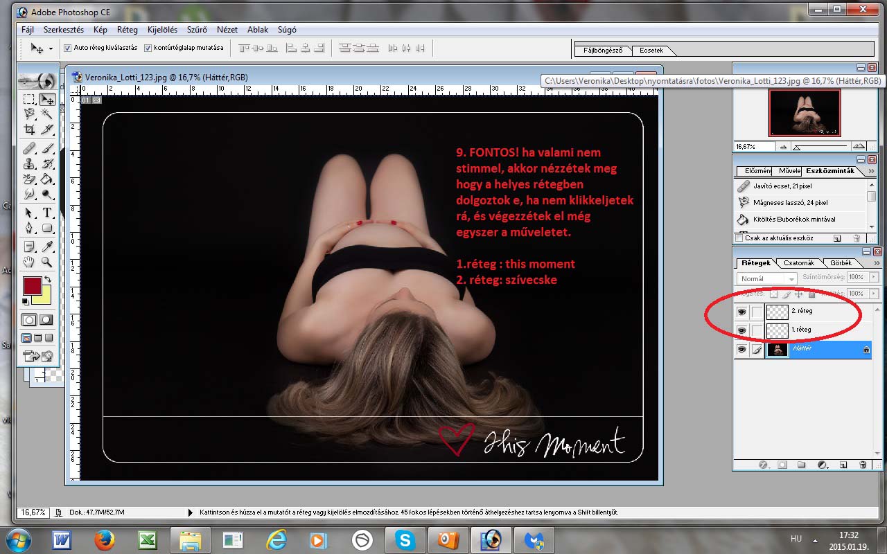 A PS (Photshop- a szerk) sok lehetőséget rejt magában. Nem akarok tündökölni, mert 1 százalékához sem értek. Mint mondtam, én csak a feliratokat szerkesztem rajta. Ez pedig egy igen gyorsan elsajátítható folyamat! 🙂