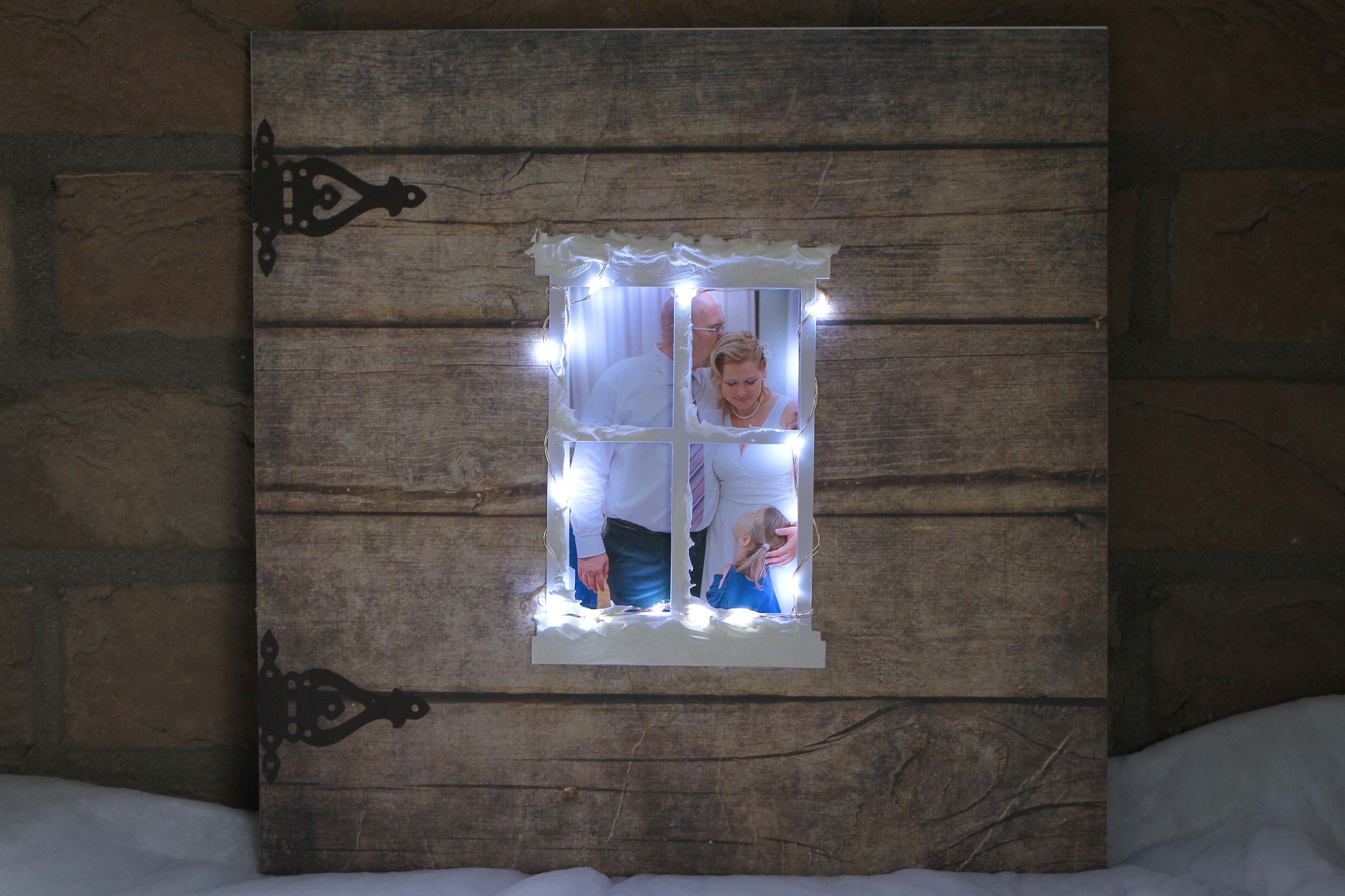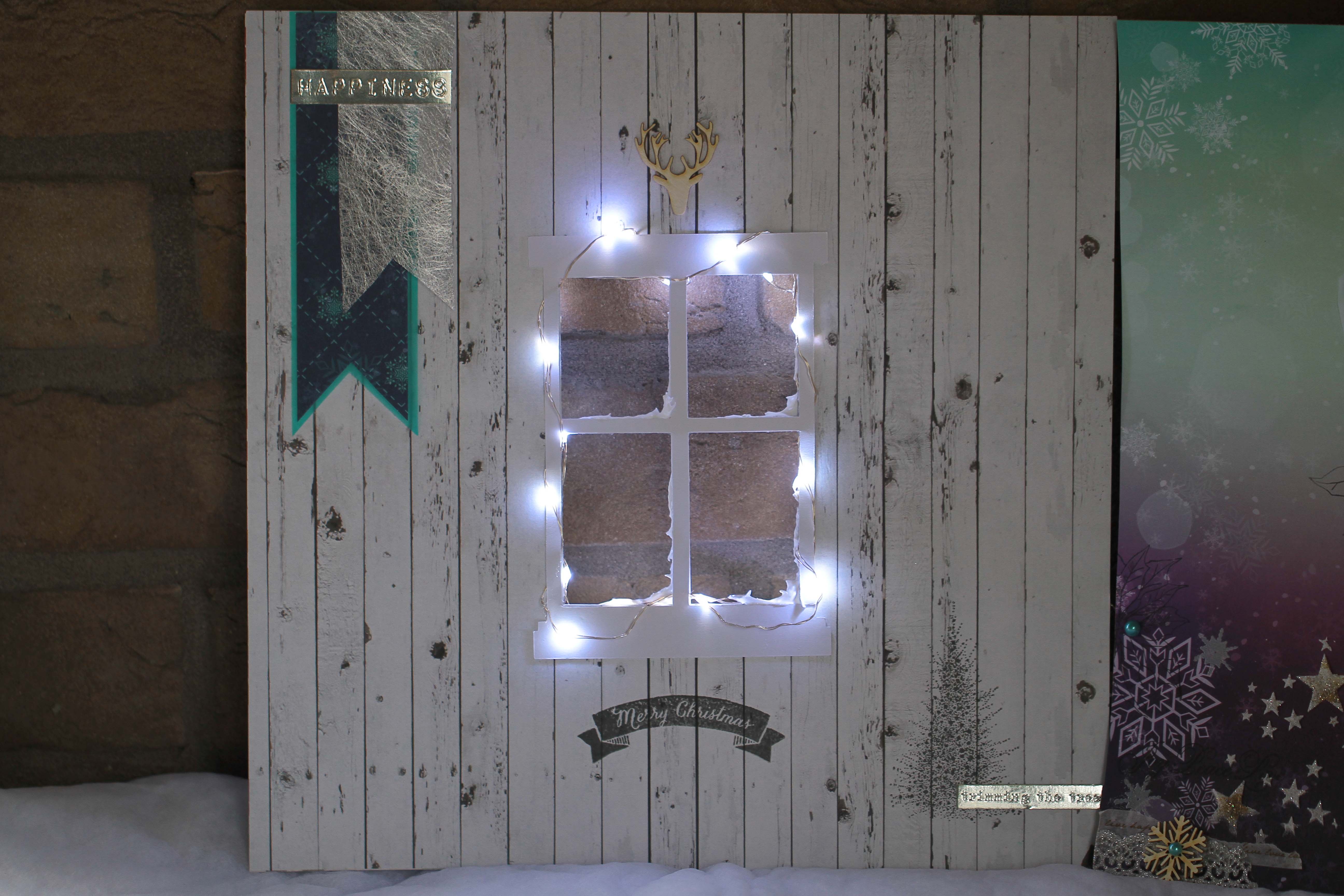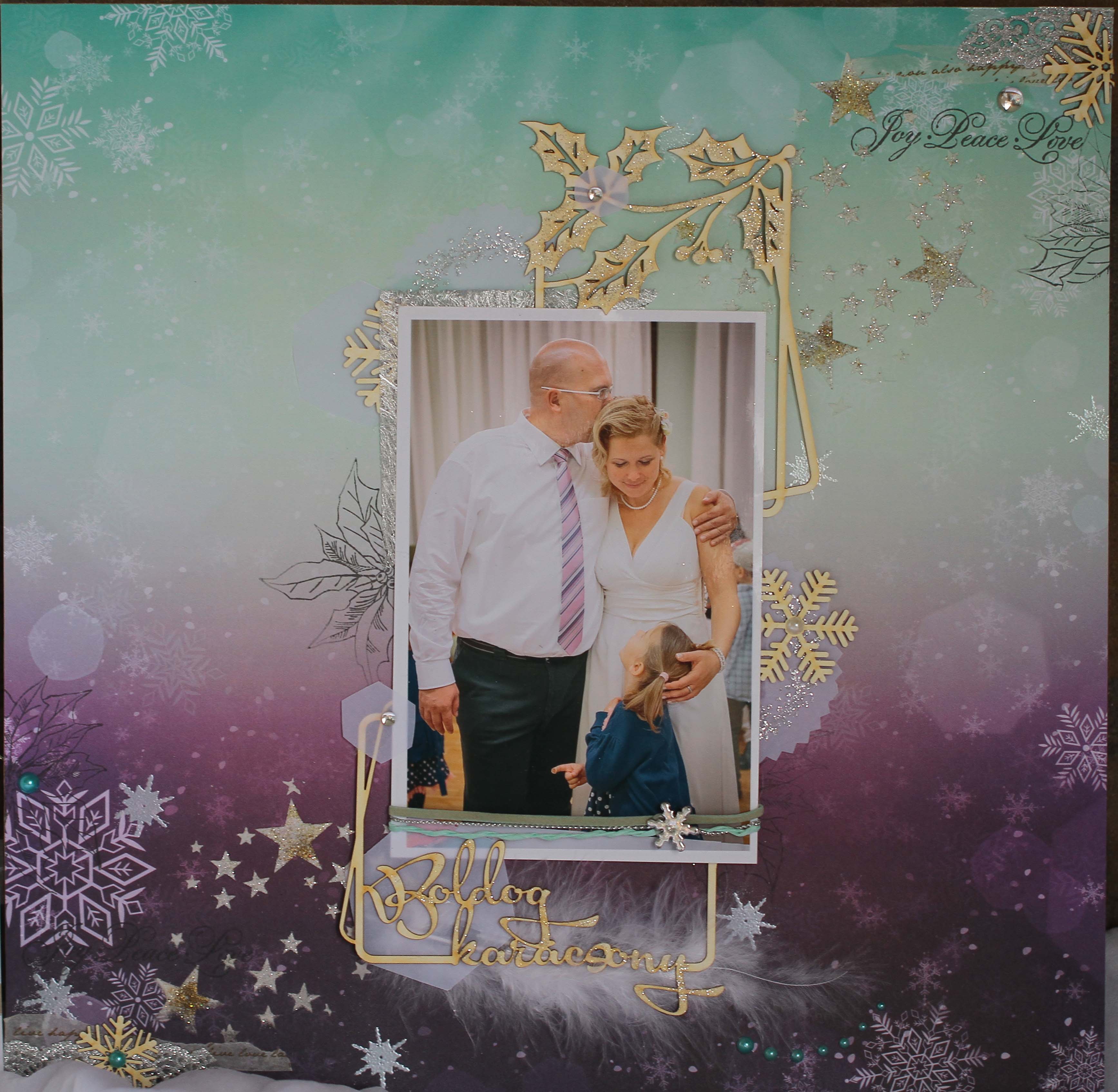 "Amikor a csapat kitalálta a fotócserés játékot, akkor én már igencsak karácsonyi hangulatban égtem. Ezért, amikor megláttam Edit fotójat, tudtam, hogy karácsonyhoz kötődő oldalt fogok kesziteni Neki. Sokáig néztem a fotót, ezt a tökéletesen elkapott pillanatot és két szó jutott róla eszembe: szétáradó szeretet. Arra gondoltam, hogy milyen jó lenne, ha minden csaladban ilyen harmónia, összetartás és szeretet uralkodna. Aztán kicsit elkalandoztak a gondolataim, és házakat lattam magam elött, amelyek ablakain betekintve hasonló kép fogad, mint Edit fotójan. Így jutottam el a két oldalas (kihajtható) oldal, valamint az ablak gondolatáig. Innen pedig már egyenes út vezetett az égősorig! :-)"
