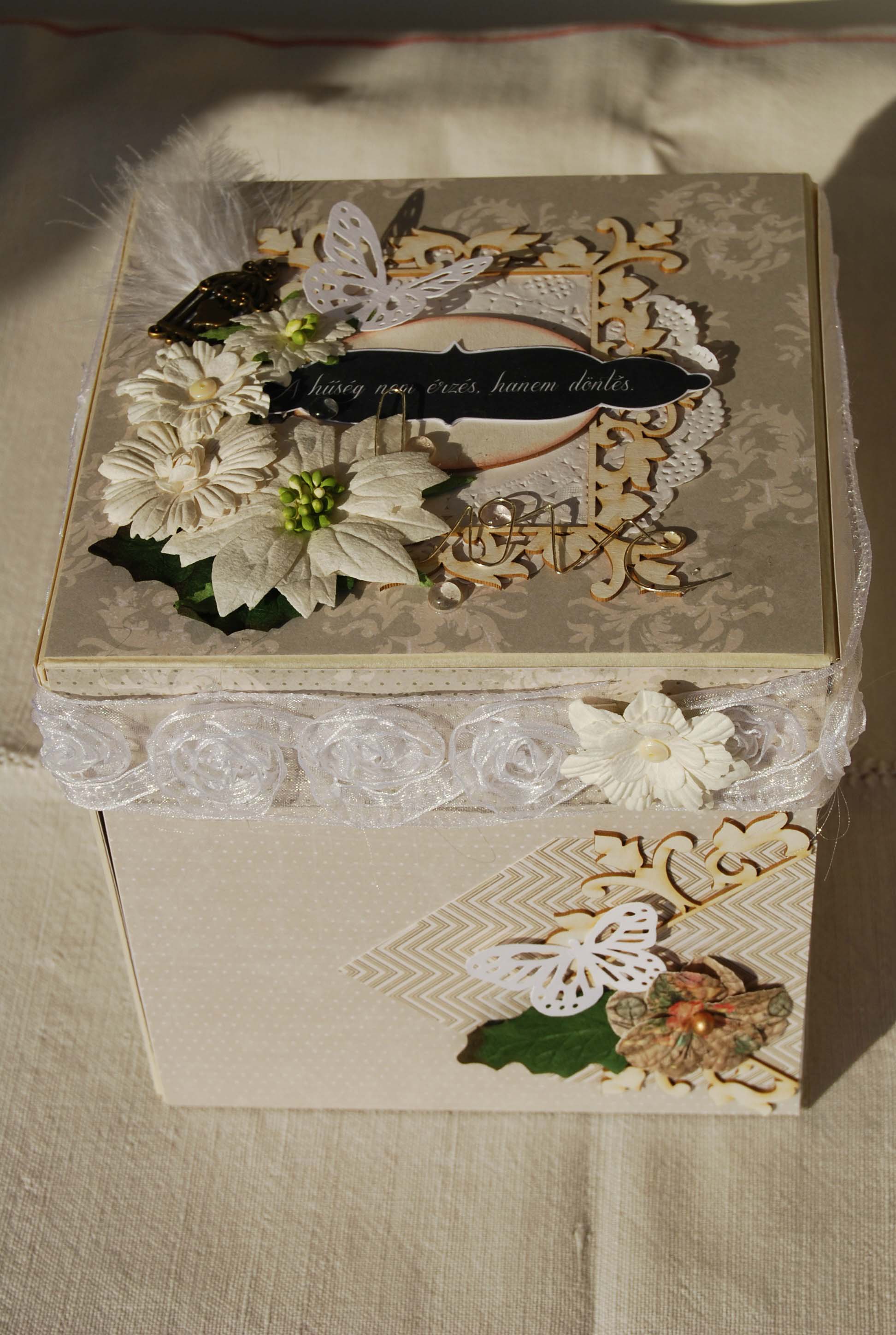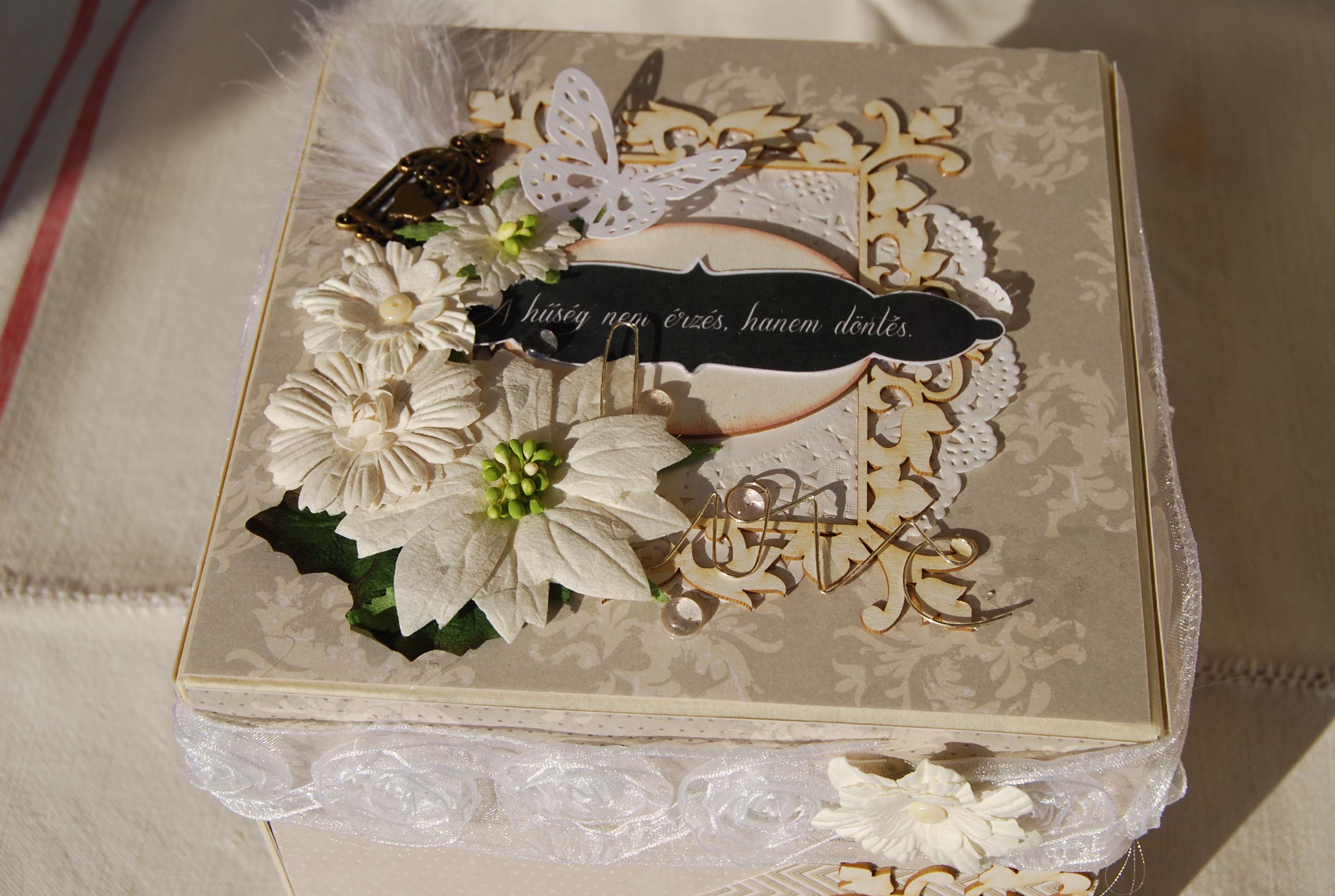 Ezt a hatalmas dobozalbumot nagyon kedves barátaink esküvőjére csináltam ajándékba, a képeket utólag fogjuk együtt bele ragasztgatni. (Hát volt öröm, bevallom!) 🙂