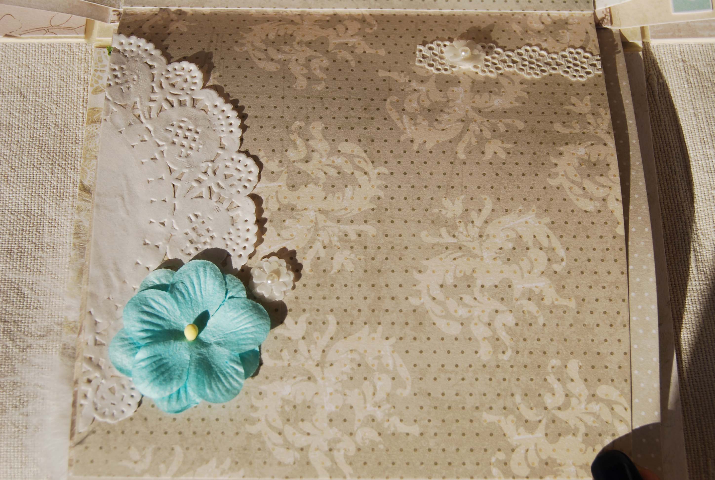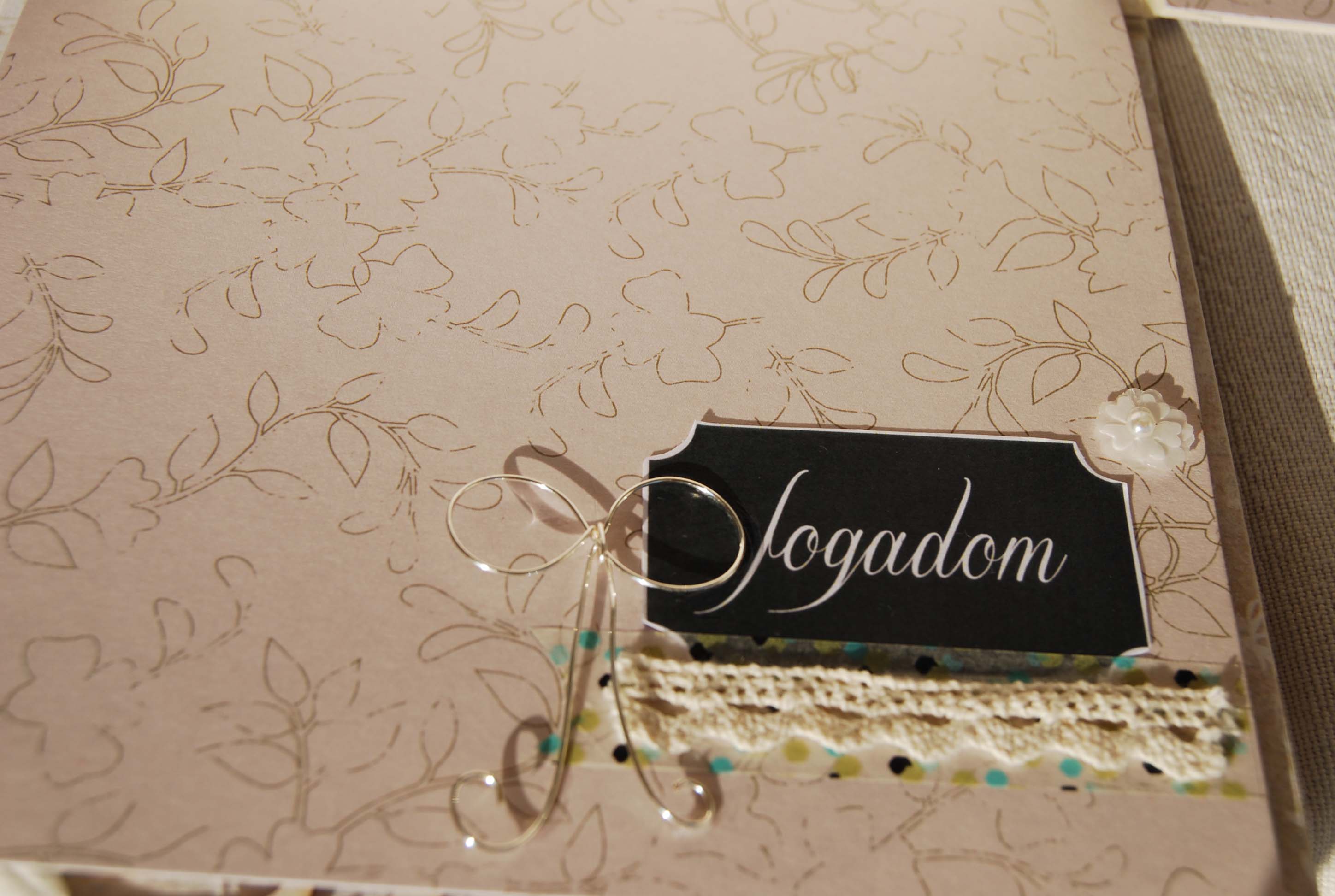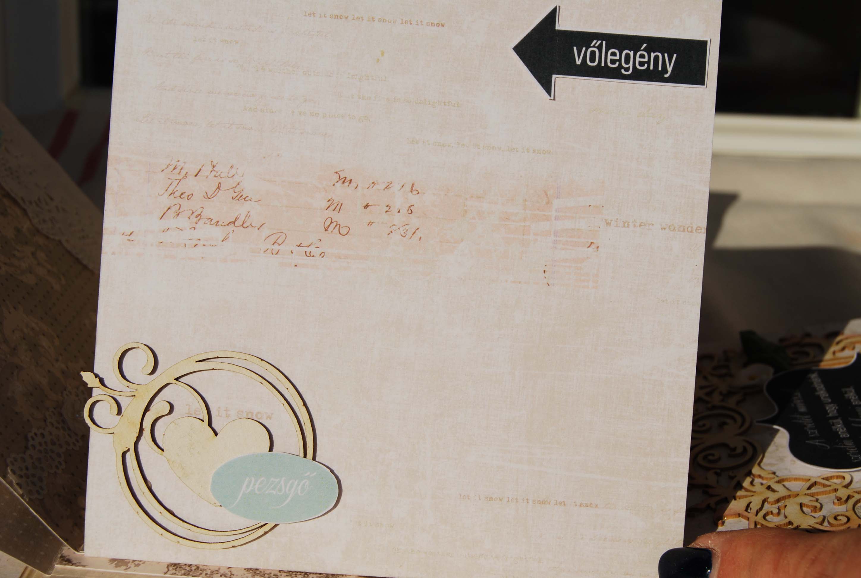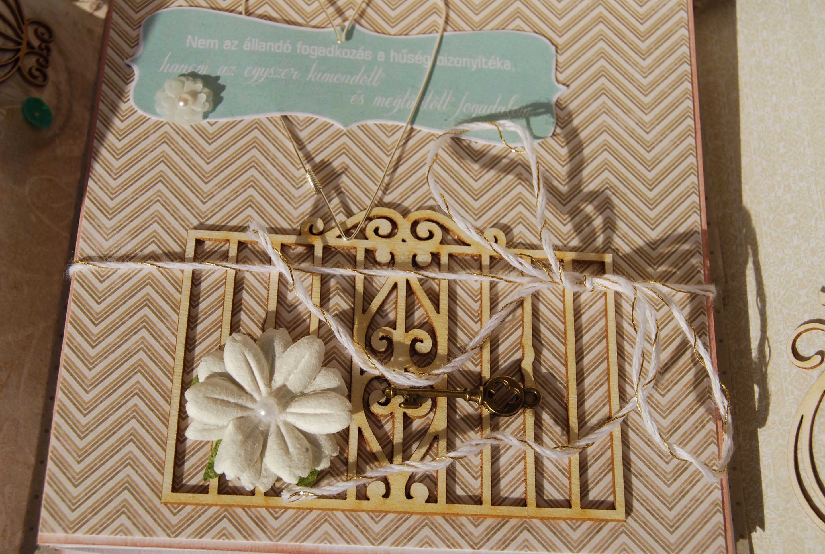 Ezek után csak a díszítés volt hátra, ami mindenkinél egyéni ízlés kérdése. Én NőiCsizma chipboardokat használtam (több csomaggal), az esküvős feliratos csomagot és néhány virágot, gyöngyöt és még amit láttok rajta. 😀