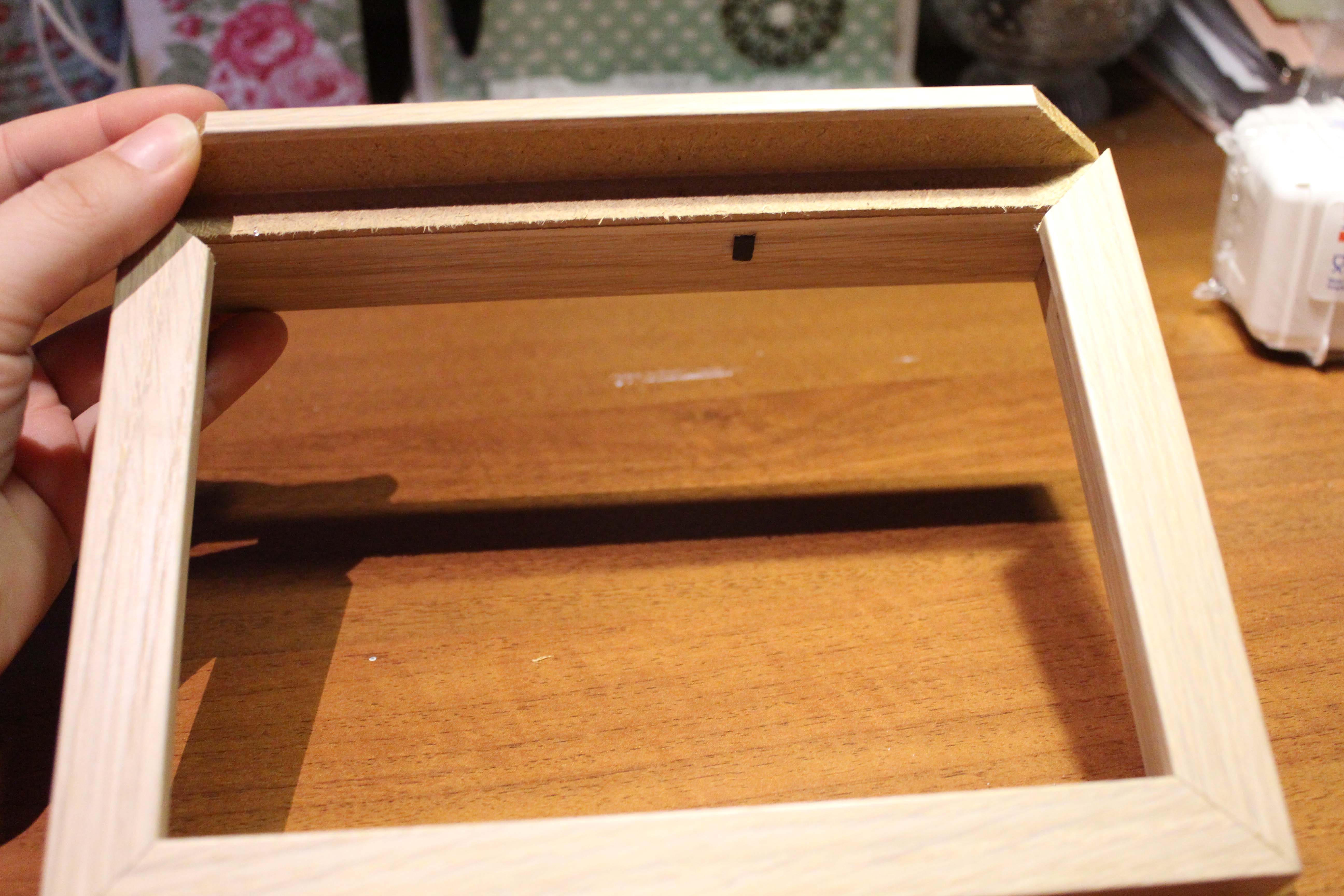 Szóval a történet ott kezdődik, hogy volt nekem egy IKEÁS képkeretem, konkrétan ez, ami egy szép napon a mélybe vetette magát, és eltörött az üveg benne, továbbá a keret egyik fele is ficegni kezdett. Tudom, van aki rögtön a kuka felé indul ilyenkor, rajtam kiütött nagyapám gyüjtögető énje, és szépen félretettem, hogy jó lesz ez még nekem valamire. És ugye, hogy igazam lett! 🙂