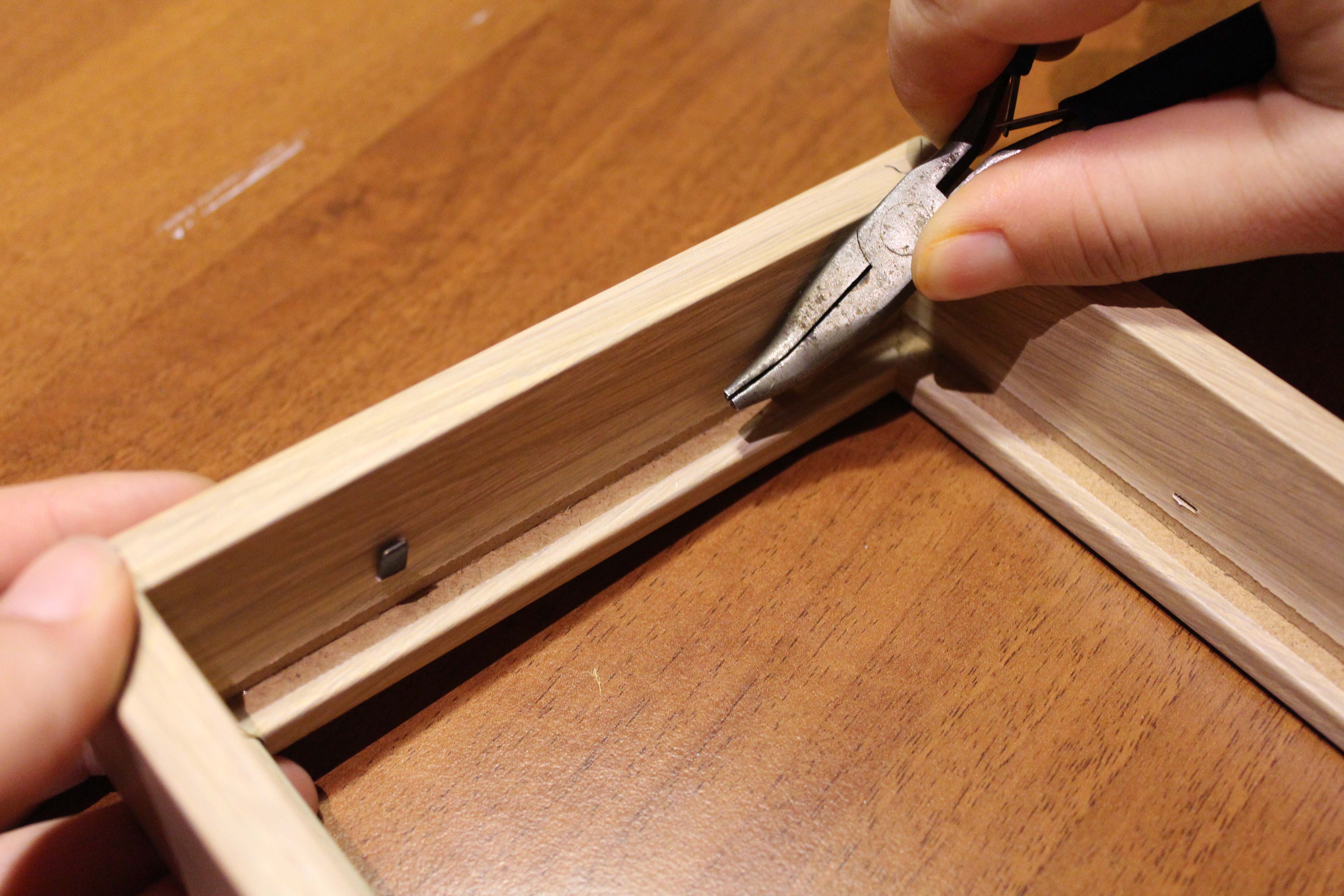 Aztán megfordítottam, és kihúztam a képtartó pöcköket egy kis fogó segítségével.