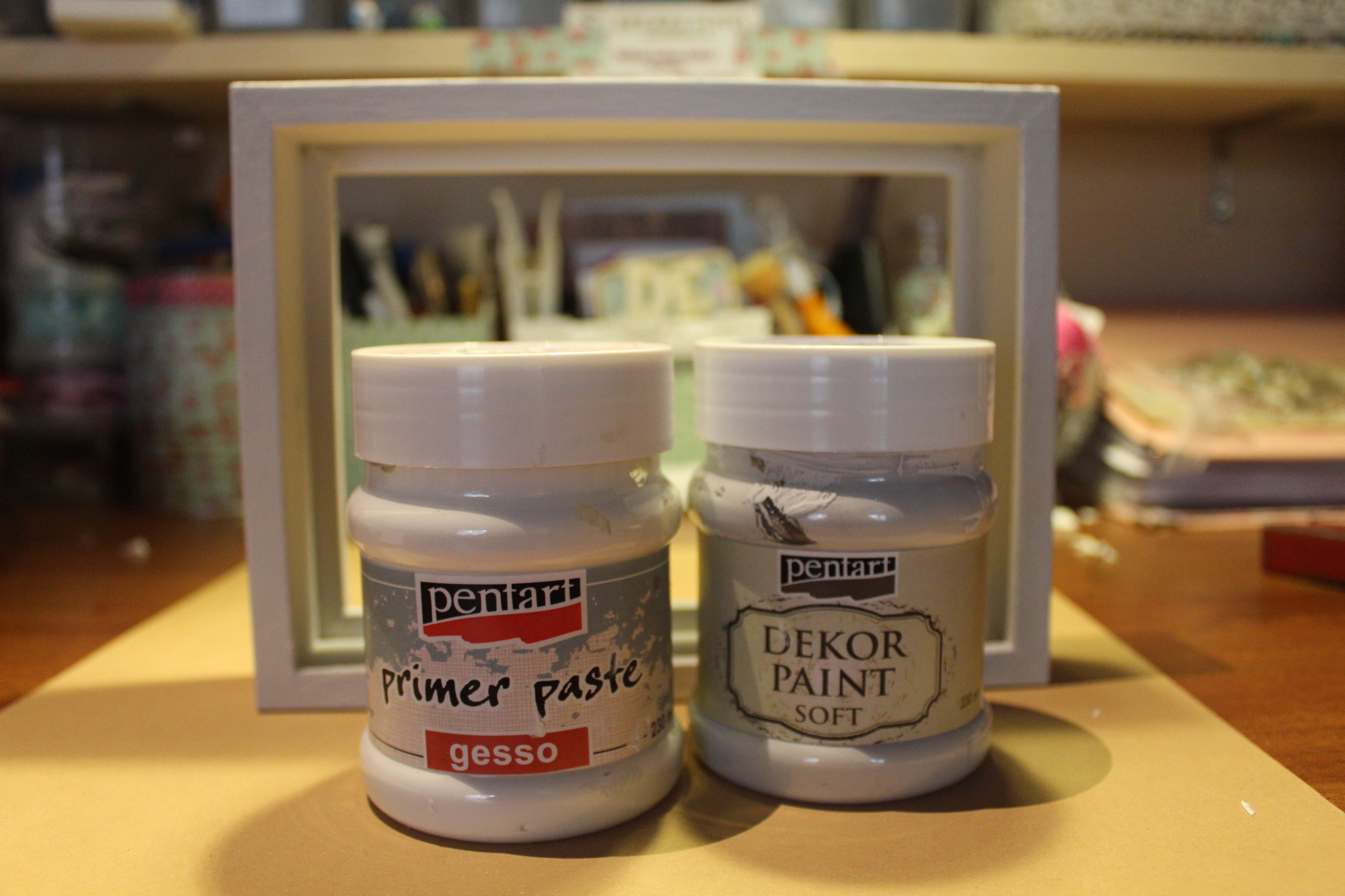 Aztán először Pentart Gessoval majd Dekor Panit Softtal lekentem piszkos fehérre.