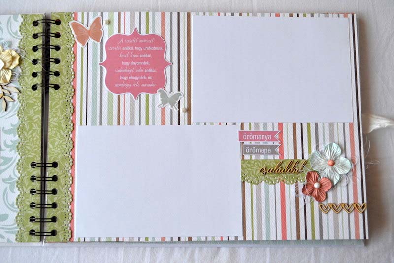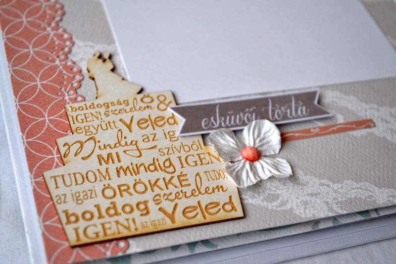 Nagyon szeretek albumokat készíteni, és egyben mindig kihívásként is tekintek rájuk. Főleg, amikor fotók nélkülit készítek kérésre, hogy a díszítés vajon illeni fog-e majd az adott fotókhoz. Így voltam ezzel az esküvői albummal is, amit megvallom, kicsit nehezen adtam ki a kezem közül 🙂