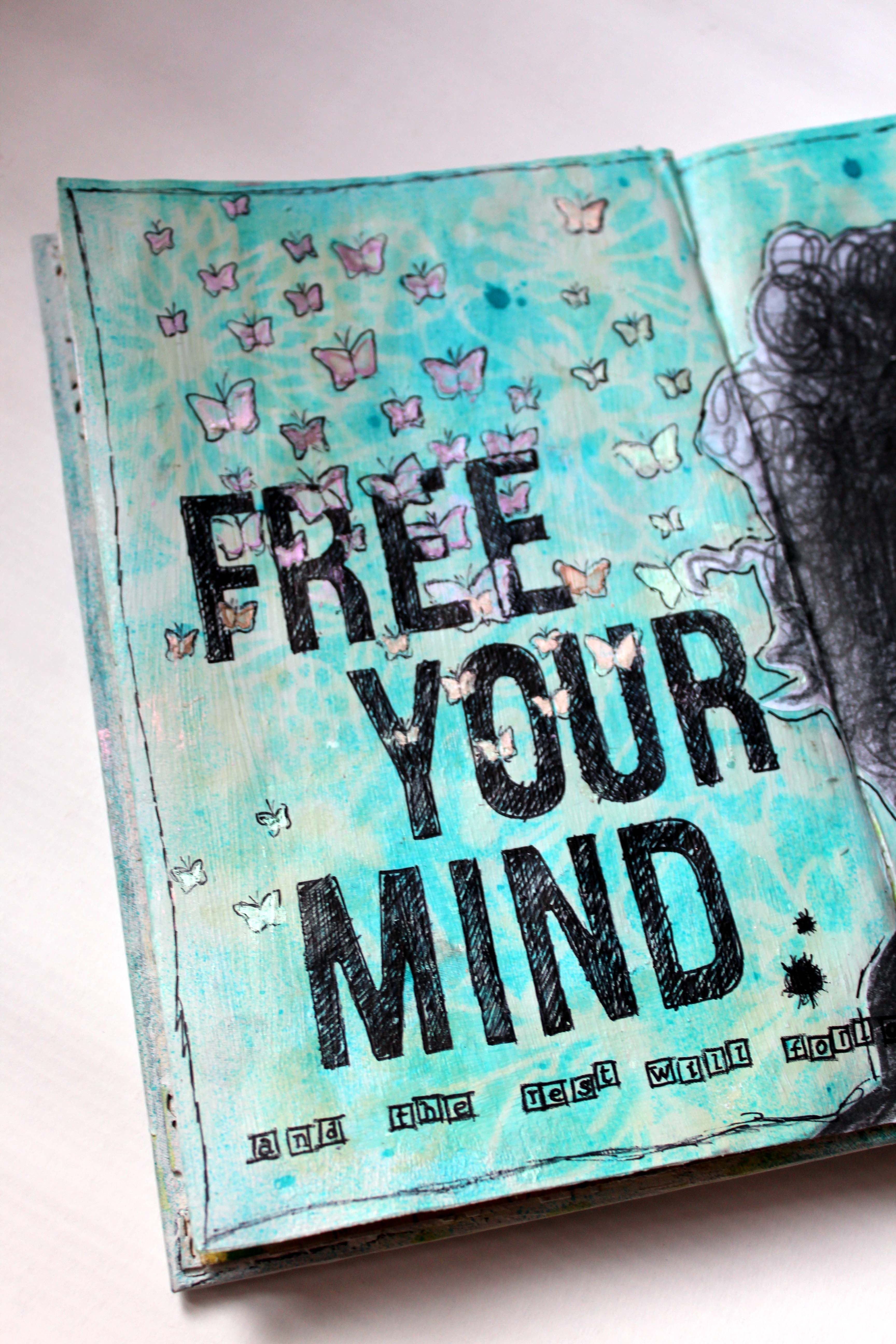 …azaz szabadítsd fel az elméd! Nos, én úgy érzem, hogy ez akkor sikerült igazán nekem, mikor belevágtam végre az art journal-ba. Aki nem tudja mi ez, annak szeretettel ajánlom Mucsi Tina írásait a témában ! 🙂 Az art journal lényegében egy művész napló, amibe kerülhet nagyjából bármi és nagyjából bárhogyan! 🙂 Ha van egy téma, idézet, vers, mese, vagy bármi, ami megfog, vagy valamilyen módon inspirál, alkotásra ösztönöz, akkor előveszem a művésznaplóm, és minden kötöttség nélkül alkotok. Csak úgy, ami épp az eszemne jut! 🙂 Mi lehetne ennél a kötetlenségnél felszabadítóbb érzés?? 🙂