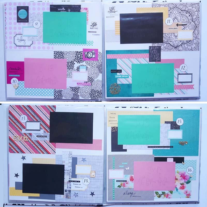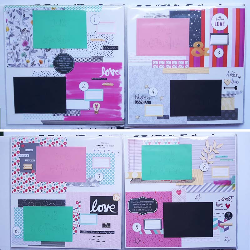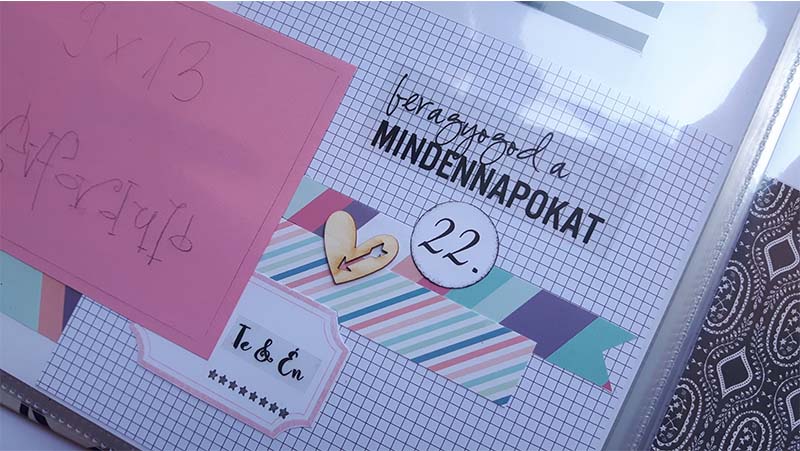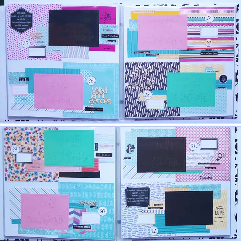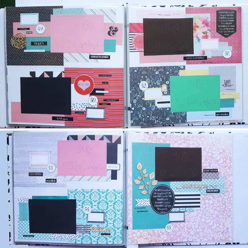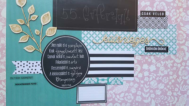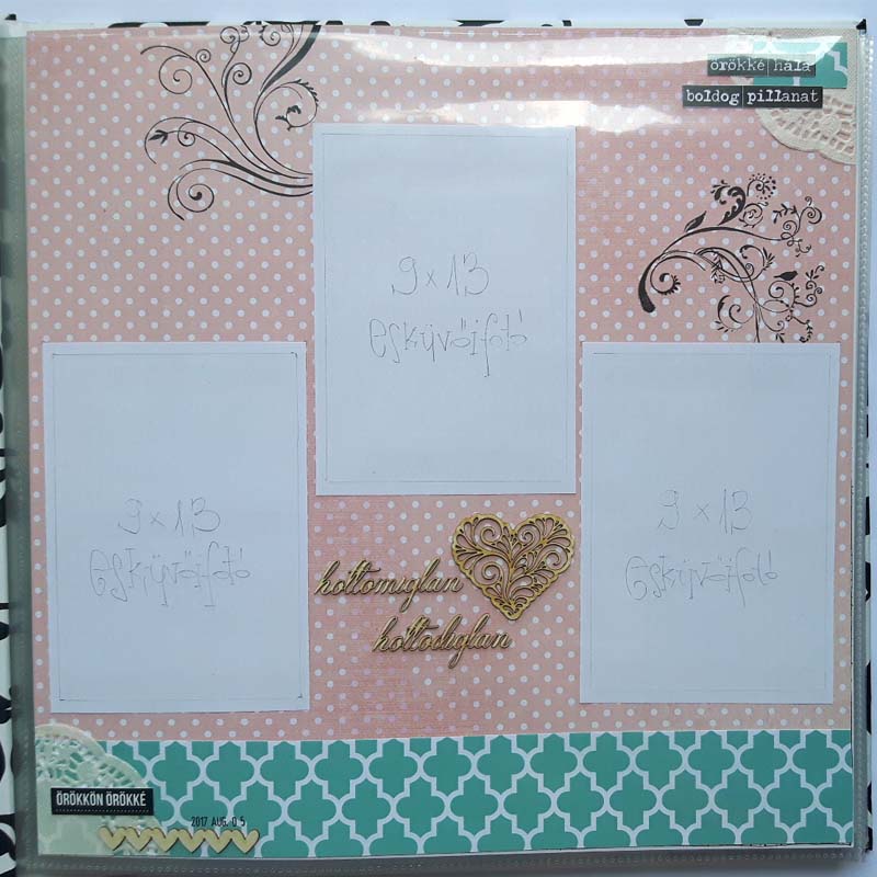 Augusztus elején a love sztori hivatalossá vált, Öcsémék összeházasodtak. A nagy napra valami különlegessel szerettem volna készülni nekik. Tavaly előtt a barátnőm esküvőjére készítettem egy házassági évfordulós albumot, ezt gondoltam tovább. A régi albumban 5 évente ugrottak a képek, de kitaláltam, hogy az mennyire szuper lenne, ha minden évükről lenne egy kép, és mindezt 55 éven keresztül… Mondanom sem kell, hogy már félúton megbántam eme remek ötletemet. Nehéz képek nélkül scrappelni… és nagyon hosszú az 55 év 😛 😀