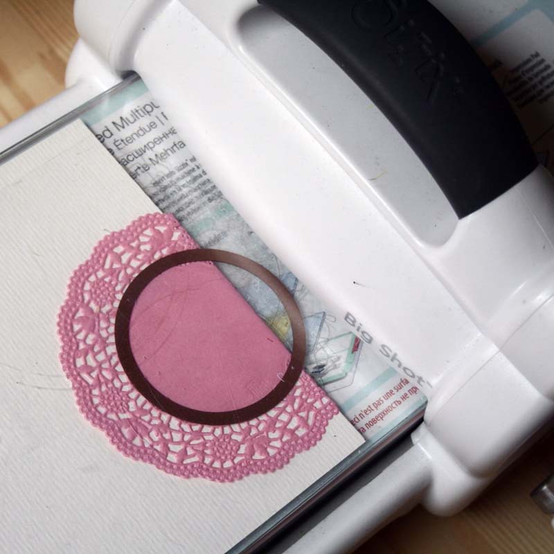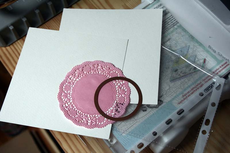 2. Az egyik alapkartonra ráhelyeztem a tortacsipkét úgy, hogy kb. az ¼ része lelógjon a kartonról. A tortacsipkét behajtottam a karton alá, majd ráillesztettem a vágósablont a és kivágtam a kört. shaker box2