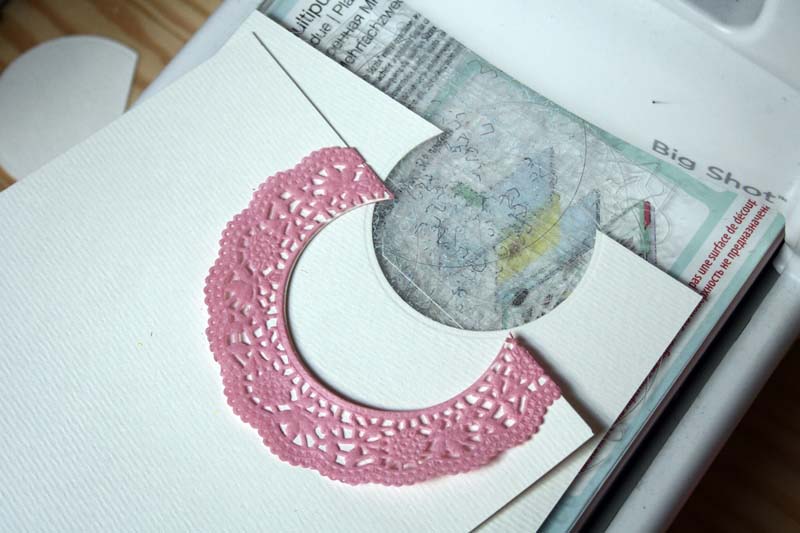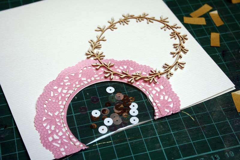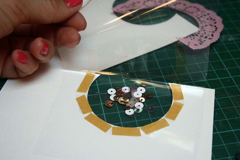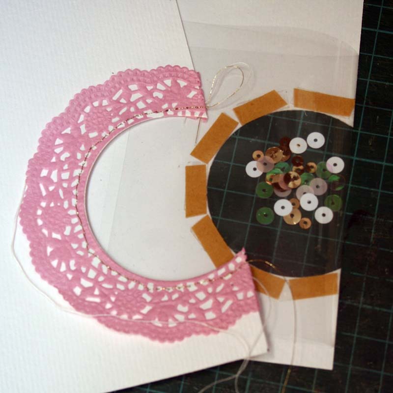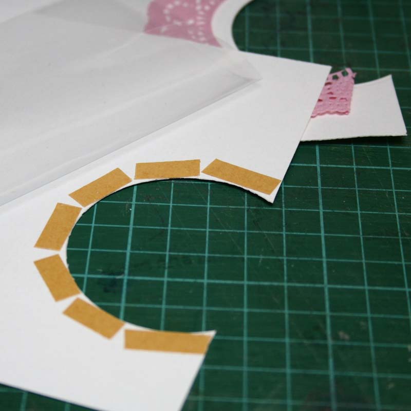 4. A felső papírra ráragasztottam a tortacsipkét. shaker box4