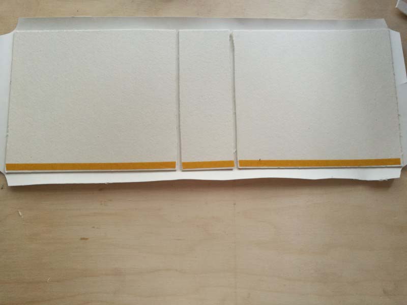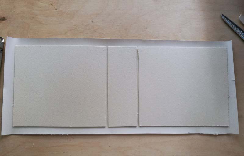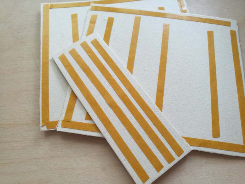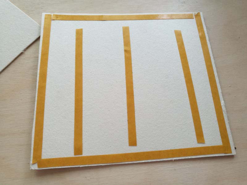 1. Felragasztjuk a sörkartonokat a kiterített könyvkötő bőrre, a következő képpen: