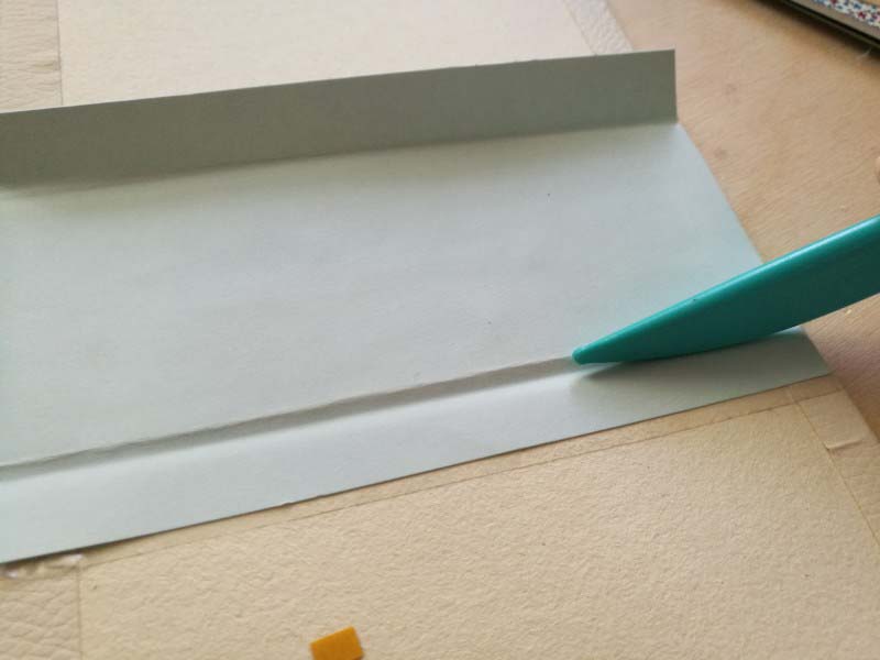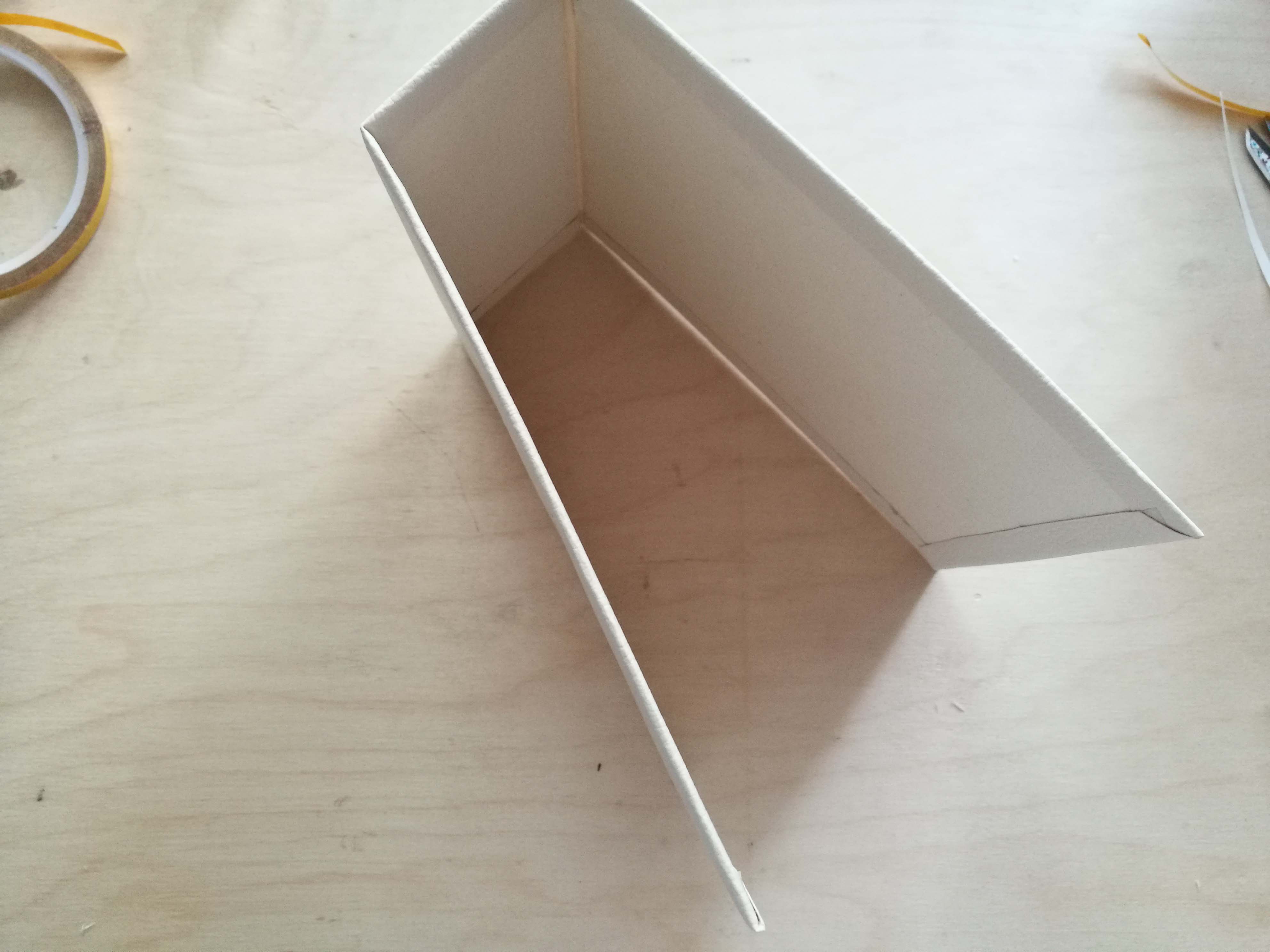 FONTOS! Először csak a gerincre rakjuk a kétoldalas ragasztót, jó sűrűn egymás mellé! A ragasztót jó alaposan simítsuk rá a sörkartonra, majd mikor a papírt felragasztottuk, azt is alaposan simítsuk le!