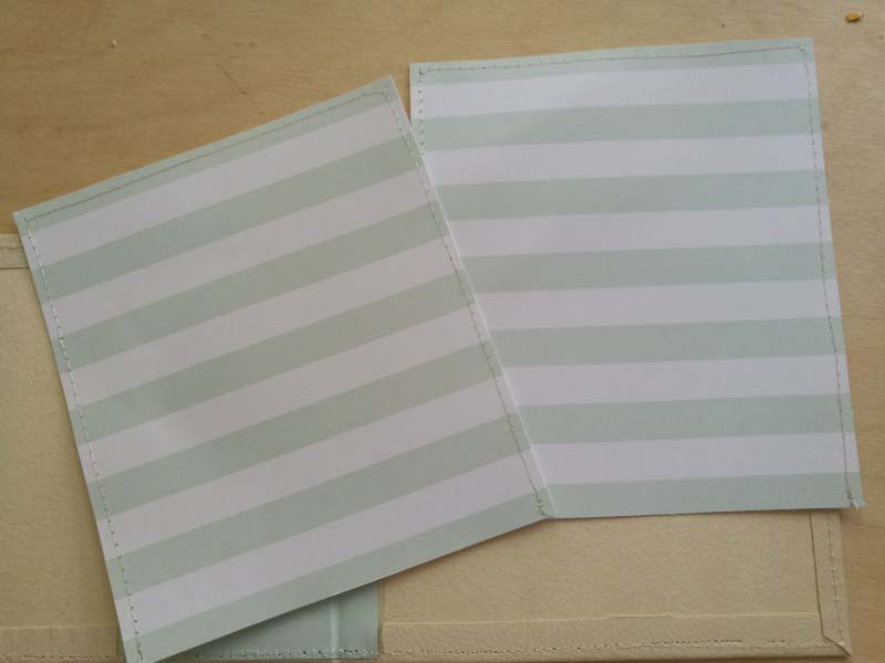 Akinek nincsen varrógépe, az ezt a részt értelemszerűen hagyja ki, és varrás nélkül csak vágja méretre a belső borítókra a papírt, és ragassza fel kétoldalas ragasztóval.