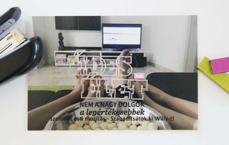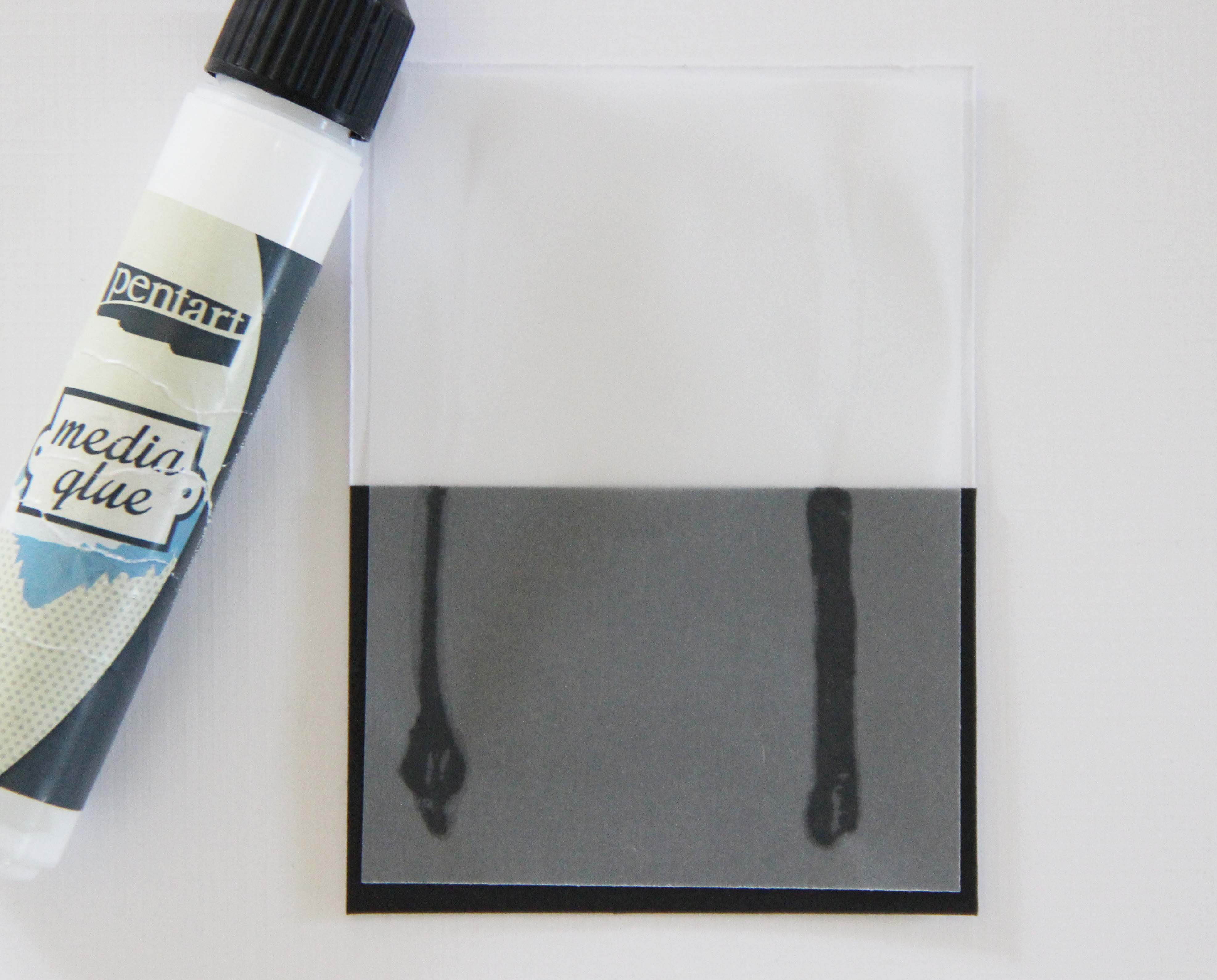 A következő legyen akkor a Media Glue… két-három pici pötty a szövegen, tökéletesen odaragad, icpi-picit felhullámosodik a ragasztásnál a pausz, de szerintem ezt csak mi vesszük észre! Ez szuper! Viszont nagy felületen ez a ragasztó sem jó a pauszhoz.