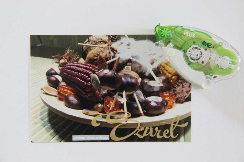 Igaz, hogy nem ragasztás, de gyorsan és egyszerűen lehet rögzíteni irodai tűzőgéppel a pausz kivágatot. Én nagyon szeretem ezt a módszert, színes tűzőgép kapcsot iis szoktam használni!