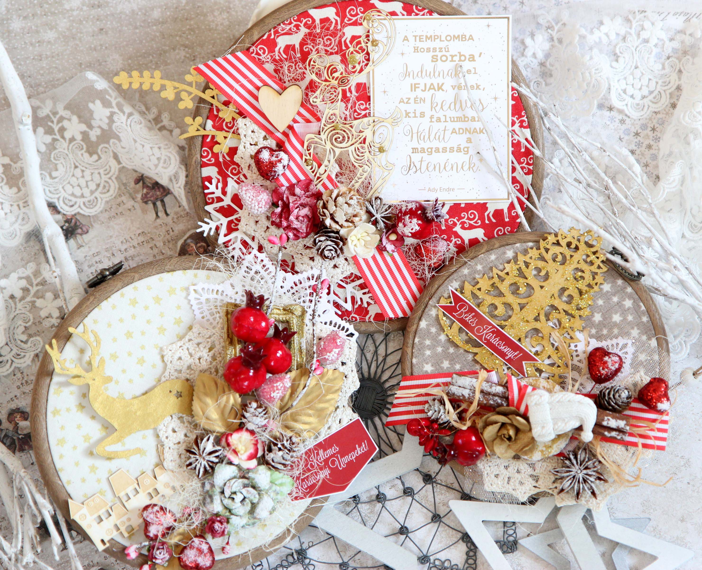 Aztán én nem tudtam megállni a disszel és egy kicsit giccses lett, de lehet nagyon kis szép karácsonyi NCsD csipivel elegansan dísziteni. Például a NCsD meghitt ünnepek kicsi keretes csipit ki lehet festeni akril festékkel vagy domborító porrol és oda ragasztani vagy összevarrni a textillel. Nagyon mutatós és egyszerű dísz lesz belőle!