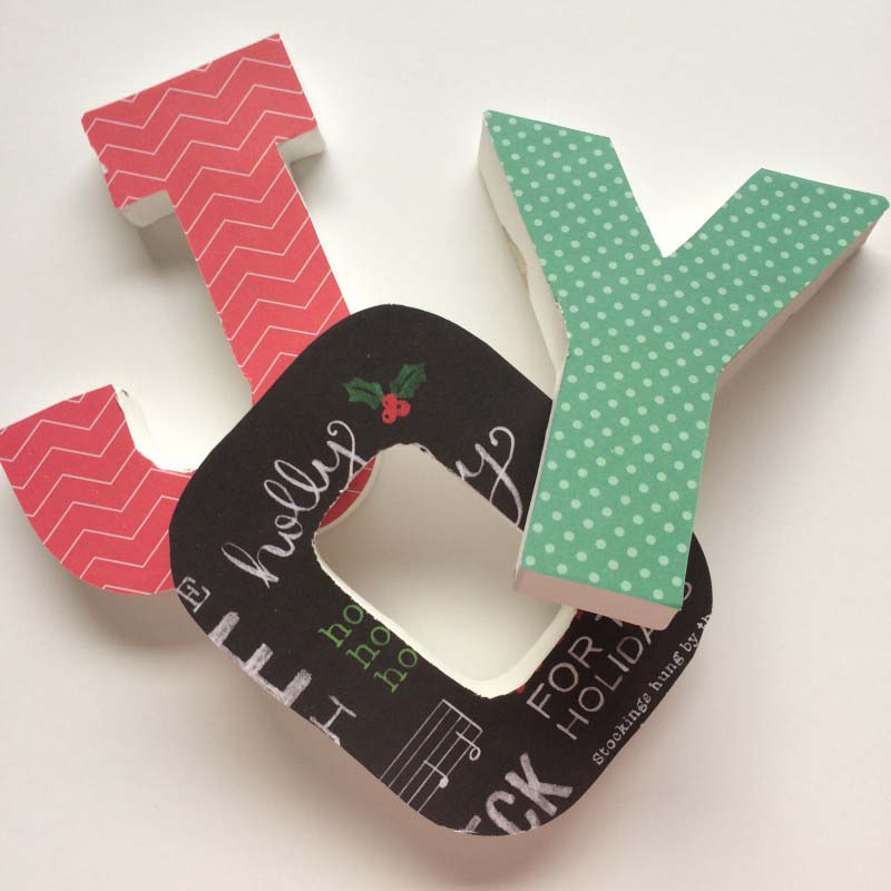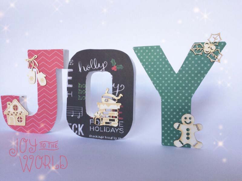 A JOY dekorációhoz a nagyméretű betűkre mintás papírt ragasztottam, majd körbevágtam és végül NCsD csipikkel díszítettem.