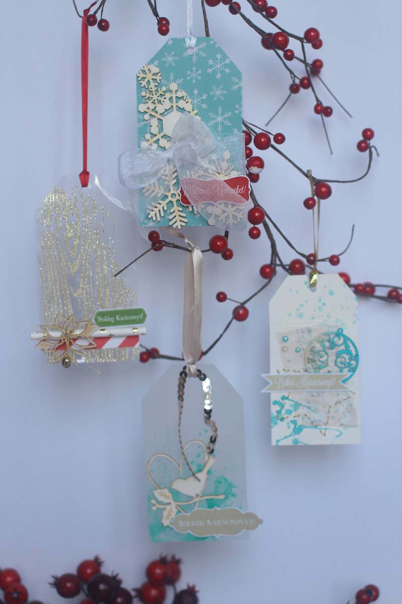A tag-eket az ajándékozáshoz készítettem el, jól mutatnak a csomagokra kötve.