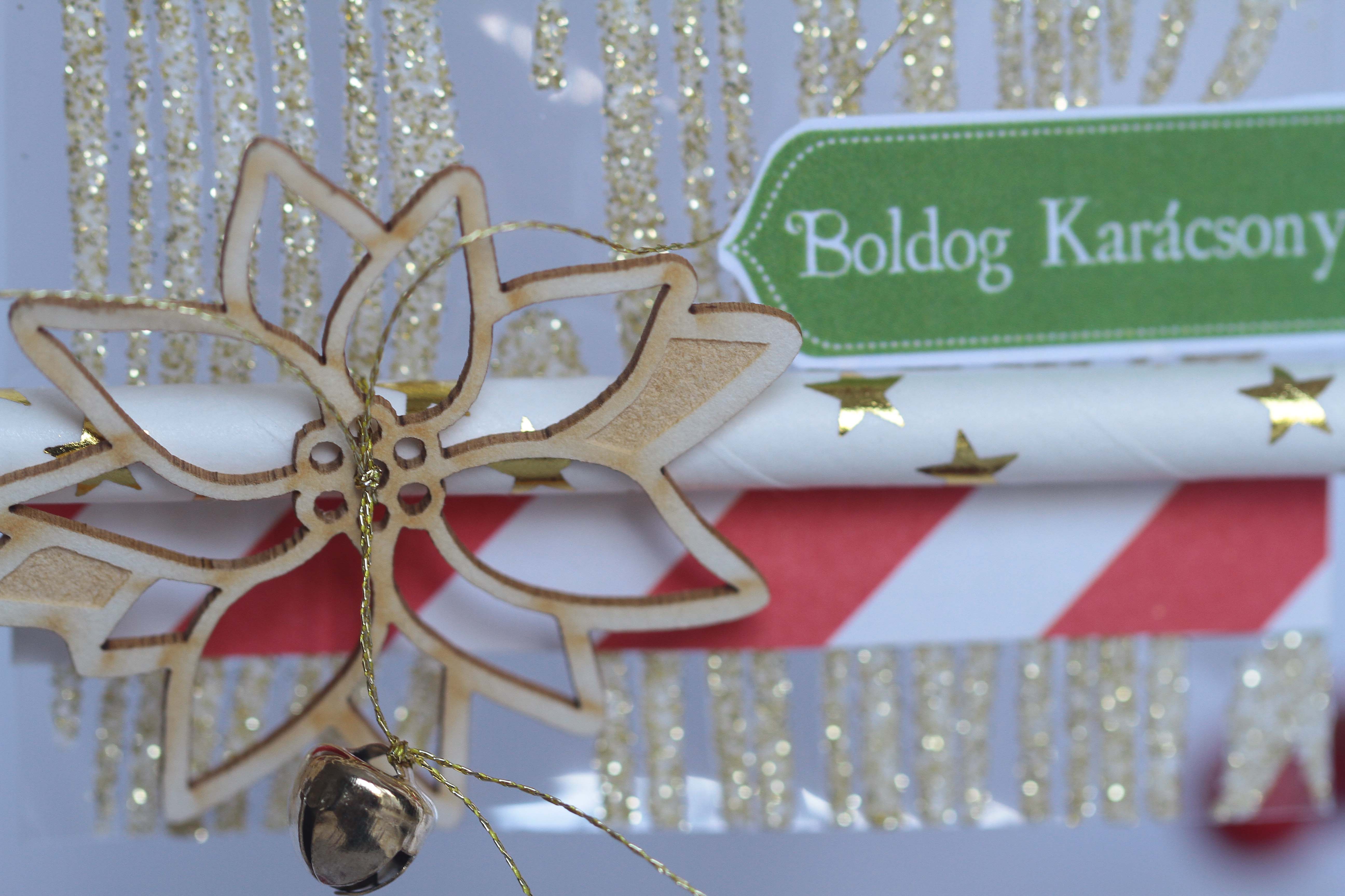 Az egyik ajándékkártyán a csillagot a kislányom varrta. A csillagmintát előre kilyukasztgattam neki.