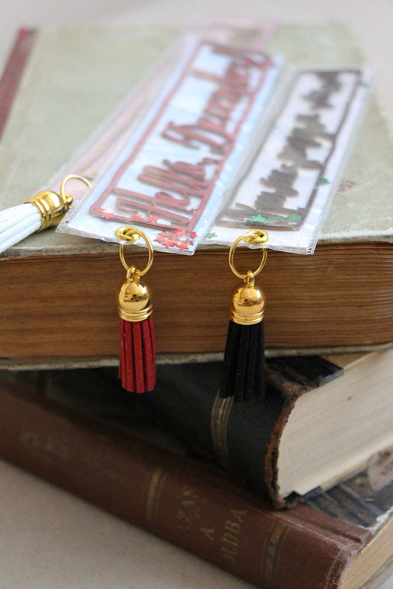 Mivel nálam már lényegében karácsony van, hiszen az egyik hőn áhított eszközömet már meghozta a Jézuska, így a Fuse-om segítségével készítettem el ezeket a bojtos könyvjelzőket. Díszítésnek a karácsonyi chipboard címeket használtam és a kis fóliás tasakokat meg megszórtam néhány csillaggal. Hm… hogy megtartom-e magamnak és nem lesz-e belőle ajándék, nah hát abban még nem vagyok annyira biztos!