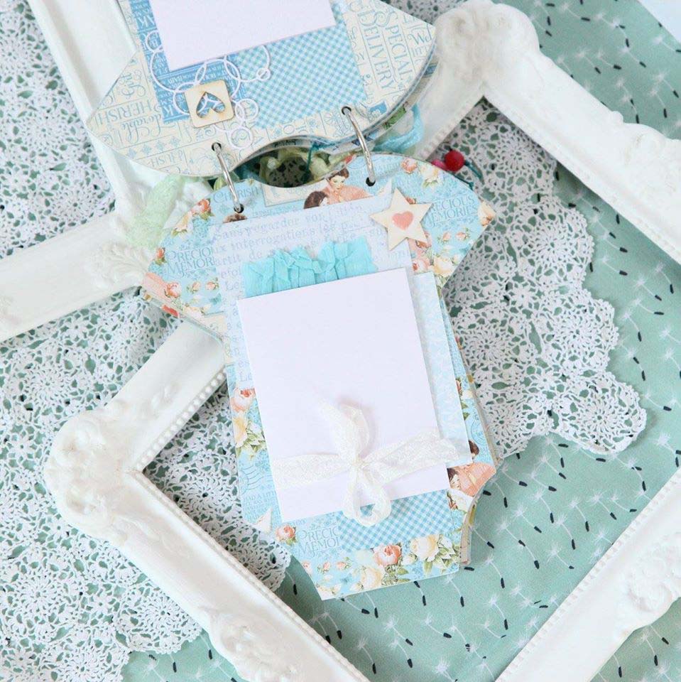 Imádom csinálni ilyen romantikus shabby, halvány színekkel az albumokat, főleg ilyen kis méretben és ez a body forma olyan aranyos, nem?