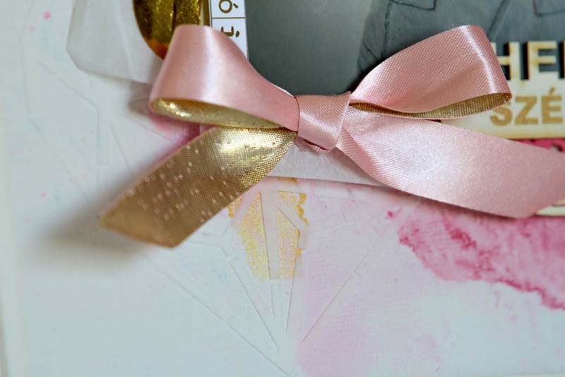 A fotó bal sarkához stencil és texture paste segítségével geometrikus szív került.