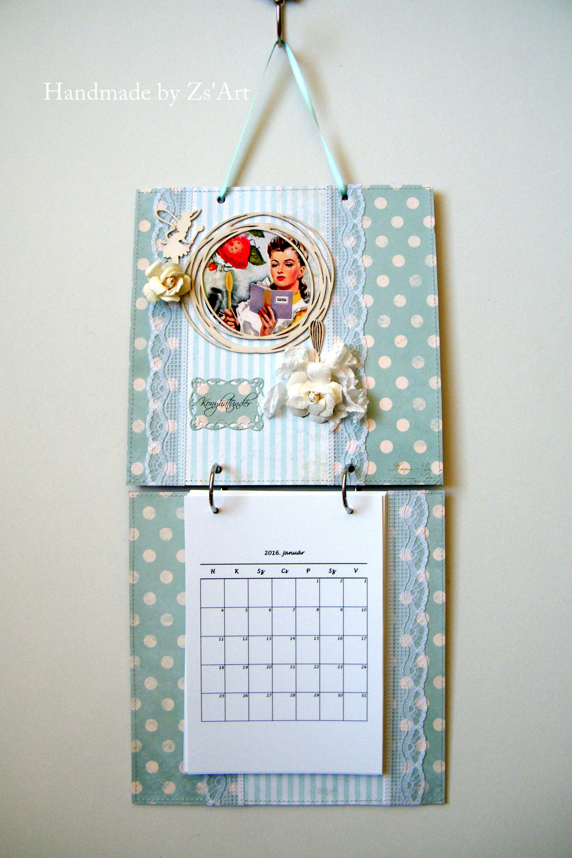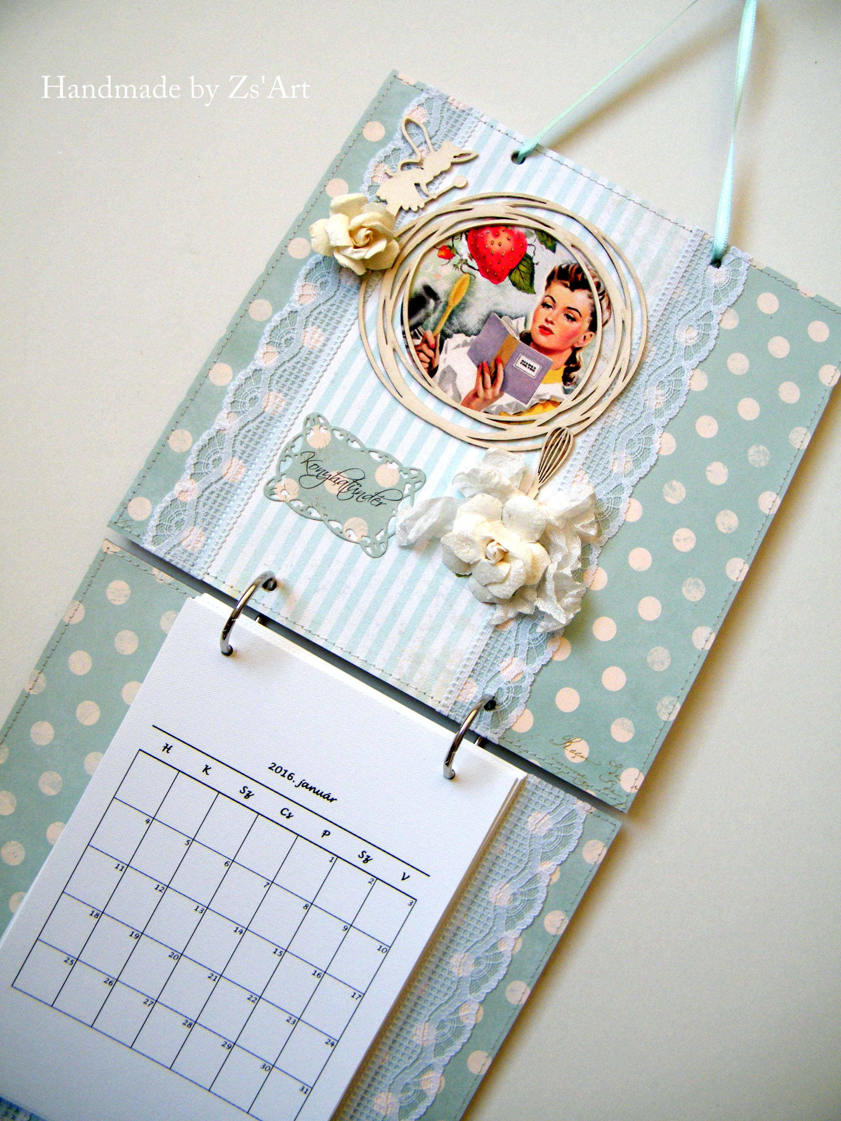 A naptár oldalait megszerkesztettem, majd A/5-ös méretben nyomtattam, és 12,6 x 18 cm-esre vagdostam.