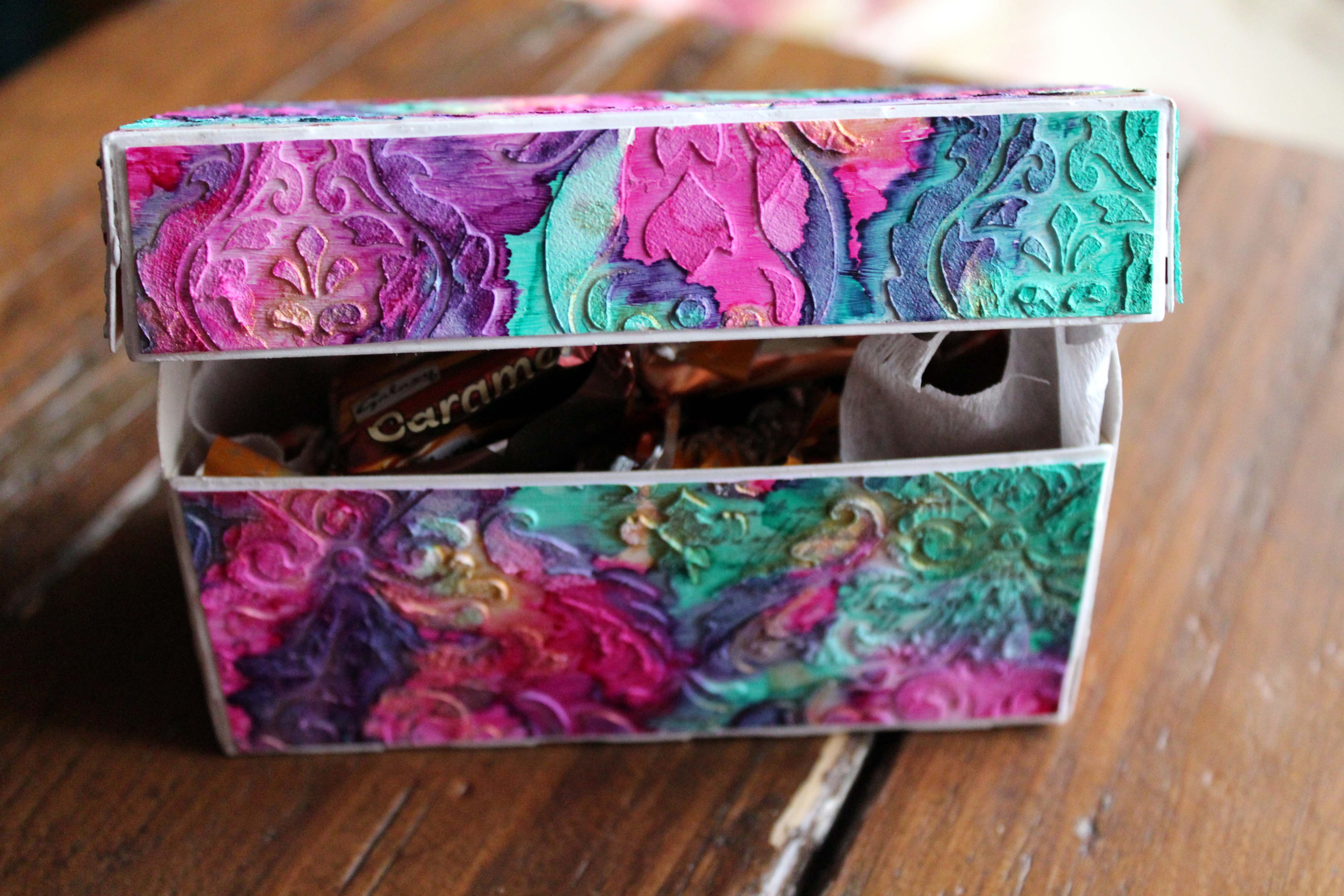 Én a dobozomat jól megpakoltam csokival, és így adom majd valakinek ajándékba, de tehetnék bele ékszert, vagy mézeskalácsot, kekszet…a lehetőségek tárháza határtalan! 🙂