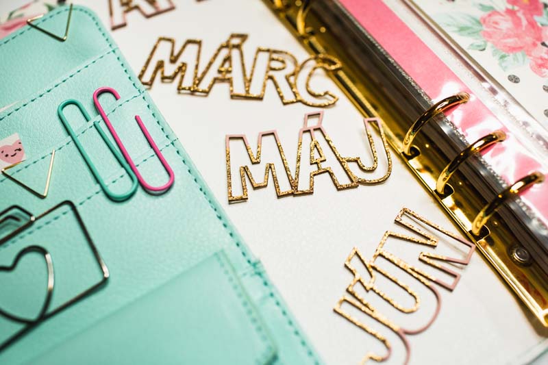 Amikor megláttam az NcsD oldalon a kontúros chipboard hónapneveket, tudtam, hogy elválasztó lapokat készítek, így ők is a planerem lakói lesznek :). Amit még imádok ezekben a csipikben, hogy annyi féle módon lehet velük "játszani", hogy az eszméletlen.
