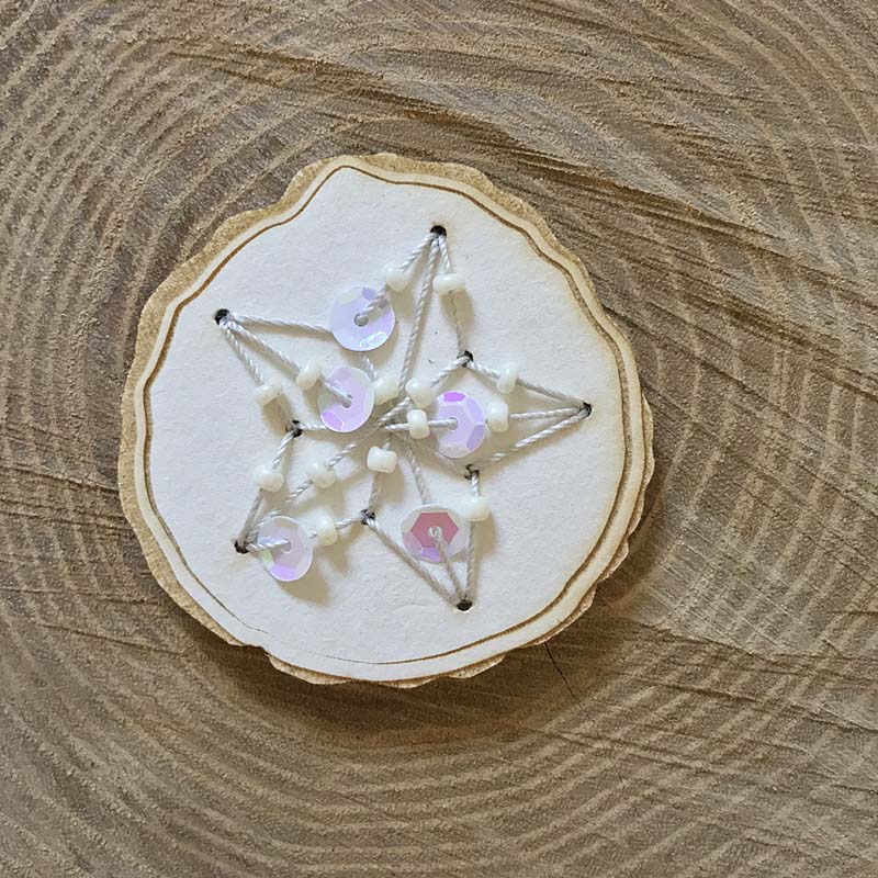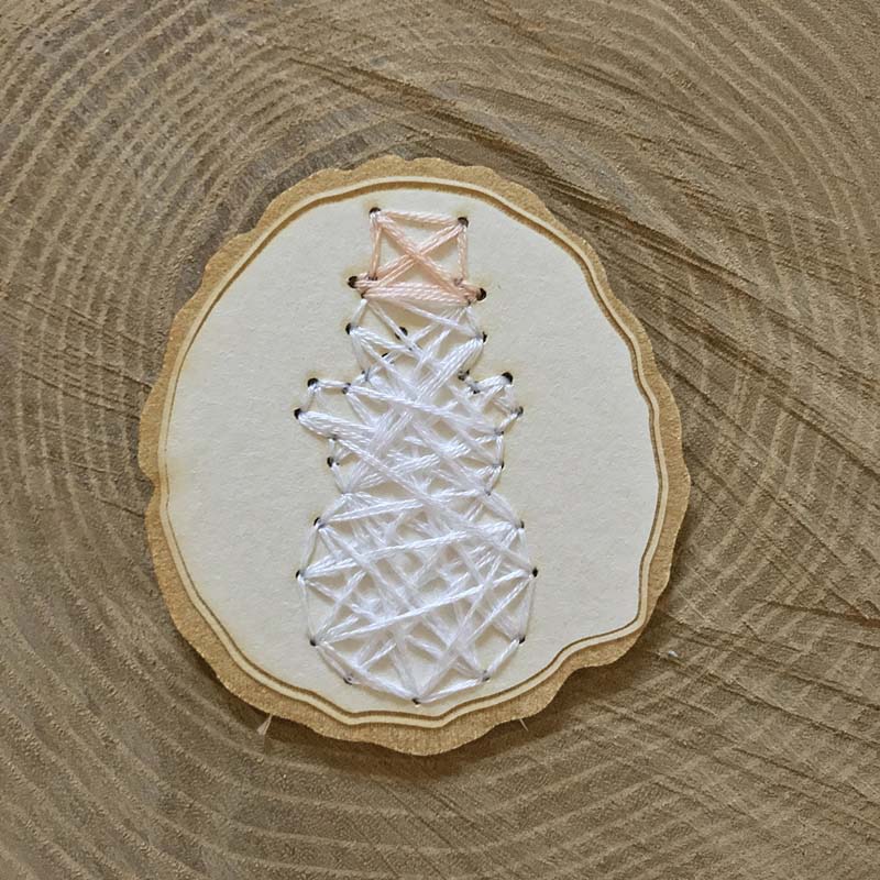 Ha például karácsonyfadísznek használod, akkor öltés közben nézd a chipboard hát oldalát is, hogy ott is szépen keresztezzék egymást a szálak és ne legyenek nagy hézagok.
