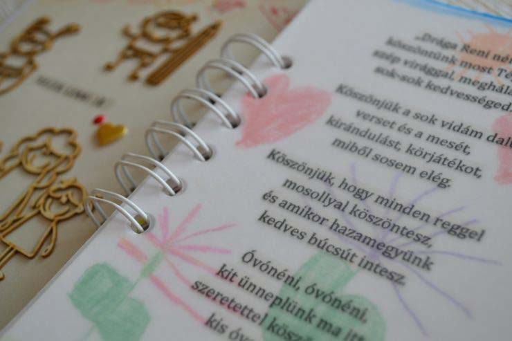 Annám egyik óvónénije nemrég ünnepelte kerek születésnapját. Ezen apropó kapcsán mi, szülők, összedugtuk a fejünket és hosszasan ötletelni kezdtünk, hogy mivel is lephetnénk meg őt. Több minden is felmerült, de végül egy nagyon személyes kedvességet találtunk ki – minden gyerkőc készített neki egy rajzot, amelyet én egy albummá fűztem össze. Sajnos nagyon kevés idő állt a rendelkezésünkre, gyakorlatilag két teljes nap nehezítve egy hétvégével, hogy elkészüljünk az ajándékkal, így szinte az utolsó pillanatban sikerült befejeznem. Örömteli volt látni, ahogy a szülők egymást mozgósították és gyakorlatilag egyként izgultunk, hogy sikerüljön egy szép meglepetést szereznünk mindenki Reni nénijének.