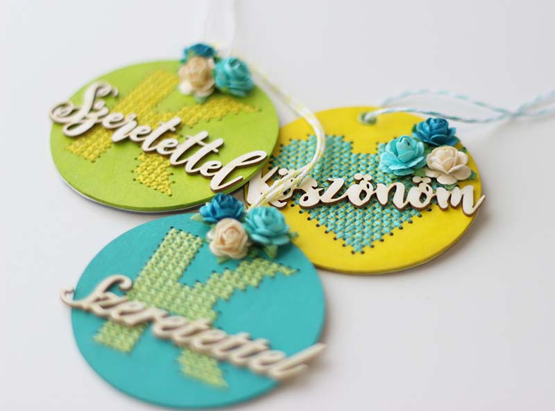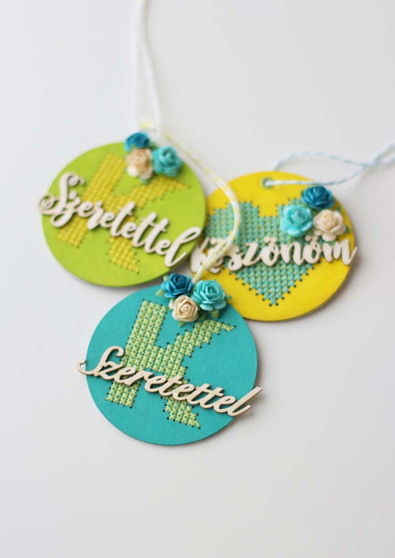 Miután lefestetem az alapokat, kihímeztem a mintákat. A hátuljára a kisfiam anyák napi ünnepségen készült fényképét ragasztottam. Az elejére kerültek a feliratok és a papírvirágok. Az elkészítése nagyon egyszerű volt, bár a hímzés kicsit időigényes, de hát én nagyon szeretek ilyenekkel bíbelődni.