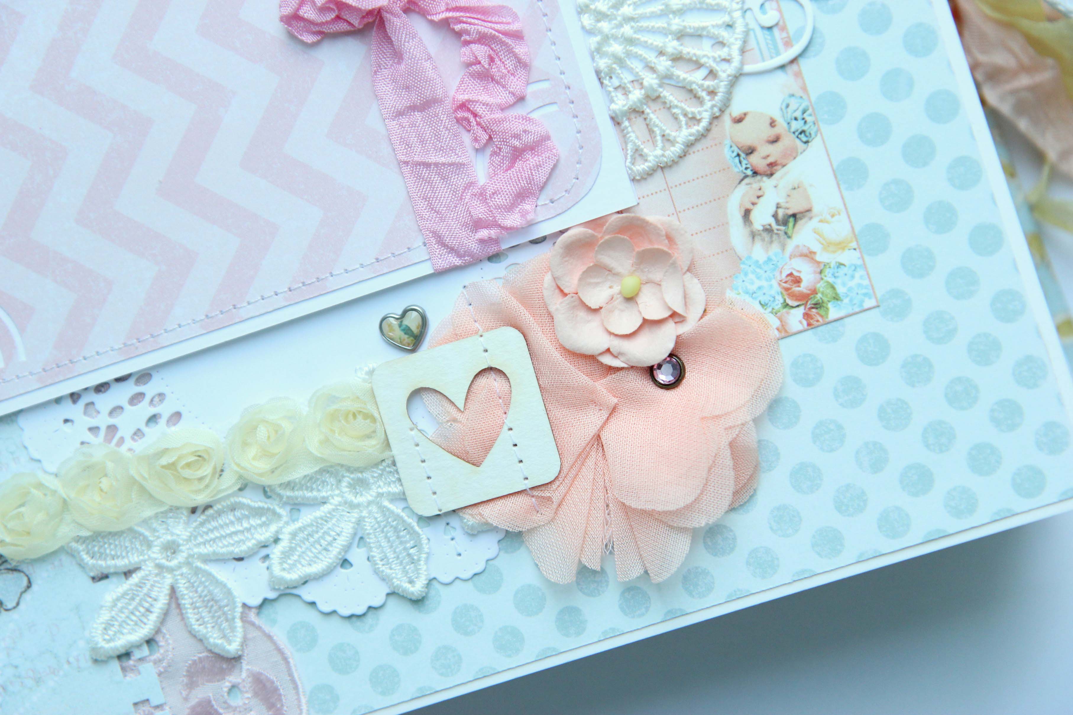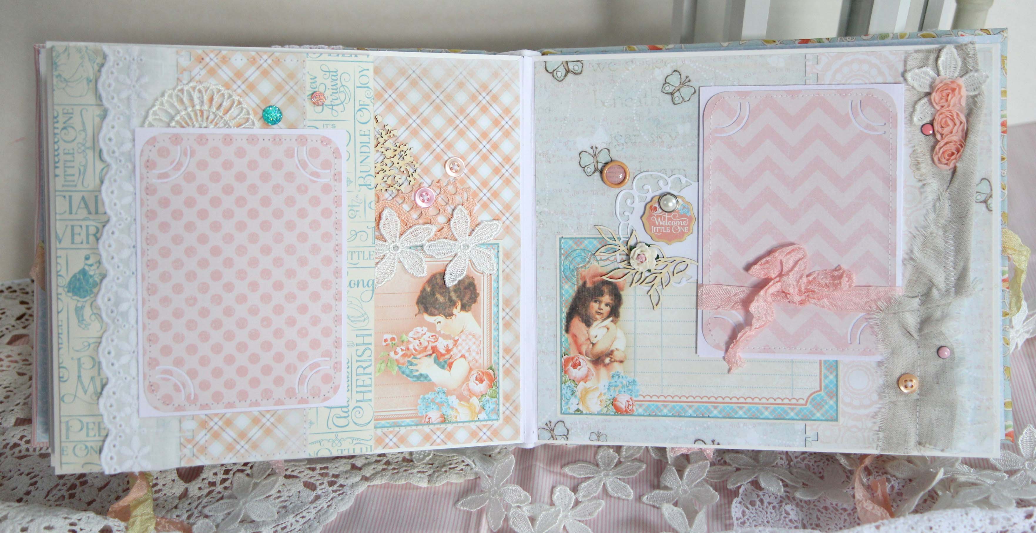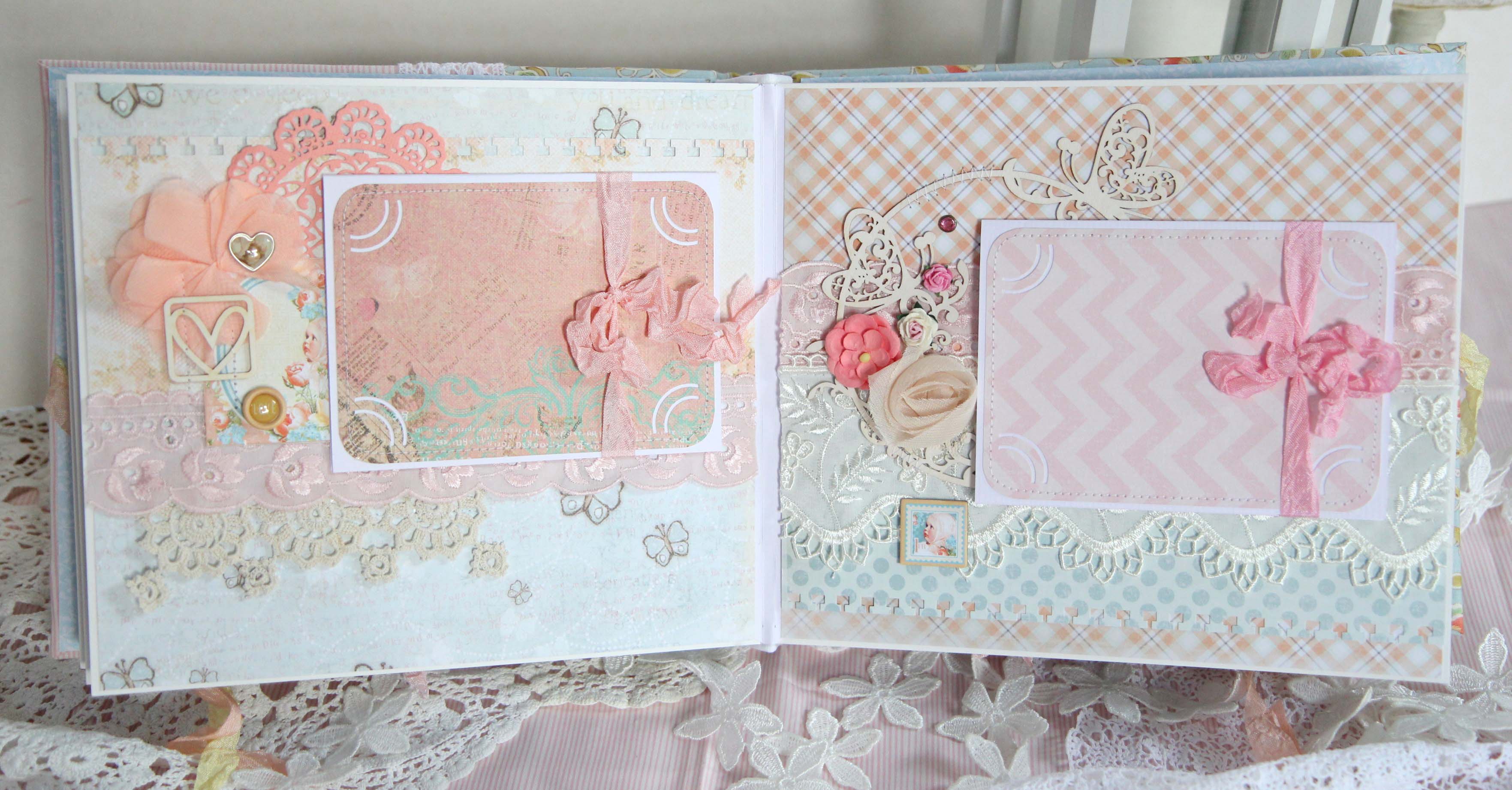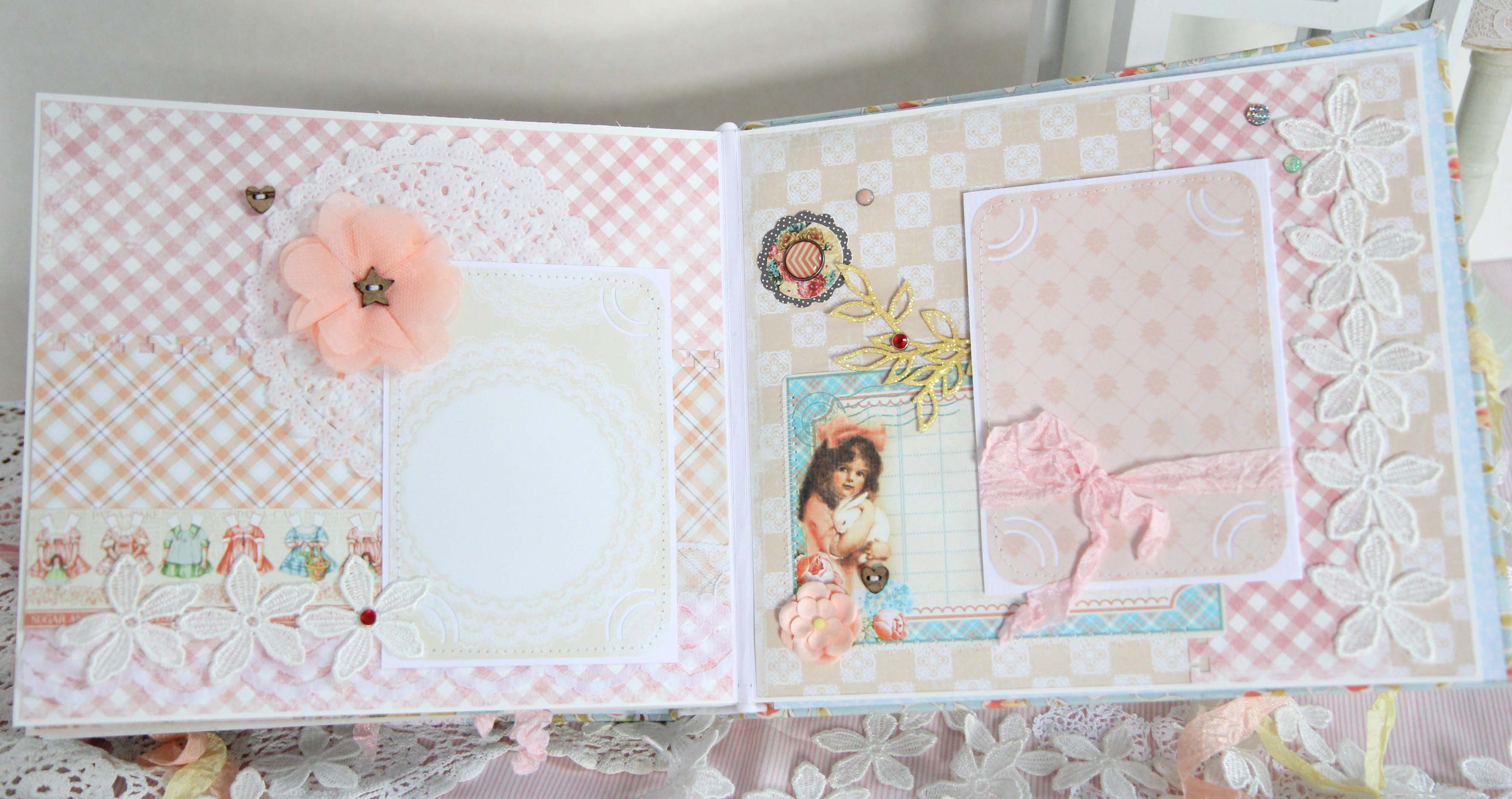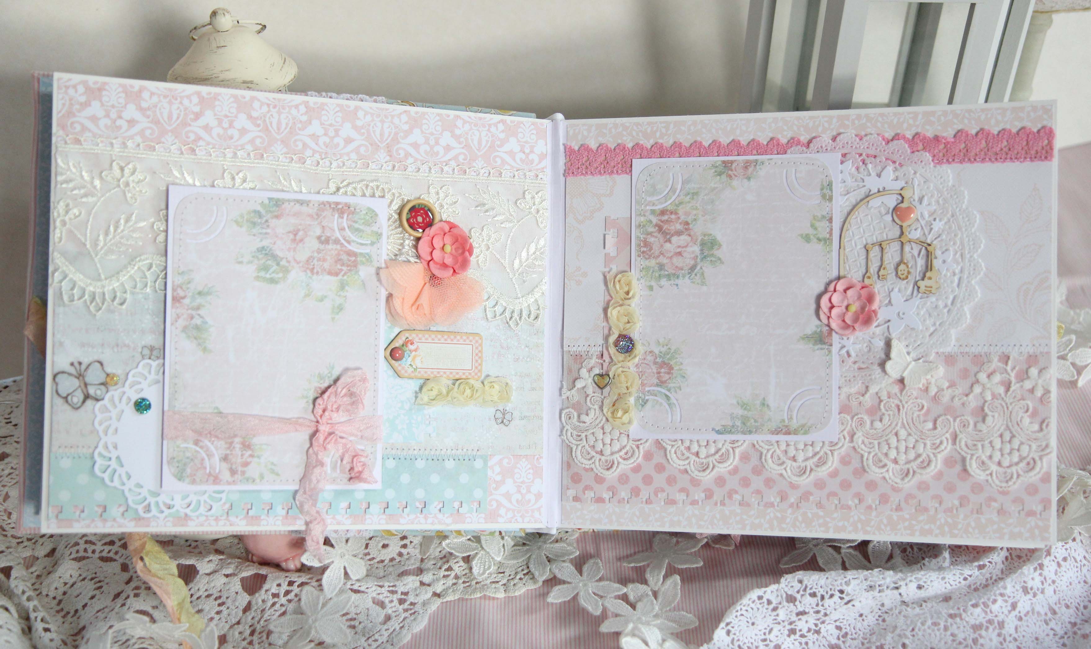 Nemrég csináltam egy elég nagy kislányos albumot shabby chic stílusban. Nagyon világos romantikus és zefíres lett mert sok különböző csipke, kivágott szalvéta, virág és aranyos apró dísz van benne.