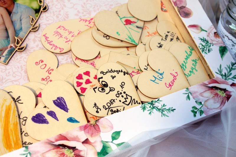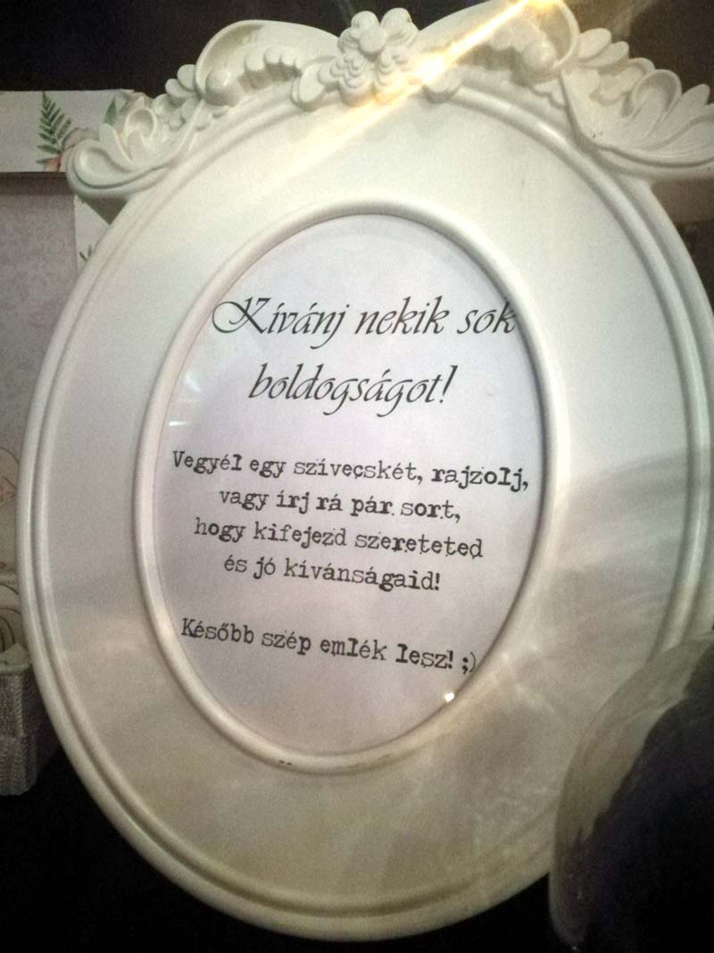A képkeretet tollak és chipboard szívecskék, illetve egy használati útmutató kíséretében kitettem egy központi helyre, és örömmel láttam, hogy tényleg szinte mindenki írt pár kedves sort az este folyamán. még egészen későn is. 🙂