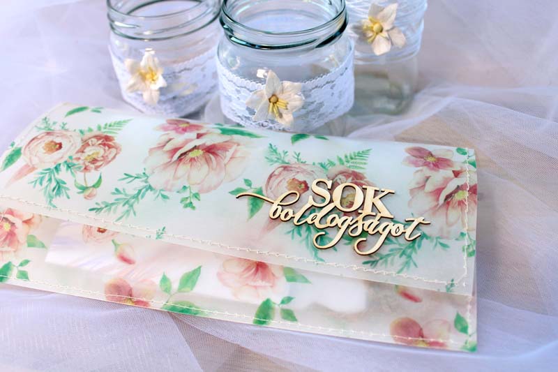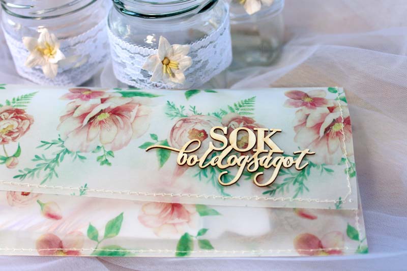 Természetesen ezeken az apró meglepiken kívül hasznos nászajándékkal is készültünk. 😀 Aminek a "látványos" átadására sajnos nem sok időm maradt. Még szerencse viszont, hogy az esküvős kollekcióban akadnak mintás pauszpapírok is. Így netto 3 perc alatt (és ebből kb 2 perc a ragasztó keresgélésével telt 😀 ) készítettem egy szerintem szuper szép, és különleges pénzátadó borítékot. Aki kitalálja, hogy ezt pontosan MENNYIRE az utolsó percben sikerült összedobnom, az kap egy hátbaveregetést. 😀