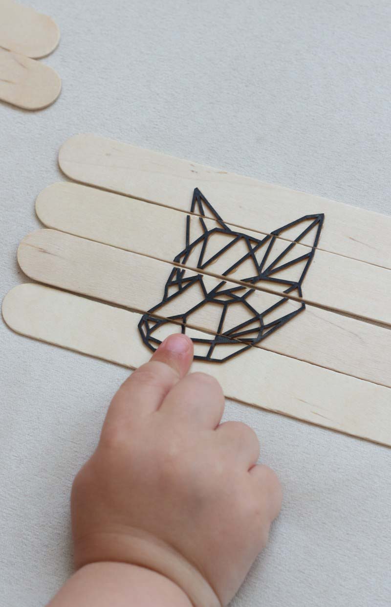 Az állatos chipboardokat nyomdapárnával színeztem, majd a szétvágott darabokat óvatosan ráragasztottam a spatulákra. Ez a játék több szempontból is nagyon jó: kiváló a színek és az állatok neveinek megtanulásához és remek készségfejlesztő.