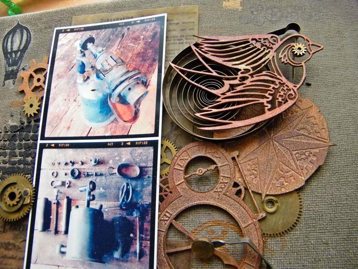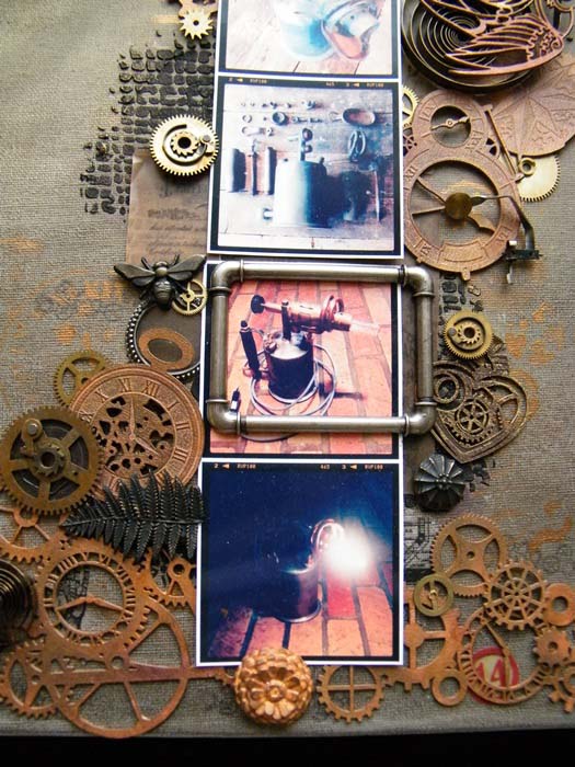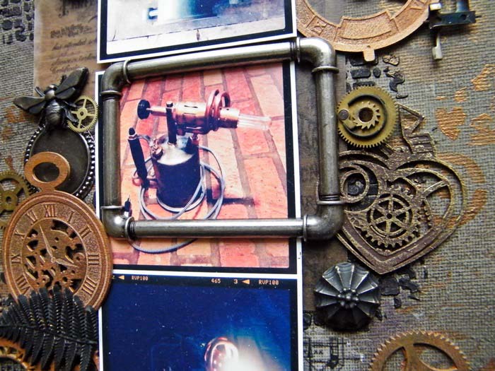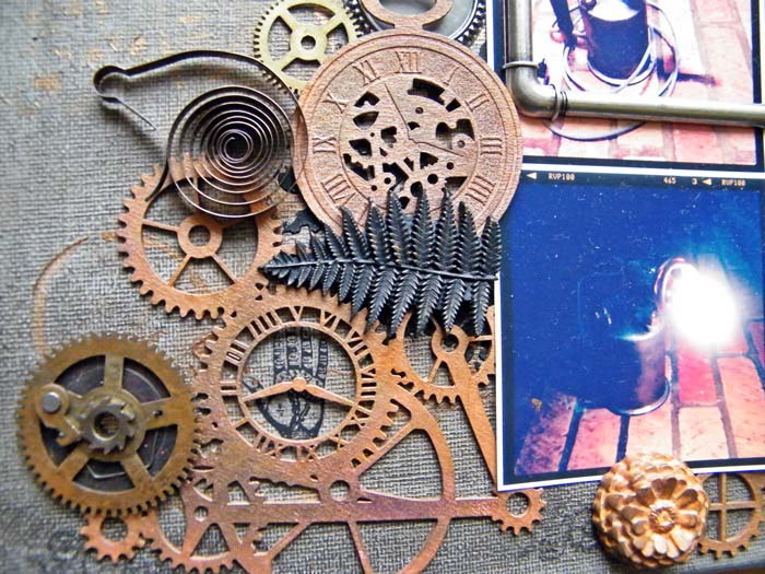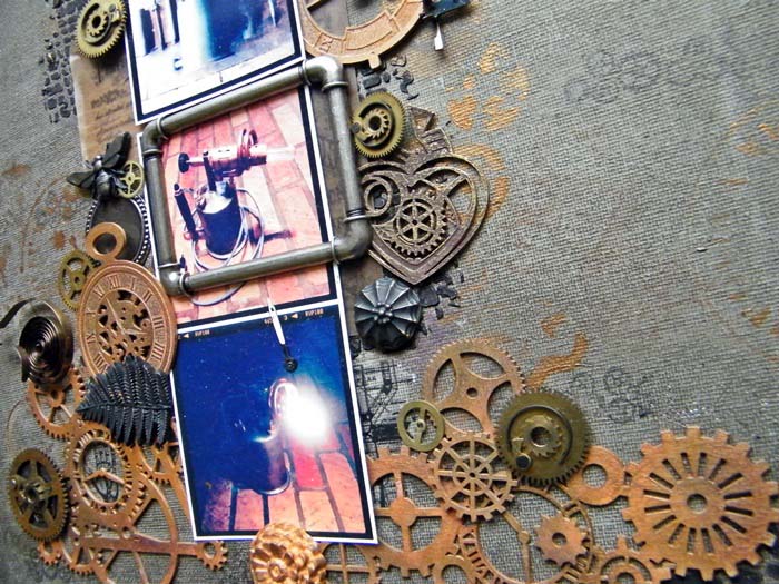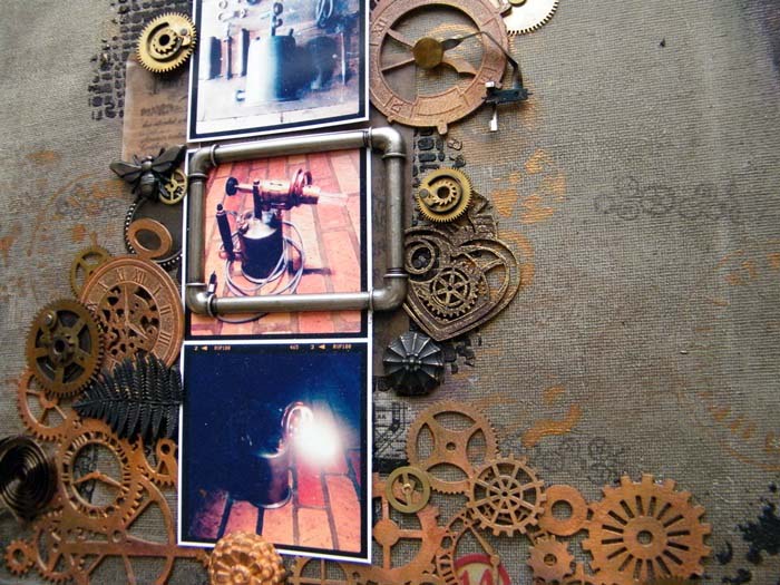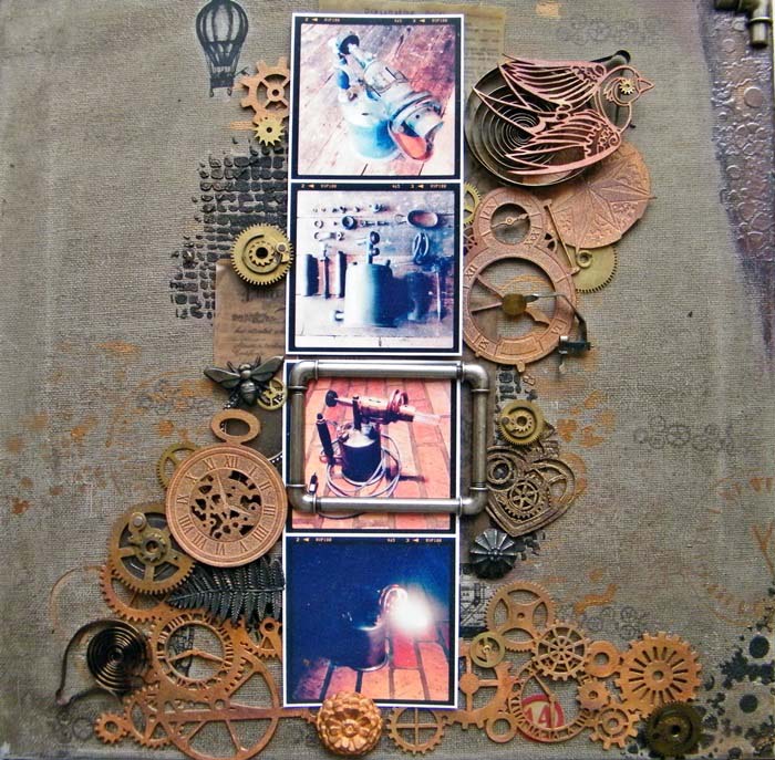 Képzeljétek el, hogy megvan minden egy tökéletes steampunk oldalhoz, (lágy zene indul) tökéletes fotó, álom chipboardok, vászon és festékek, nekiállsz alkotni, majd eszedbe jut, hogy (zene lekonyul) egyetlen virágot sem használhatsz. Mert most egy igazi férfinak egy igazi férfias vásznat készítesz, méghozzá a műhelyébe, ahol a szebbnél szebb industrial és steampunk lámpák születnek. Úgyhogy a virágeső ma, fájdalom, elmarad.