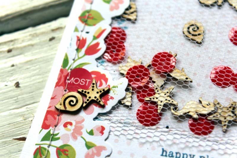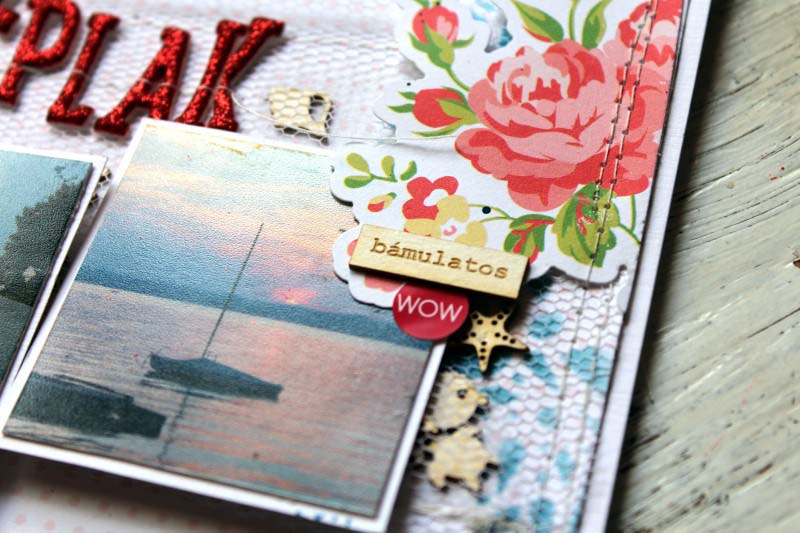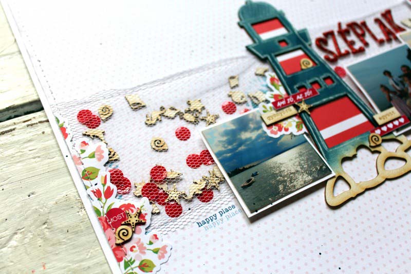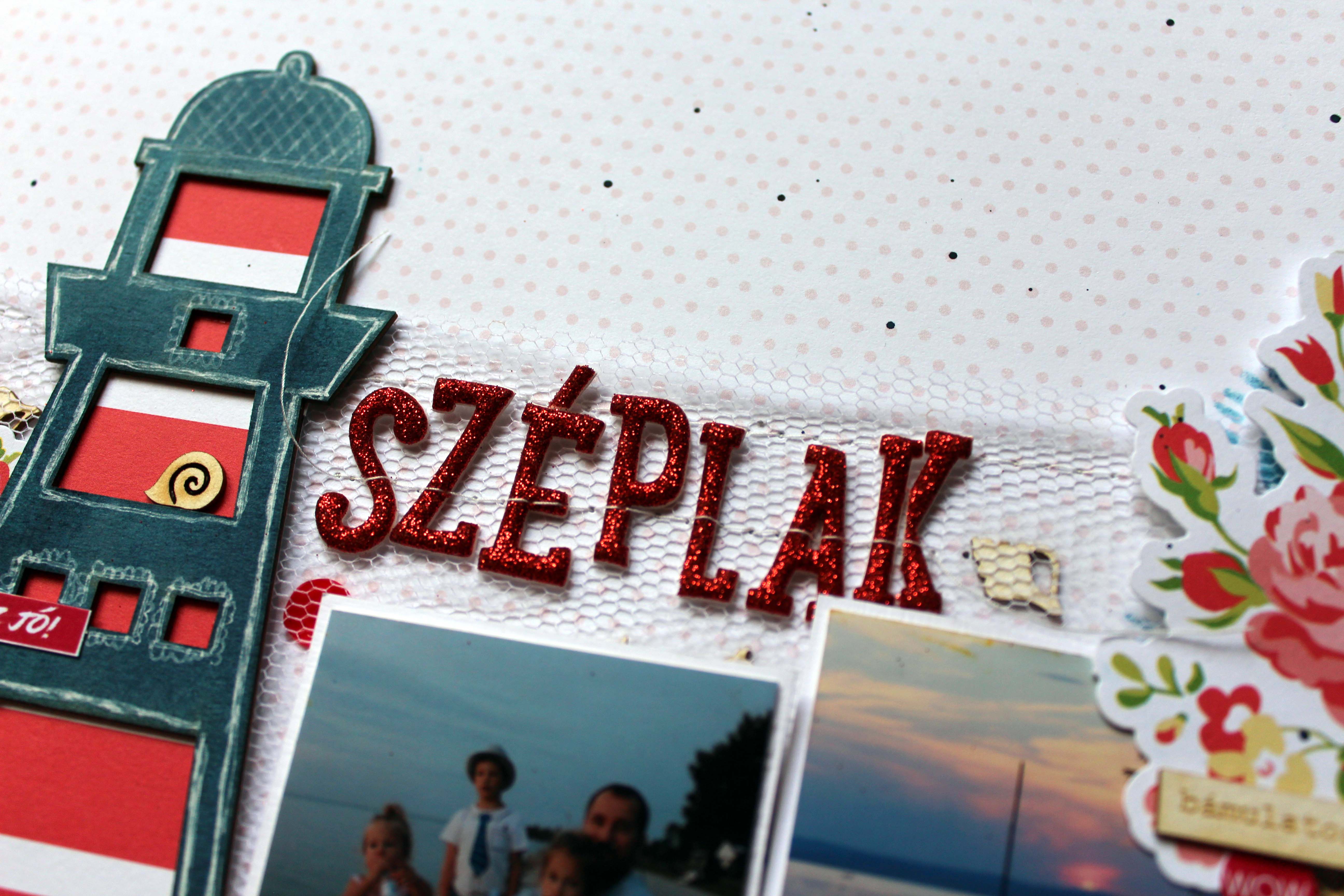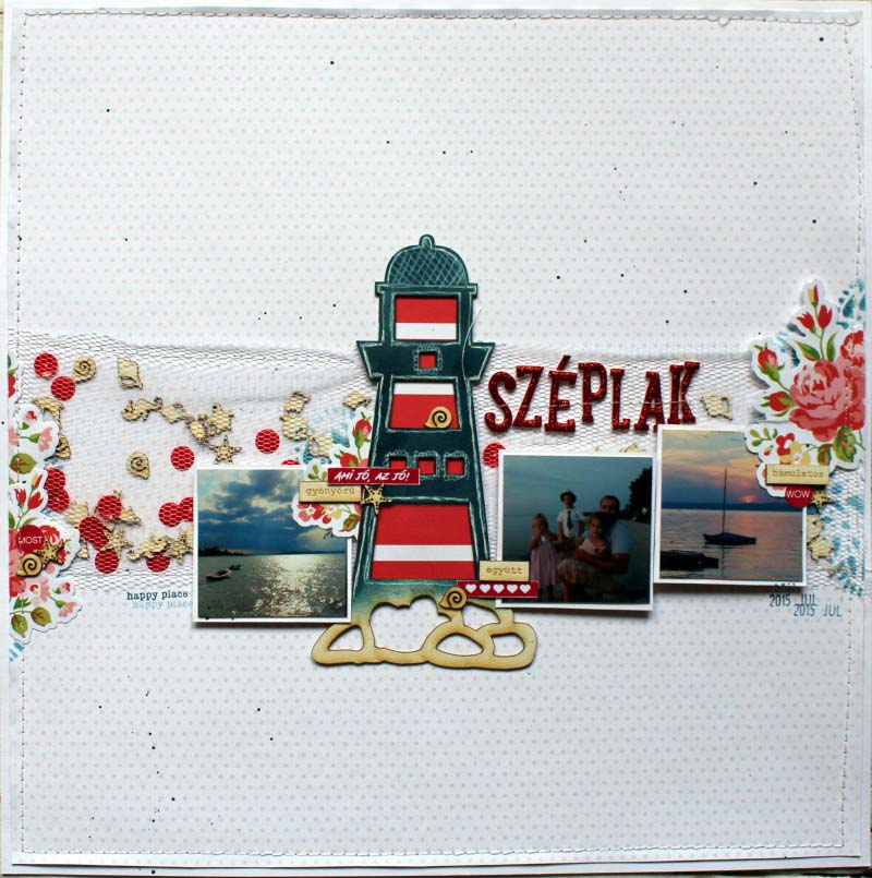 Nyaralásról többnyire inkább vidám, színes oldalakat szoktam csinálni. Most viszont nem annyira a nyaralásra akartam tenni a hangsúlyt, hanem inkább a Balaton romantikájára, és a Balaton iránt érzett olthatatlan szerelmemre. 🙂 Ezért ezúttal inkább nőisebb elemekhez nyúltam, úgy, mint a tüll, és a rózsás motívumok.