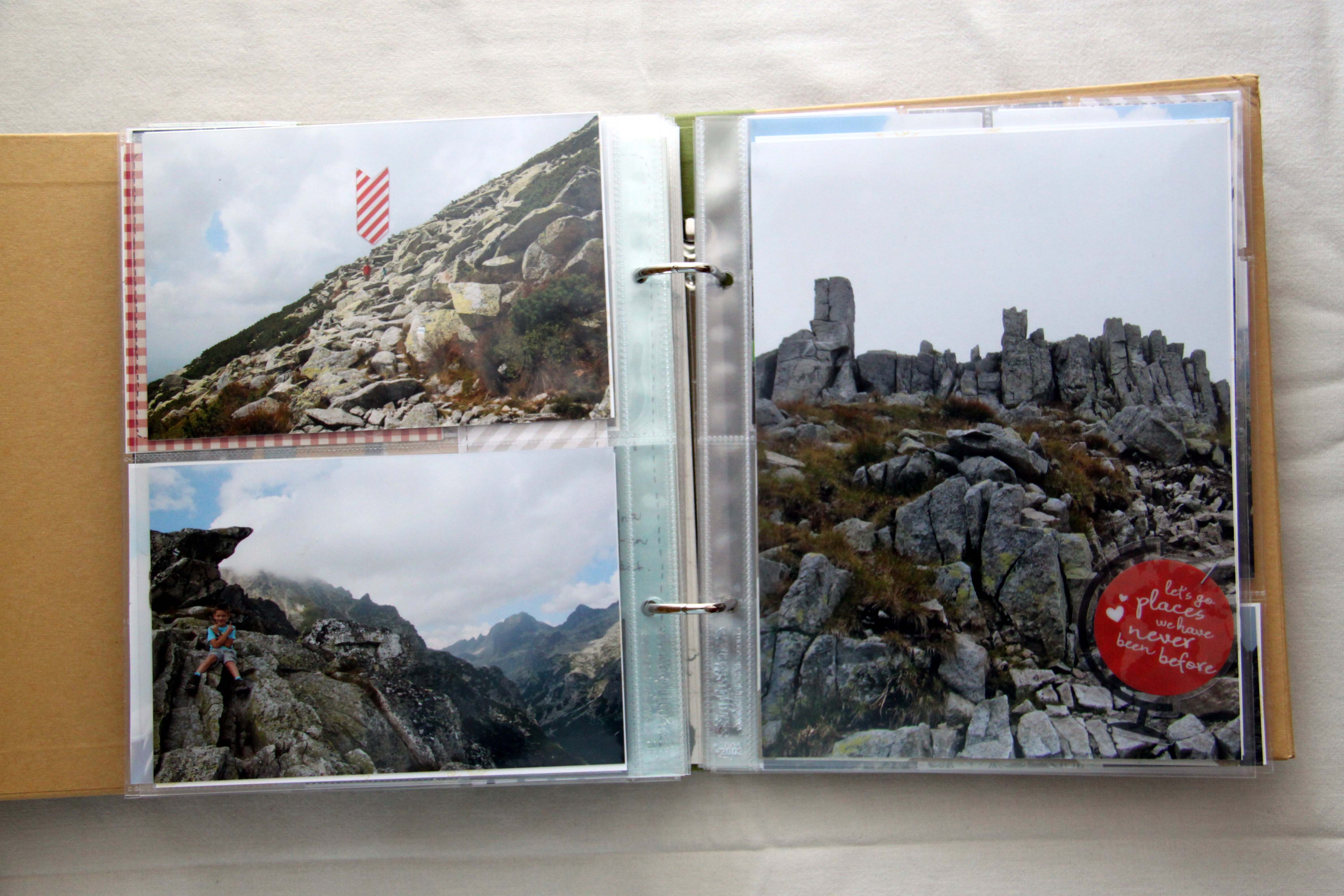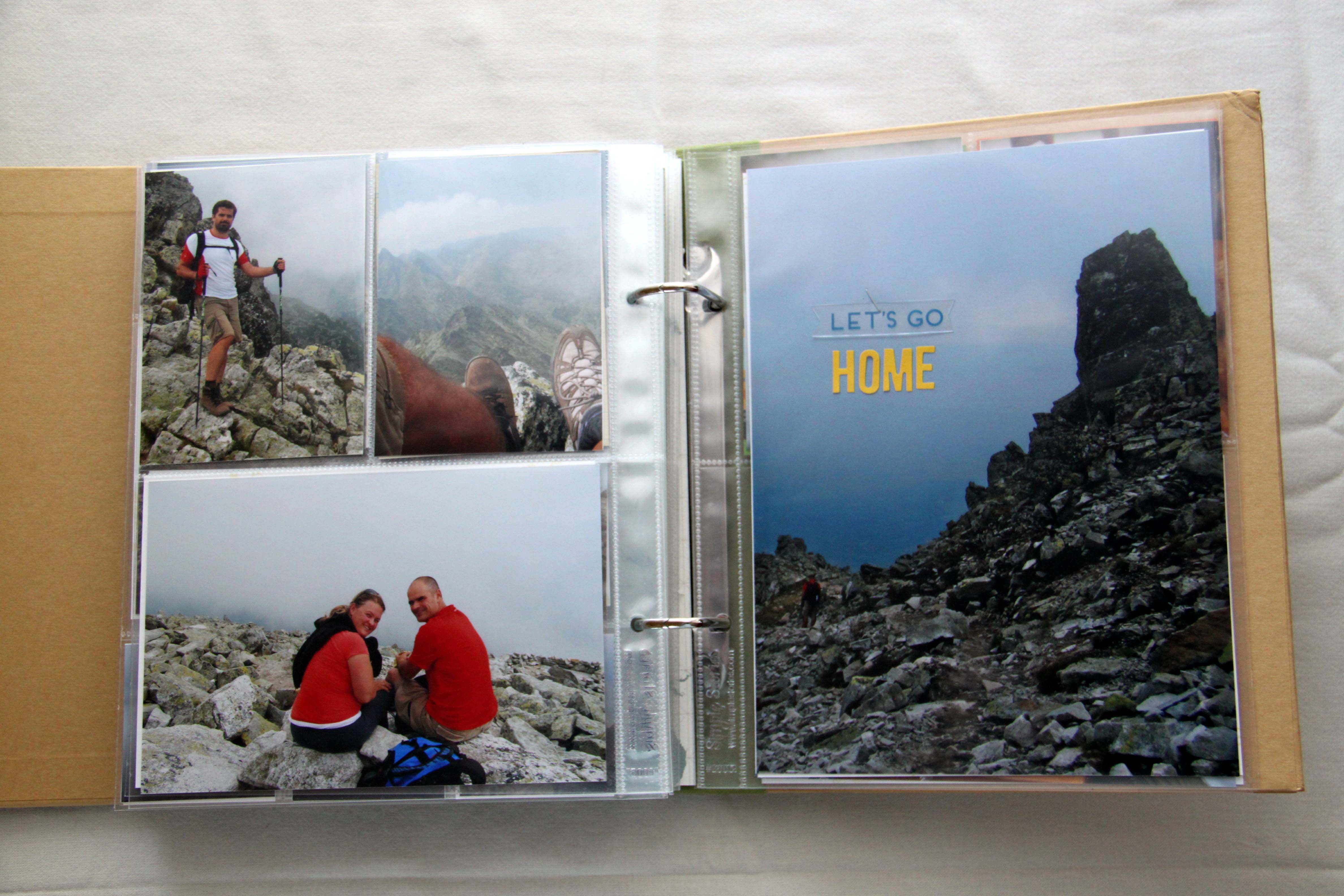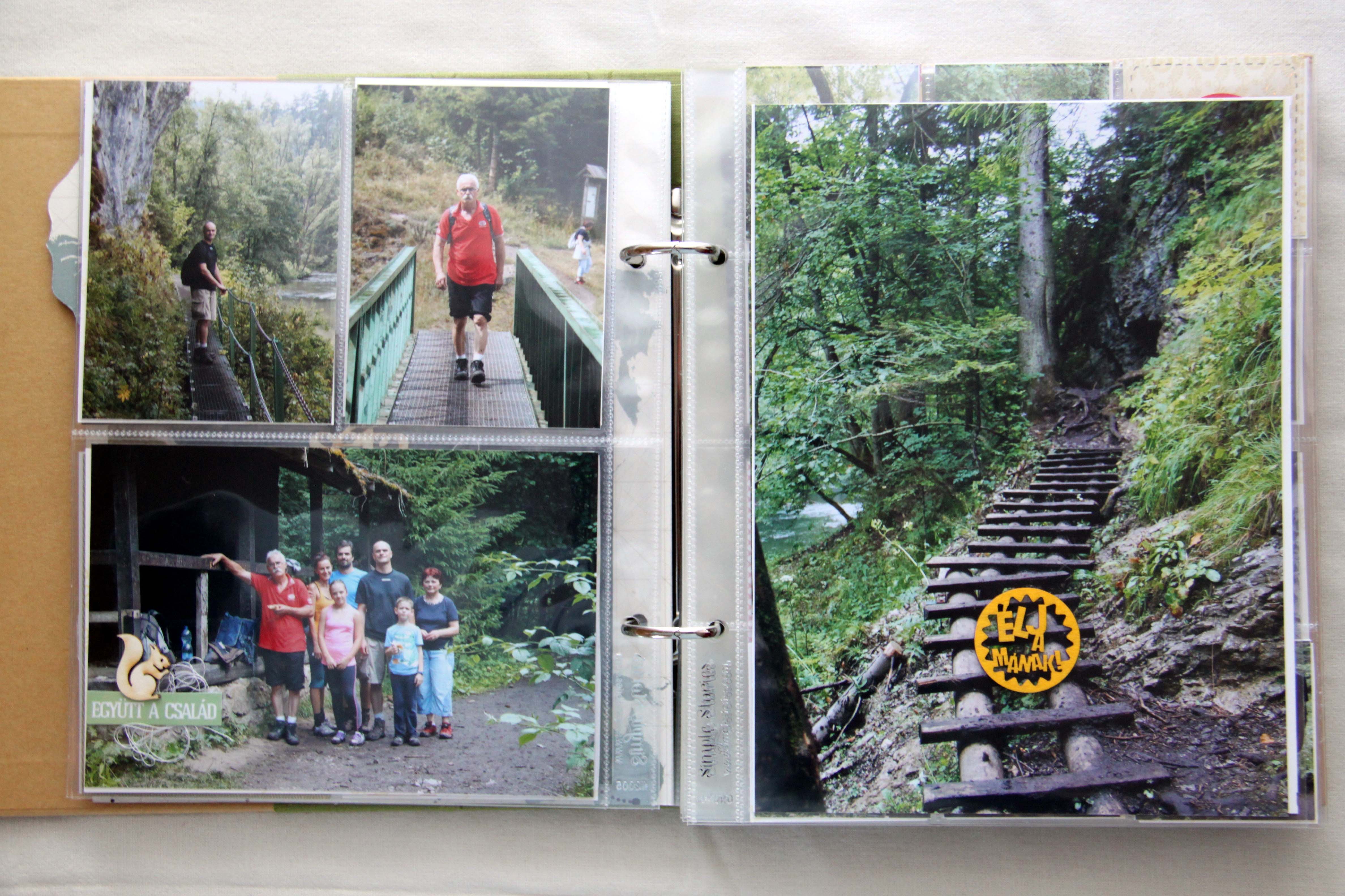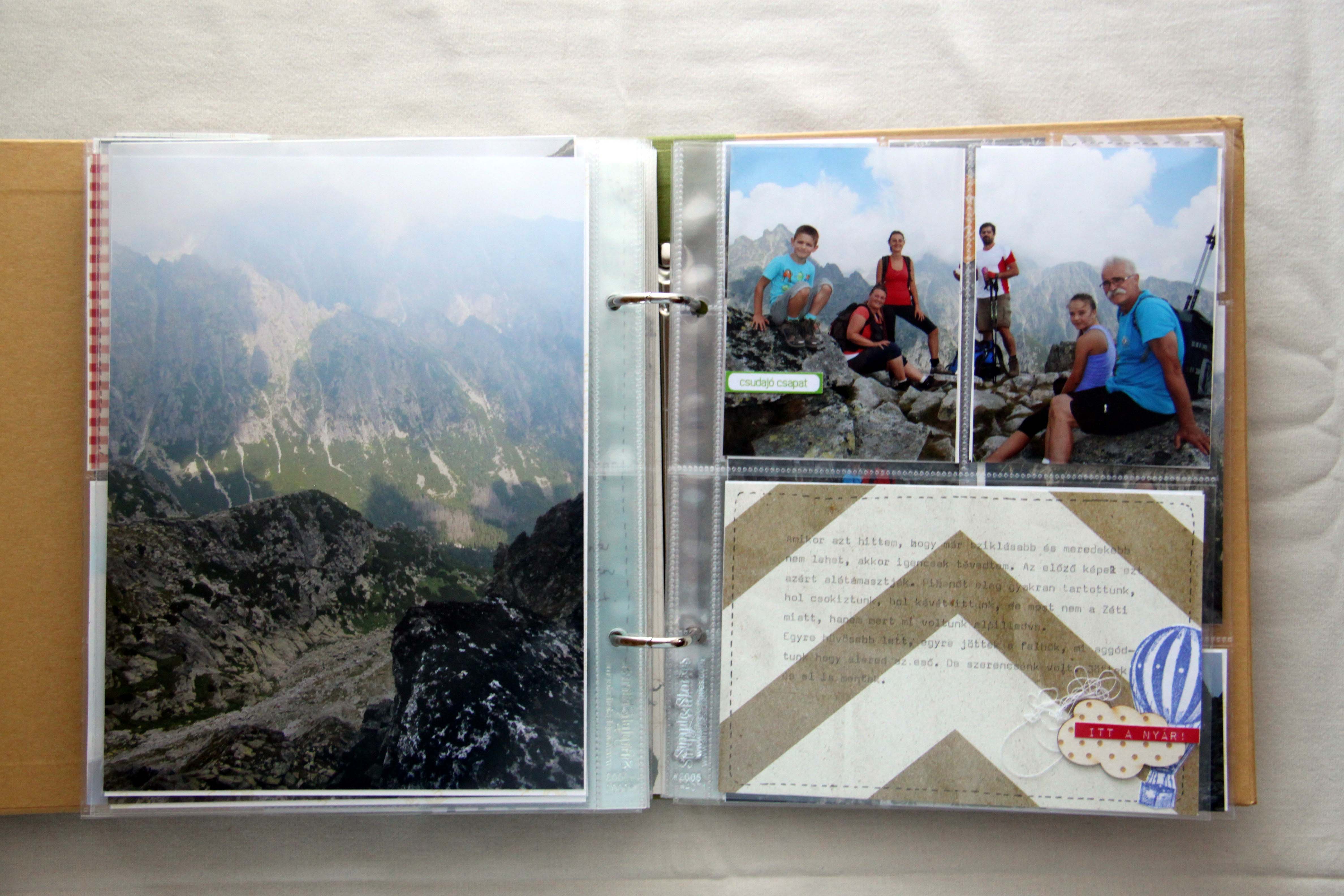 Már két éve, a legutóbbi túránk után is kapott egy ugyanilyen méretű albumot ajándékba. Ebbe az albumba viszont belekerült jó pár 15×20-as fotó is, minimális díszítéssel, mert imádja a Tátrában készült természetfotókat. Használtam olyan felbontású tasakokat is, ahol 5×5 -ös képek is előfordultak.